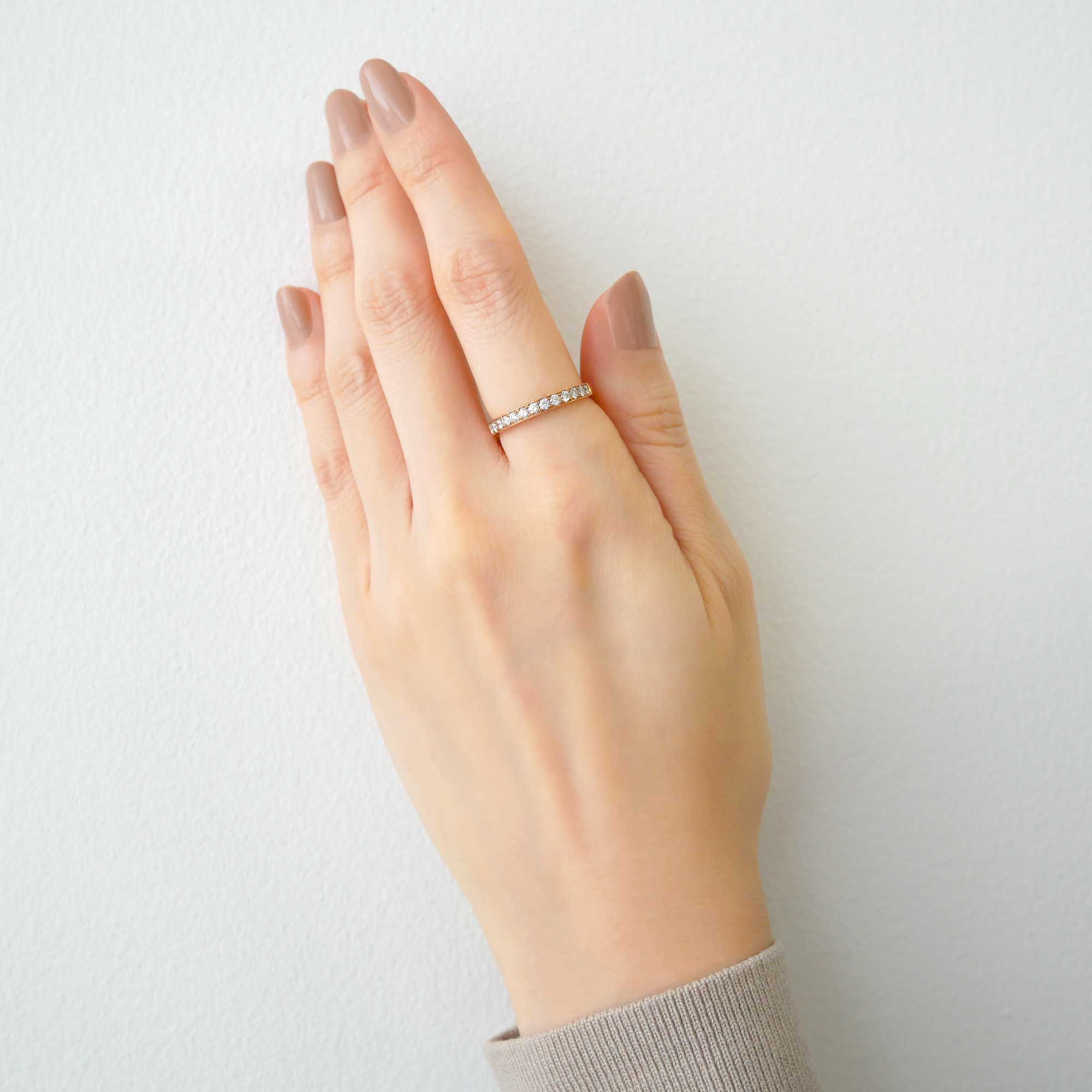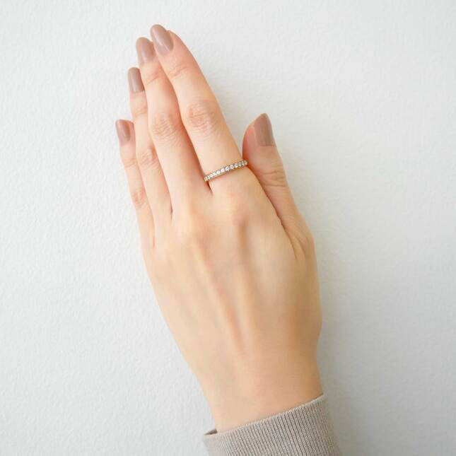 ダイヤモンド本来の透明感と、繊細なきらめきが魅力的なハーフエタニティリング。