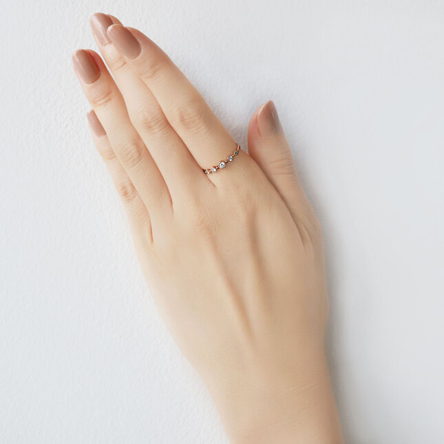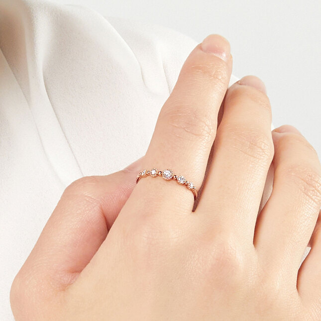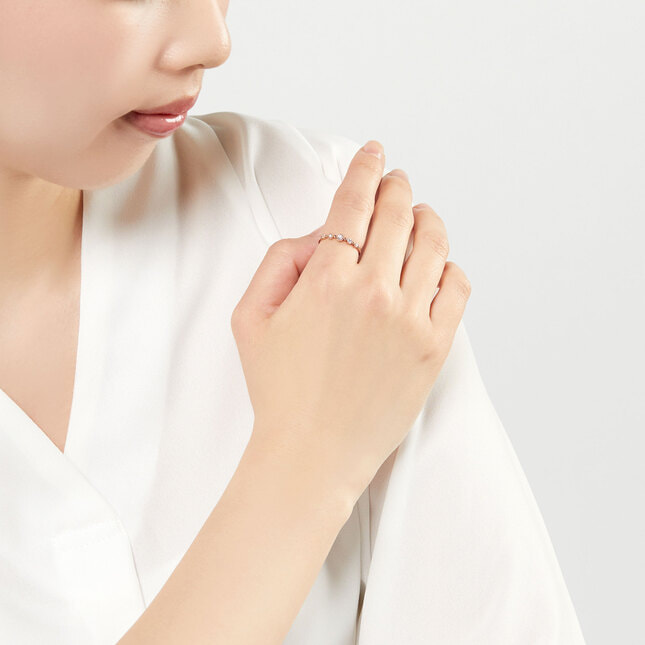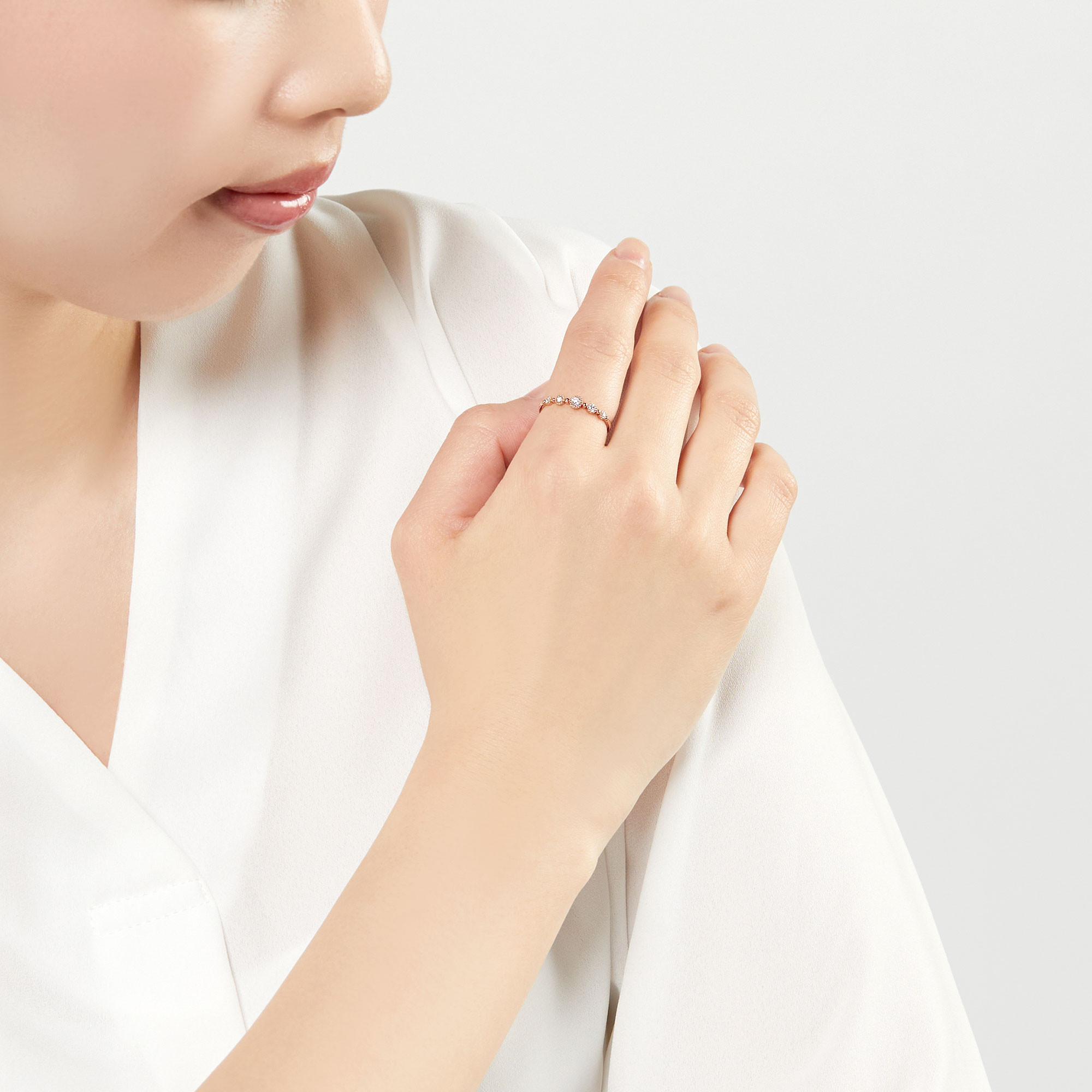 お手持ちのエタニティリングと重ねてボリュームをプラスしたコーディネートもおすすめです。