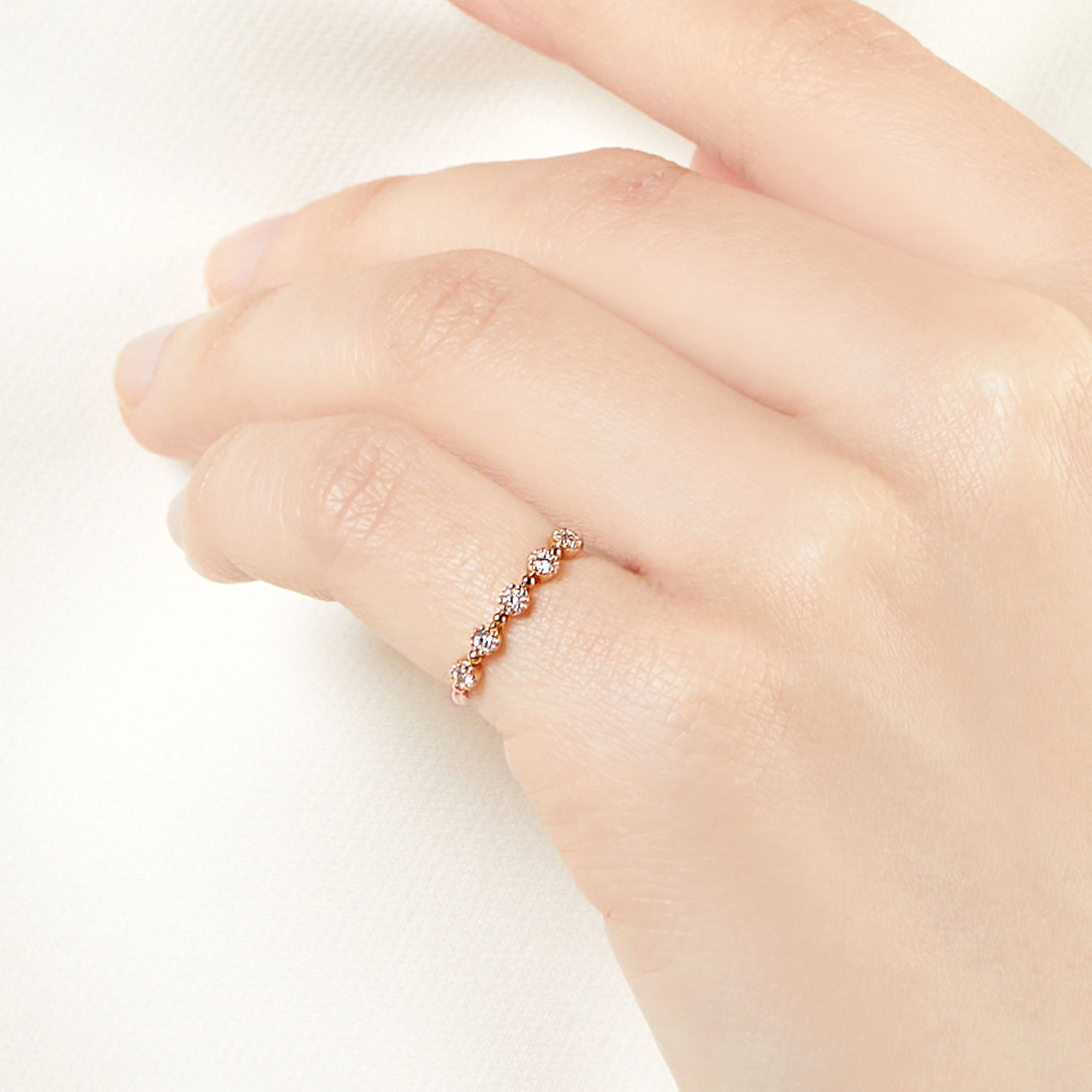 ダイヤモンドの輝きが波紋のように広がる様をイメージした、華やかなピンキーリング。