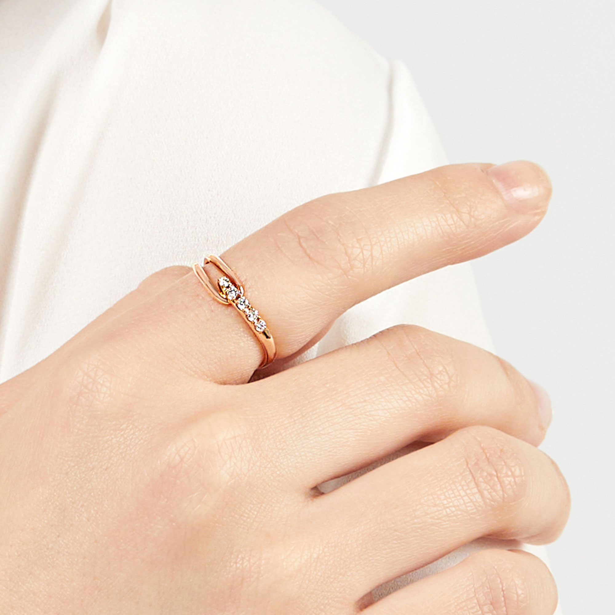 ピンクゴールドにダイヤモンドをあしらったリング。