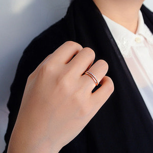 並べることで際立つ2つの異なる輝きを堪能できる、細く美しいラインが上品でモダンな印象のリング。