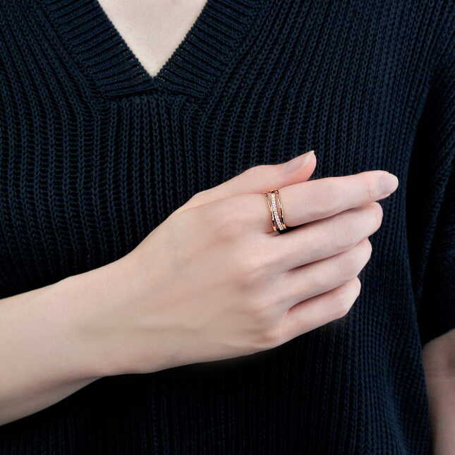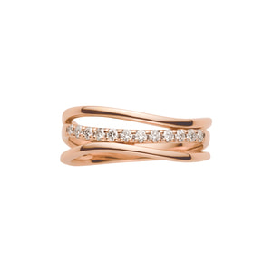 艶やかなピンクゴールドとダイヤモンドの輝きのラインが軽やかに指先を彩る優美なリング。