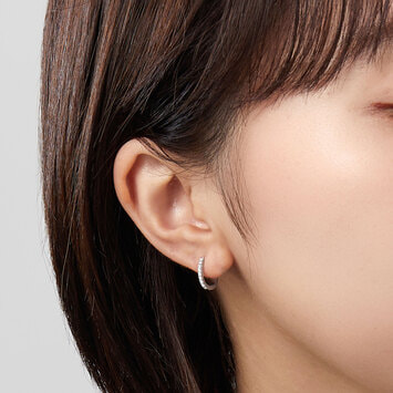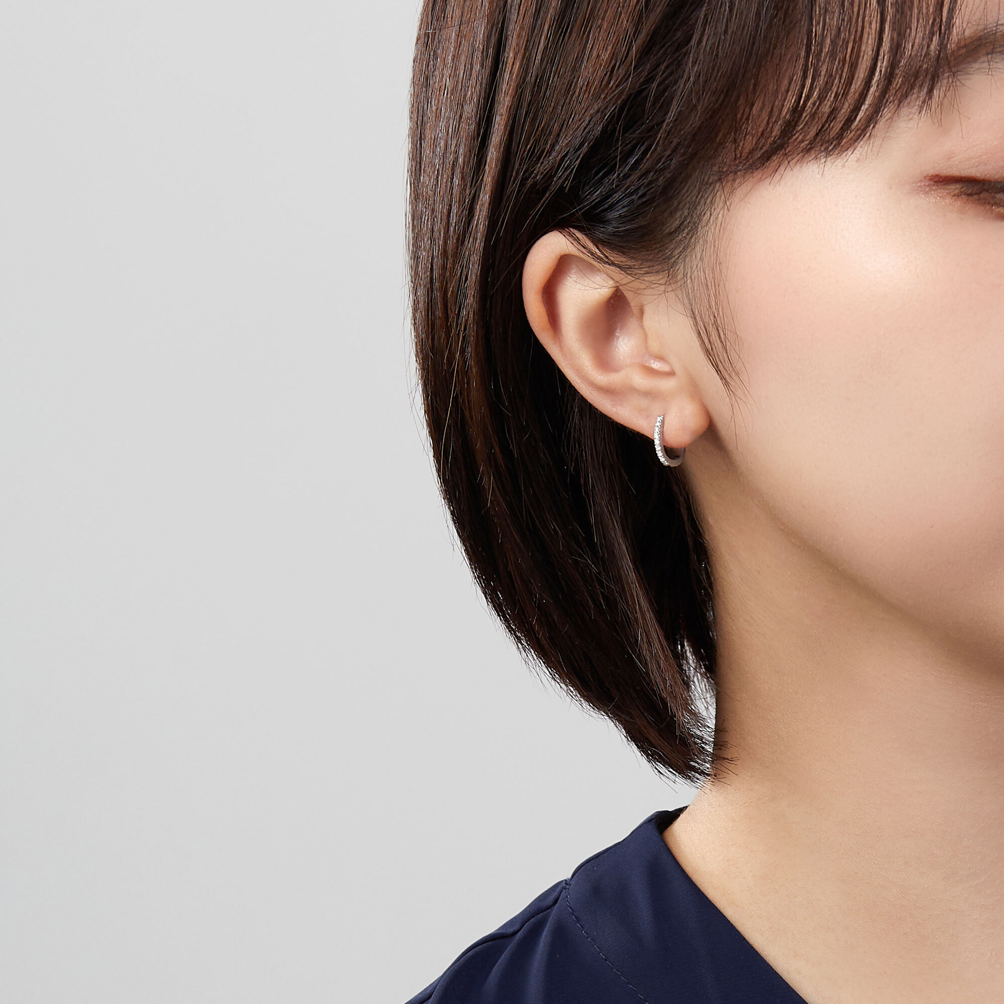 ホワイトゴールドのフープにダイヤモンドをあしらったベーシックなピアス。
