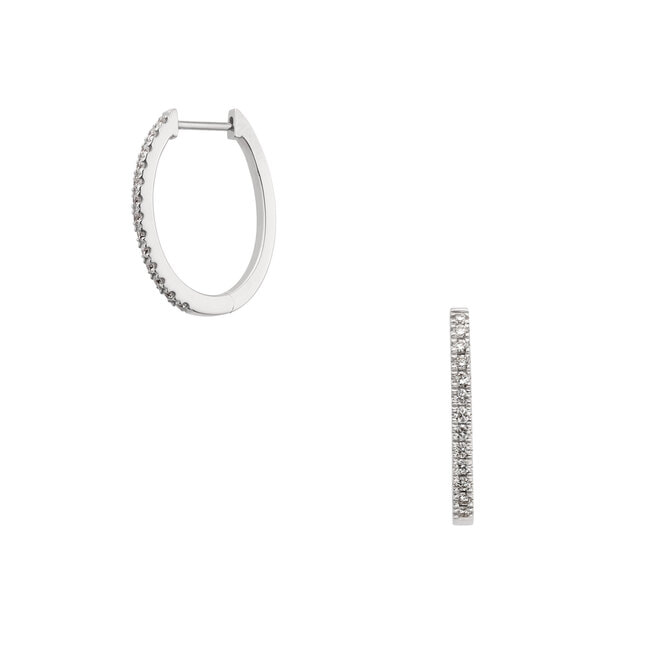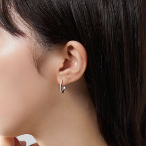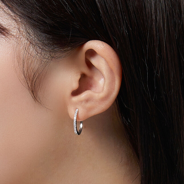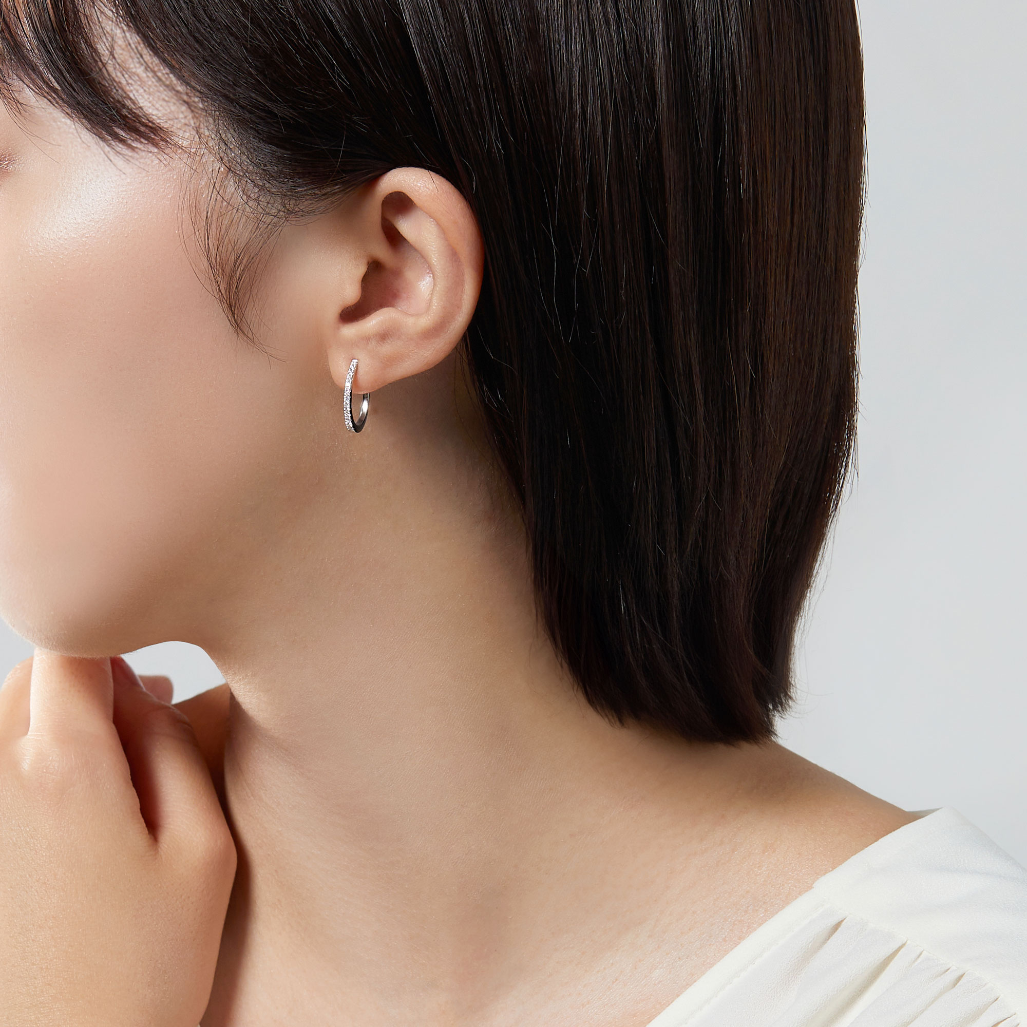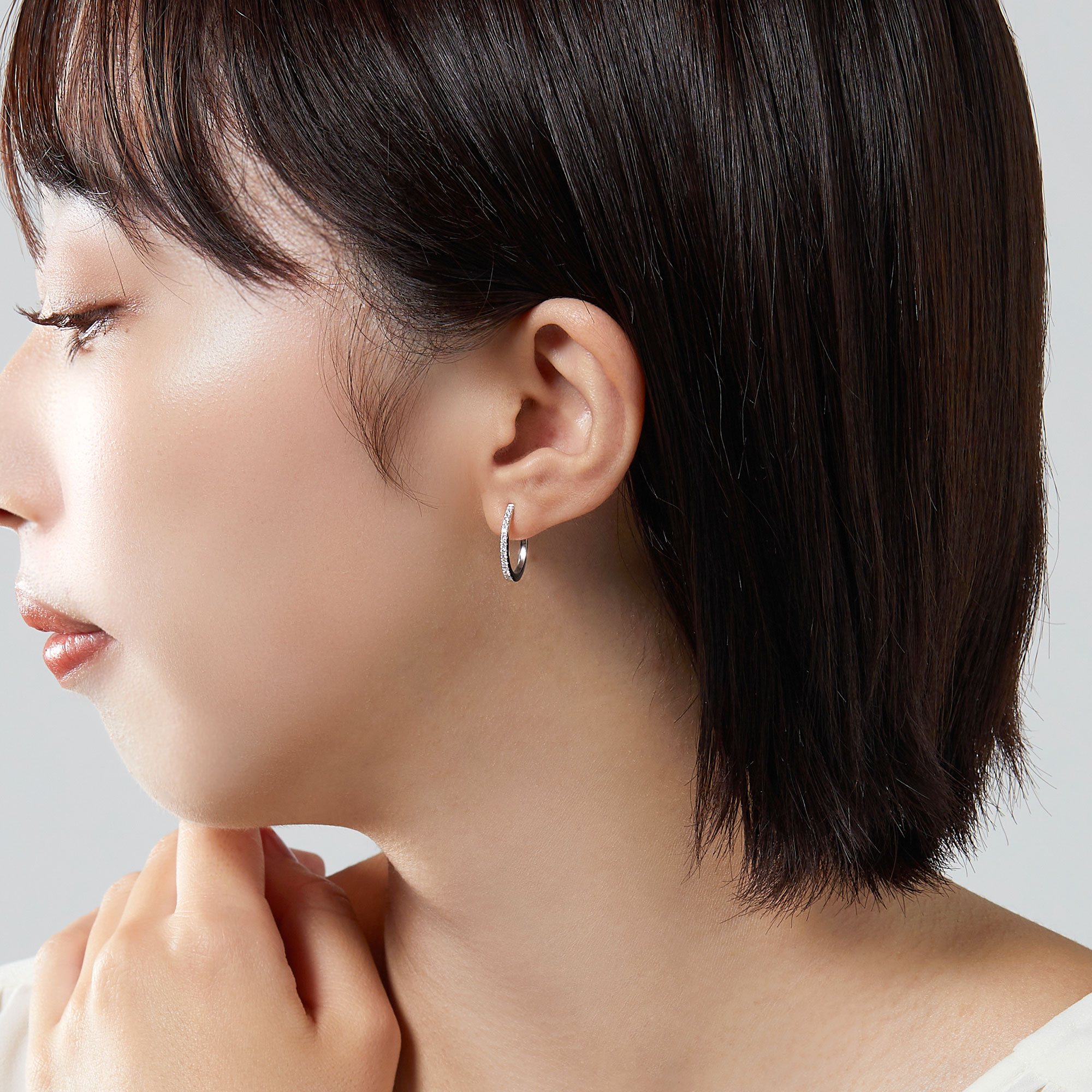 ホワイトゴールドのフープにダイヤモンドをあしらったベーシックなピアス。