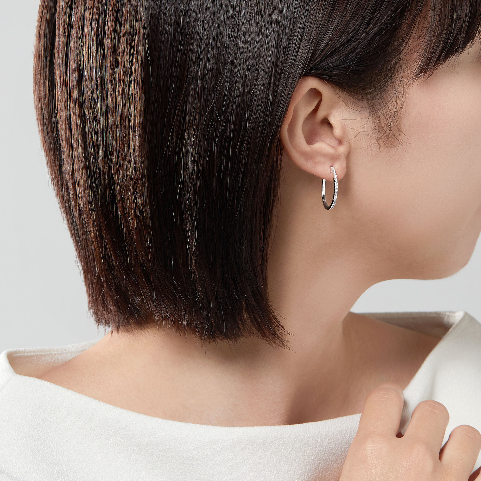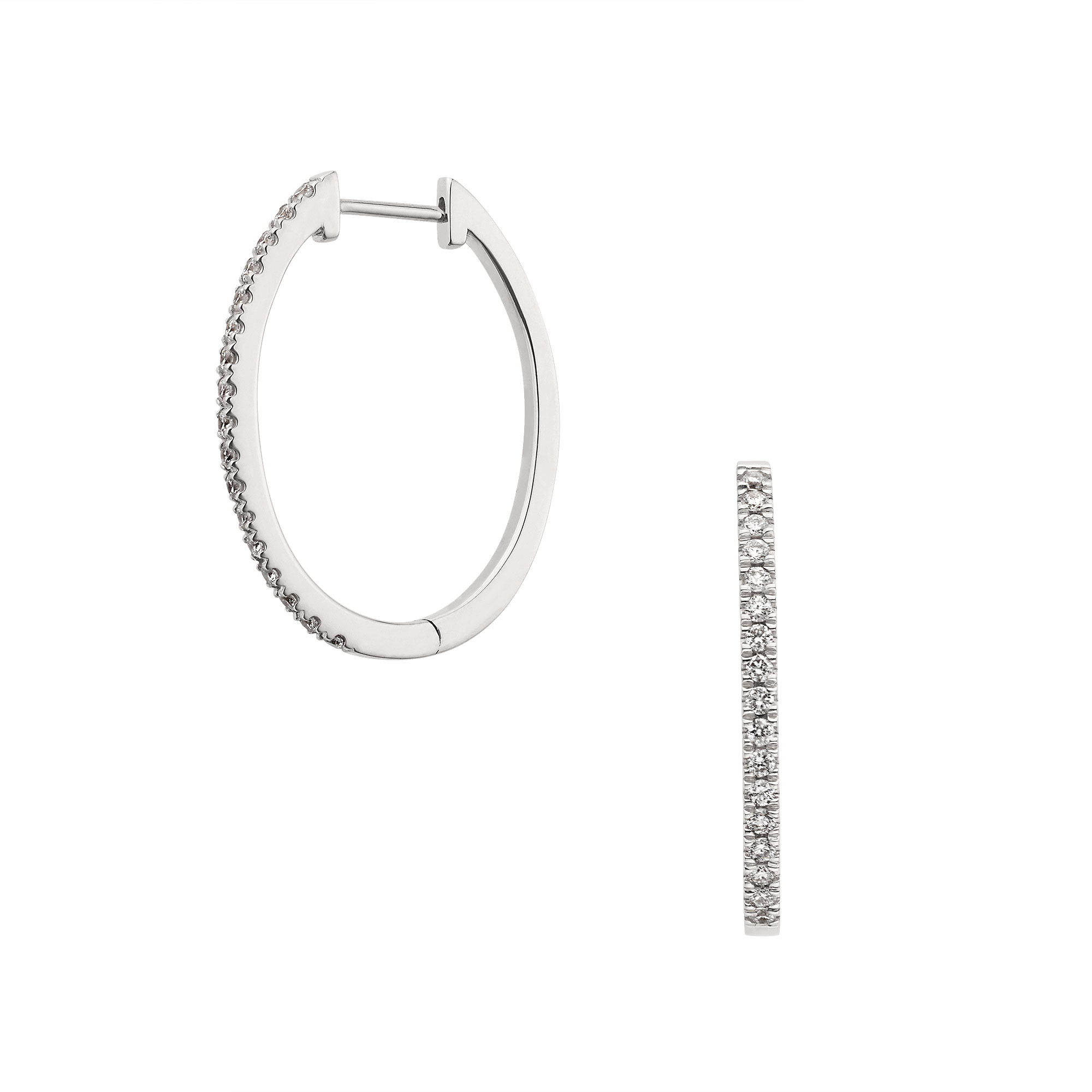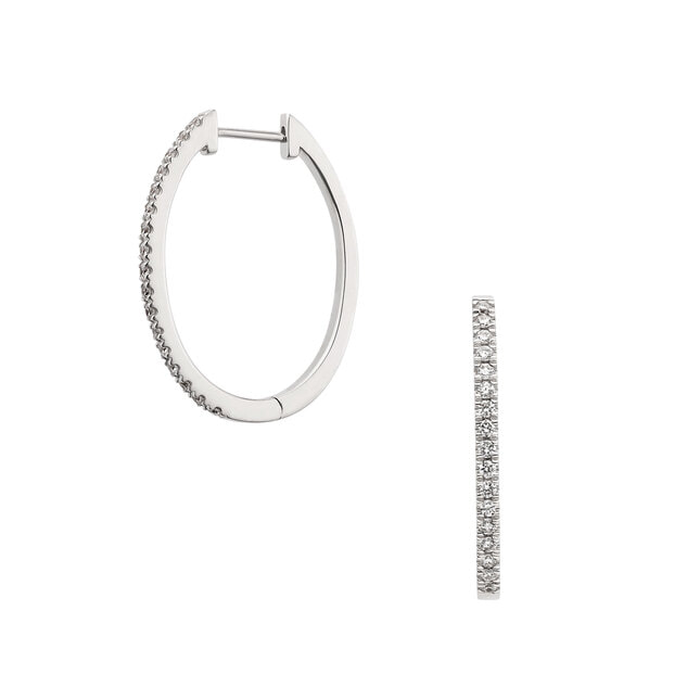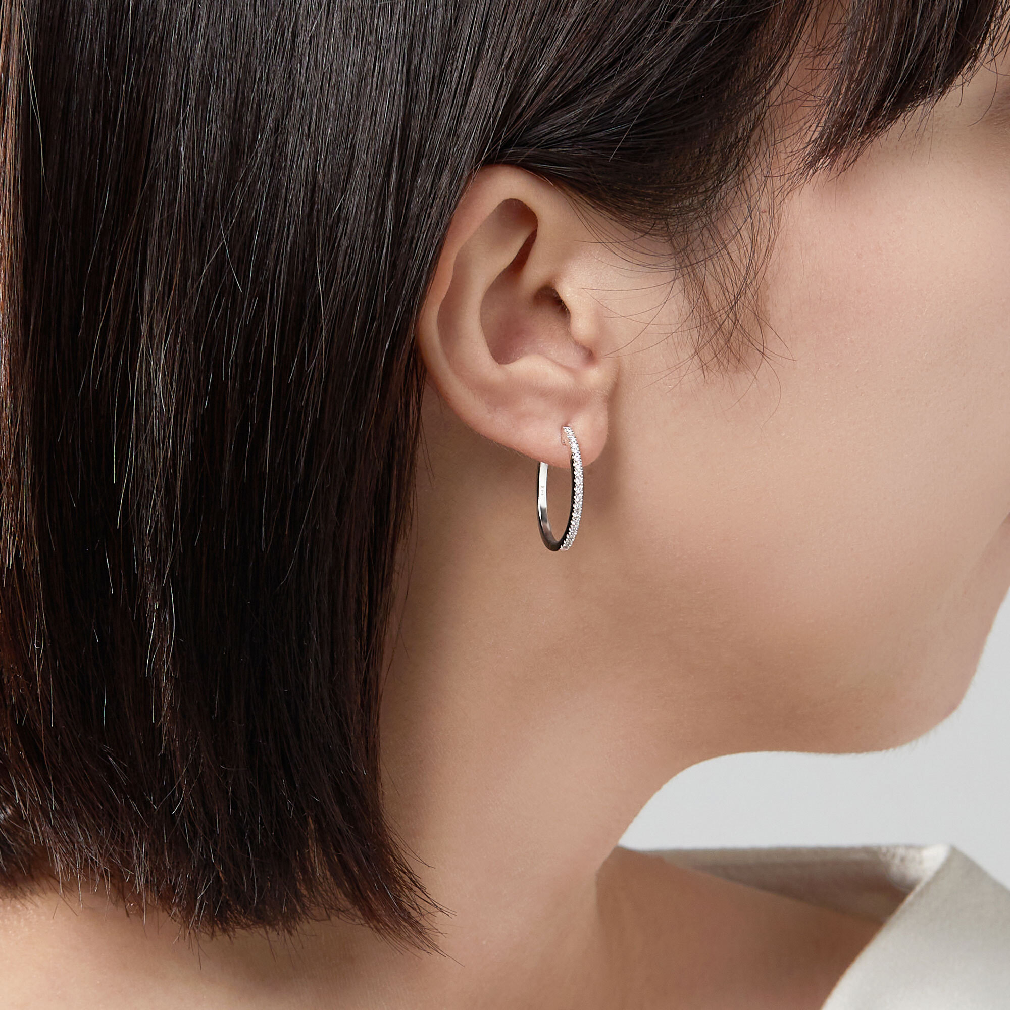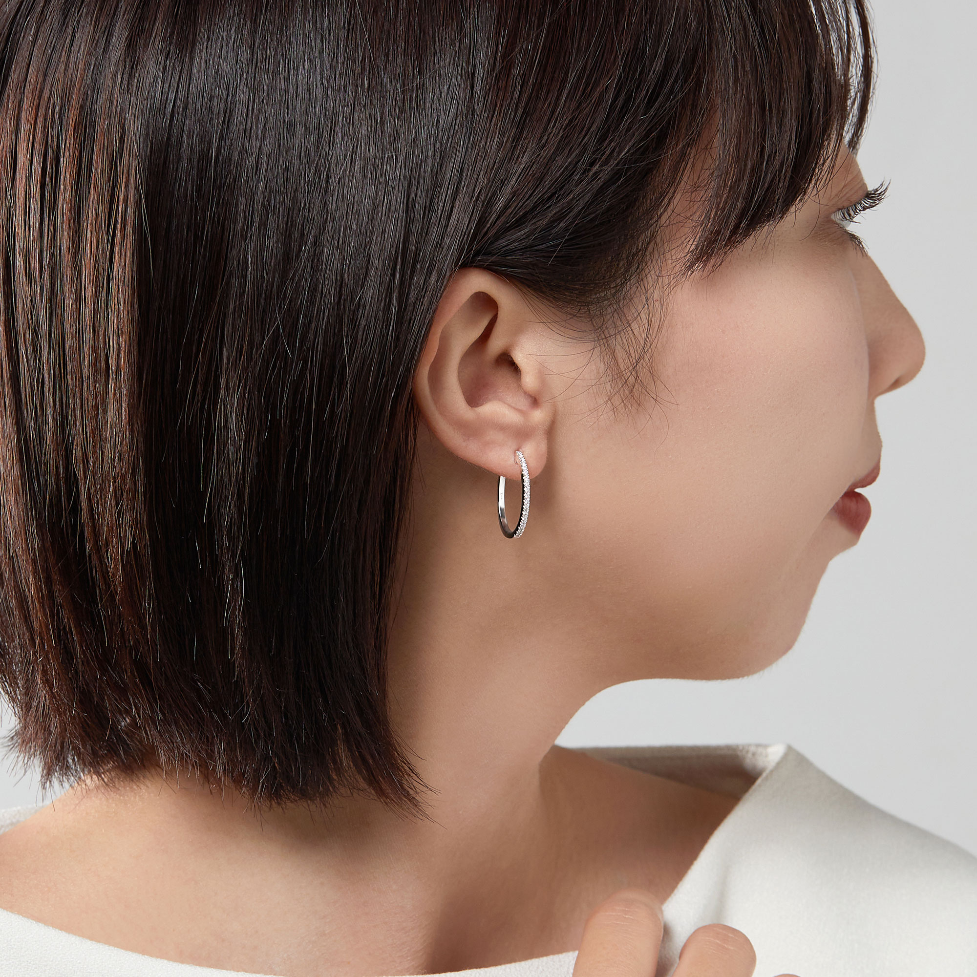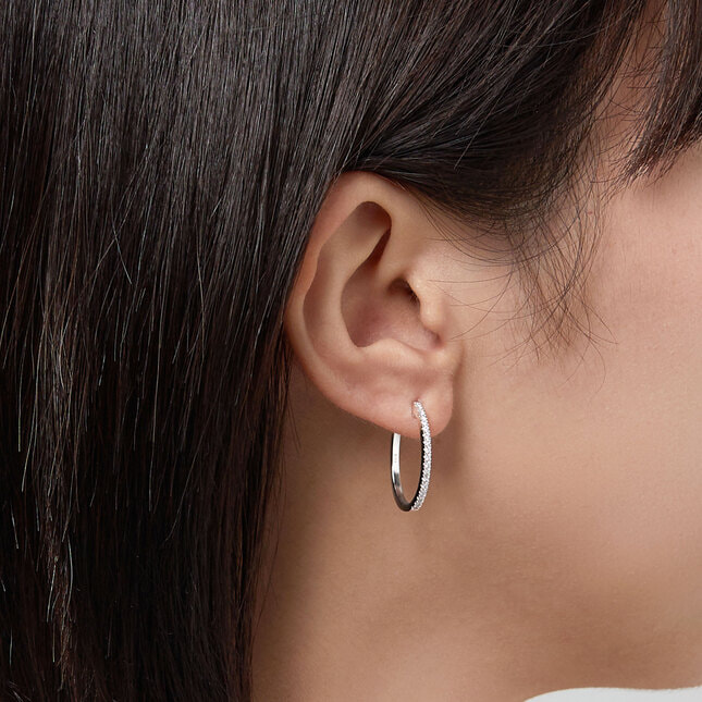ホワイトゴールドのフープにダイヤモンドをあしらったベーシックなピアス。