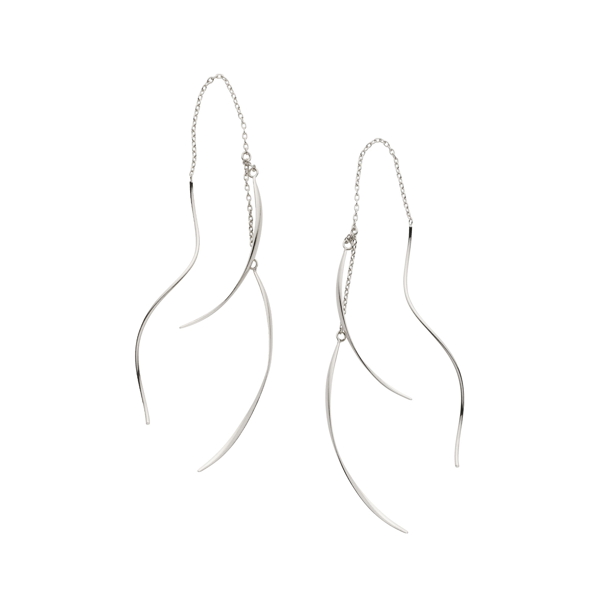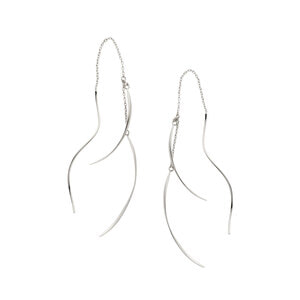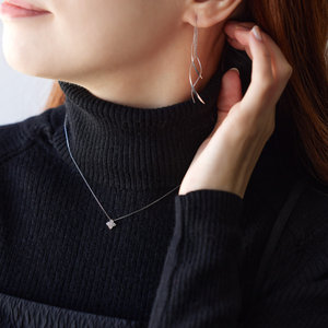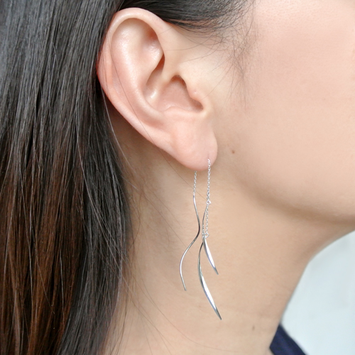 ホワイトゴールドの繊細なチェーンとモダンな曲線モチーフが波打つようにアシンメトリーに組み合わさり、おしゃれでこなれた印象に。