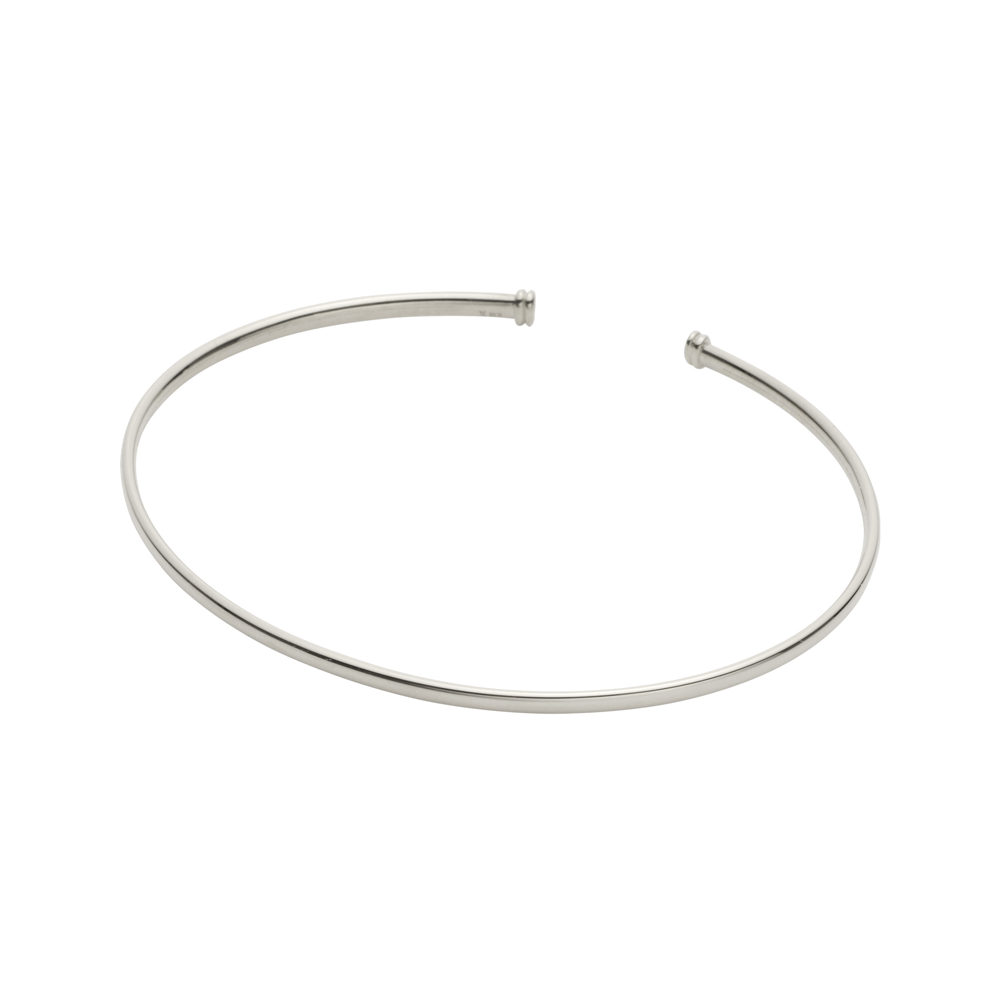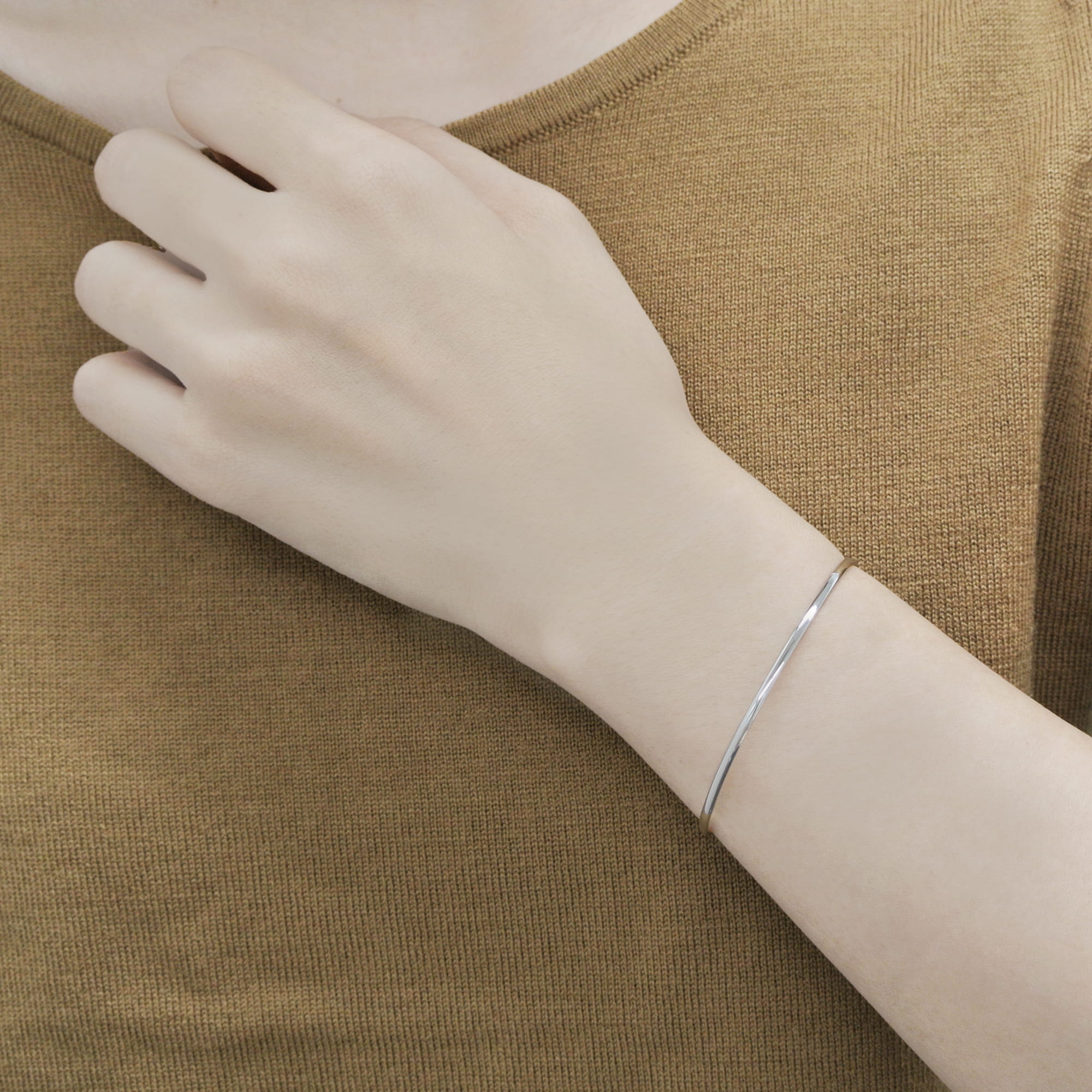 つや感のある光沢を放つホワイトゴールドがクリーンな印象を与えつつも、細みで繊細なラインが手元を女性らしく演出してくれます。