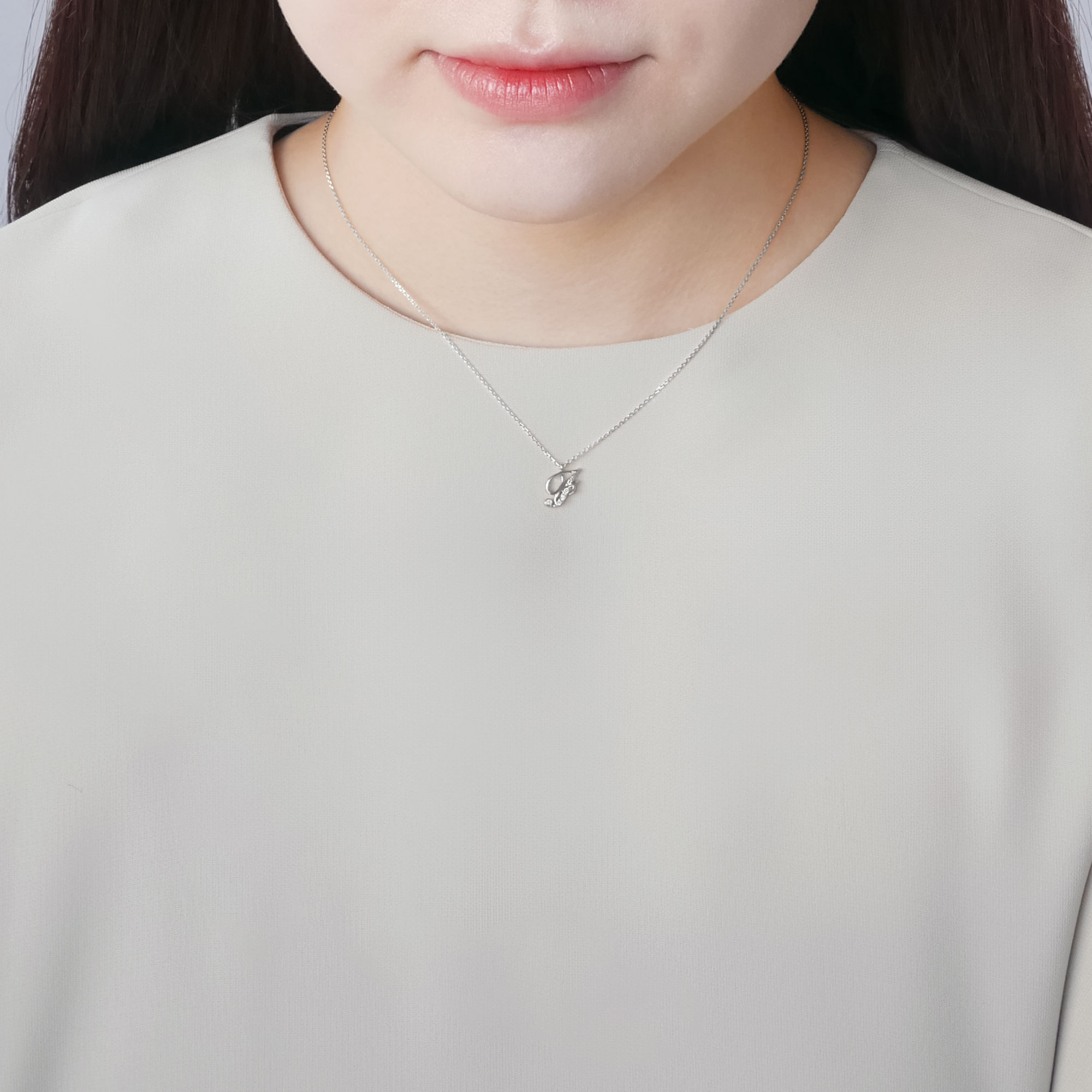 羽ペンのレタリングのような、華やかでエレガントな印象のイニシャルネックレス。