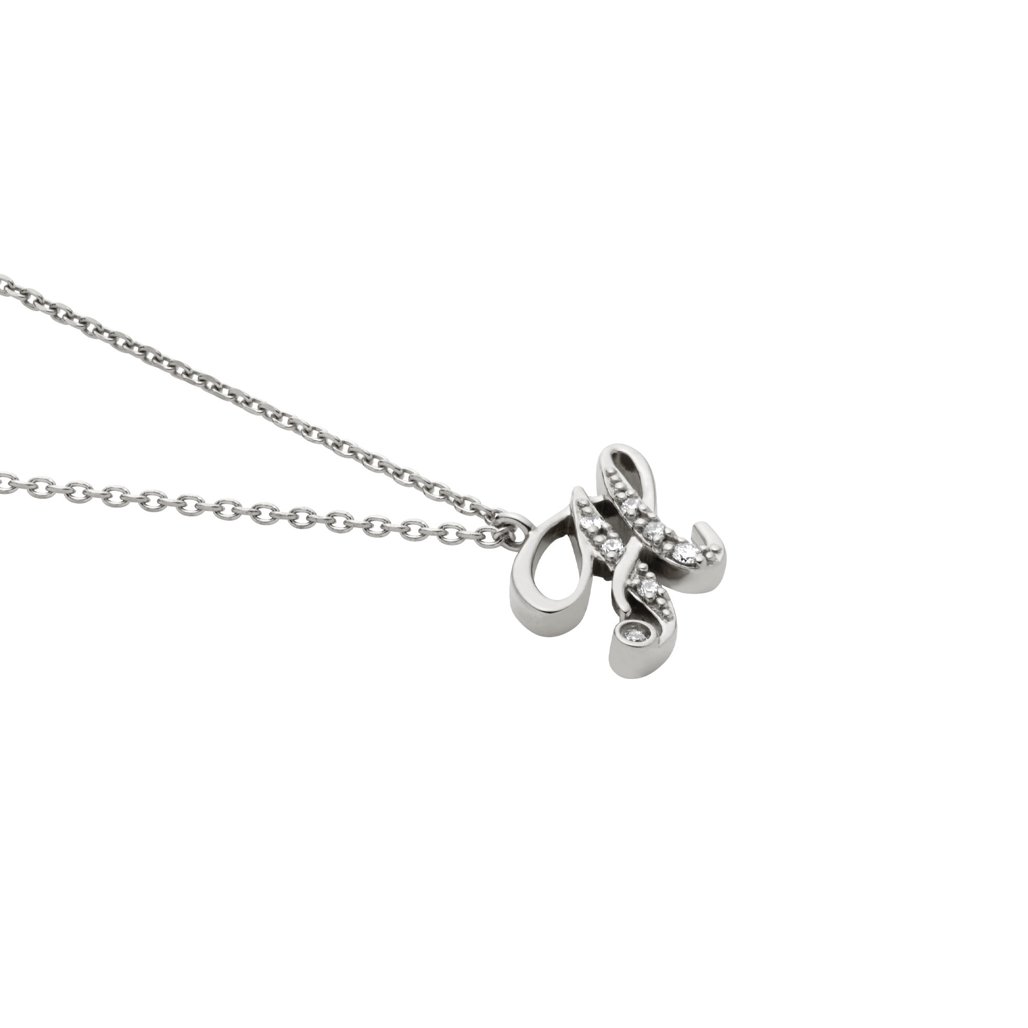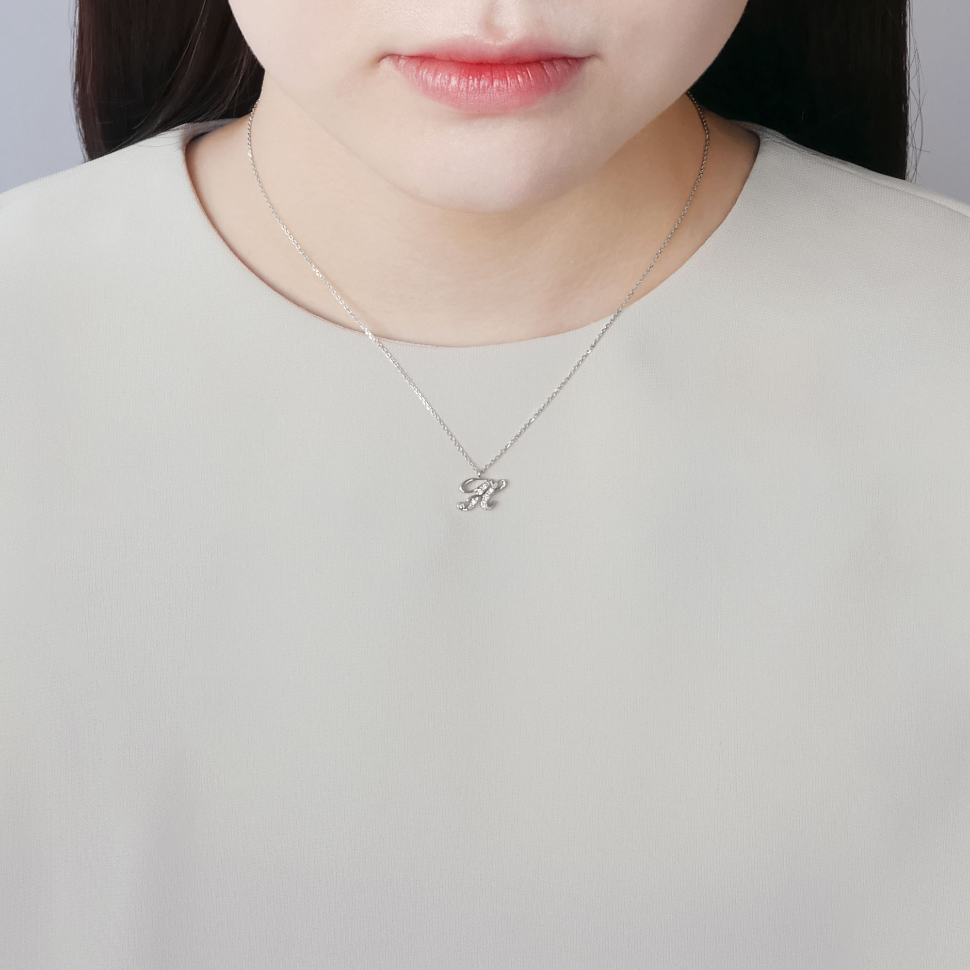 羽ペンのレタリングのような、華やかでエレガントな印象のイニシャルネックレス。