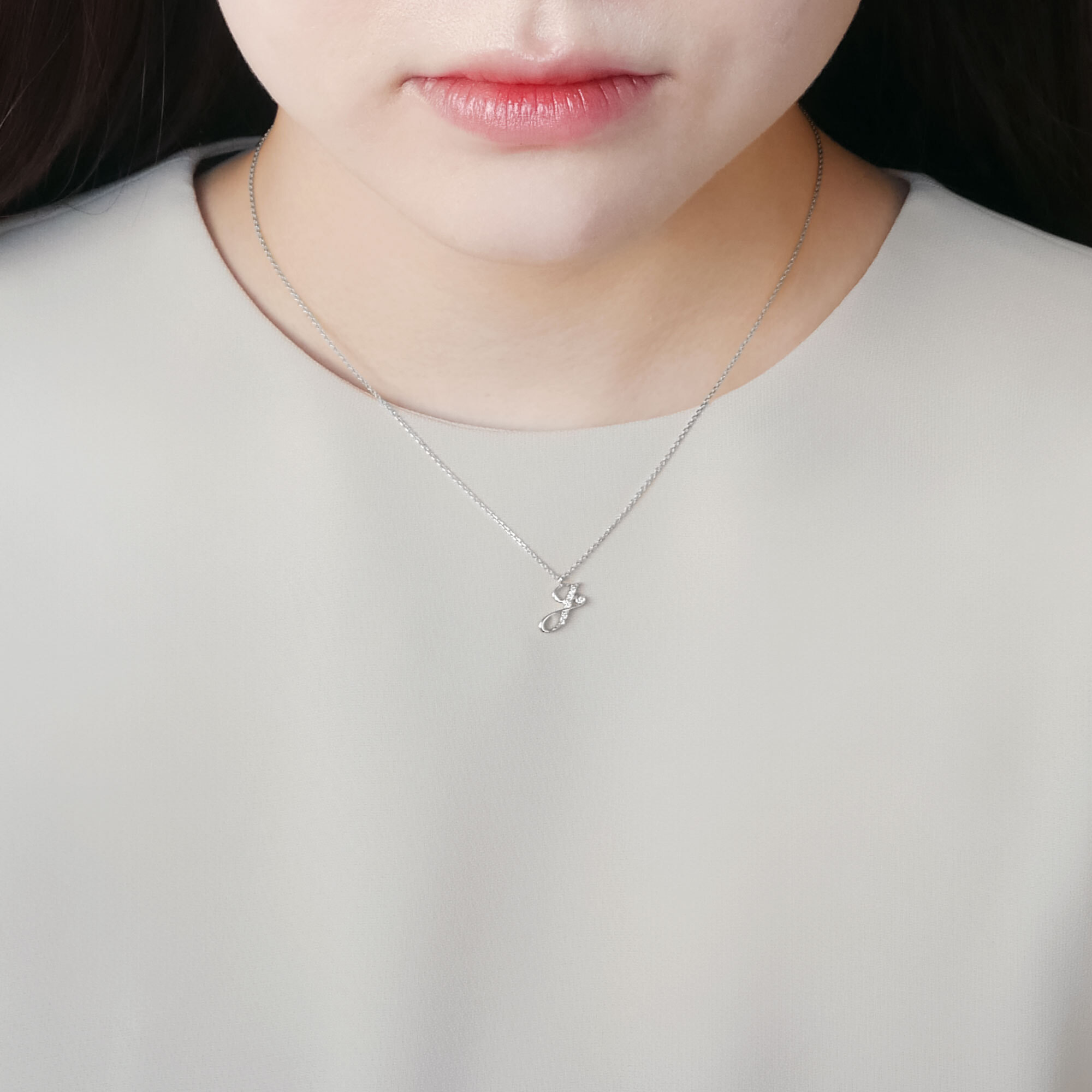 羽ペンのレタリングのような、華やかでエレガントな印象のイニシャルネックレス。