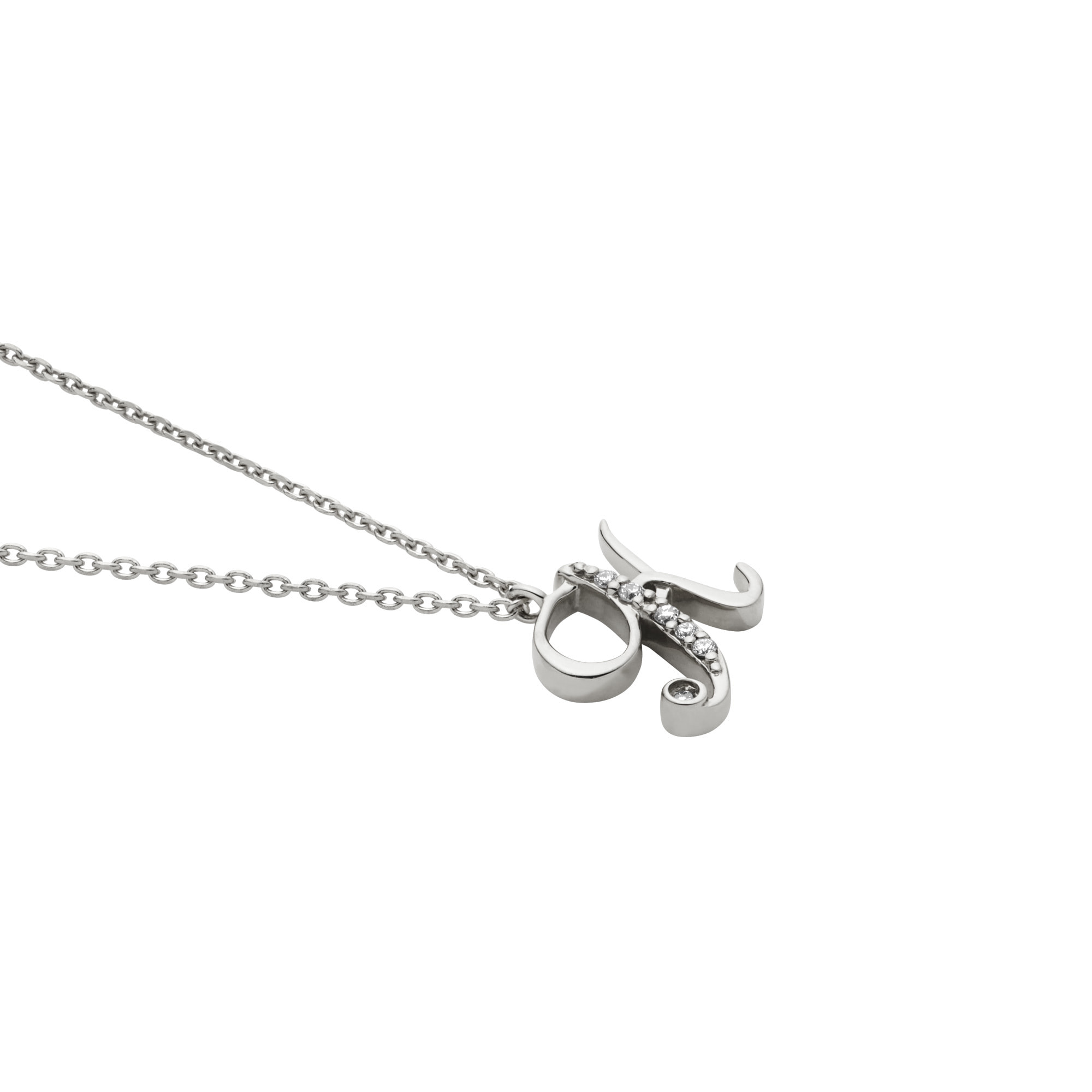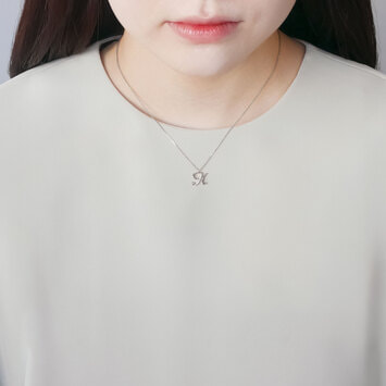 羽ペンのレタリングのような、華やかでエレガントな印象のイニシャルネックレス。