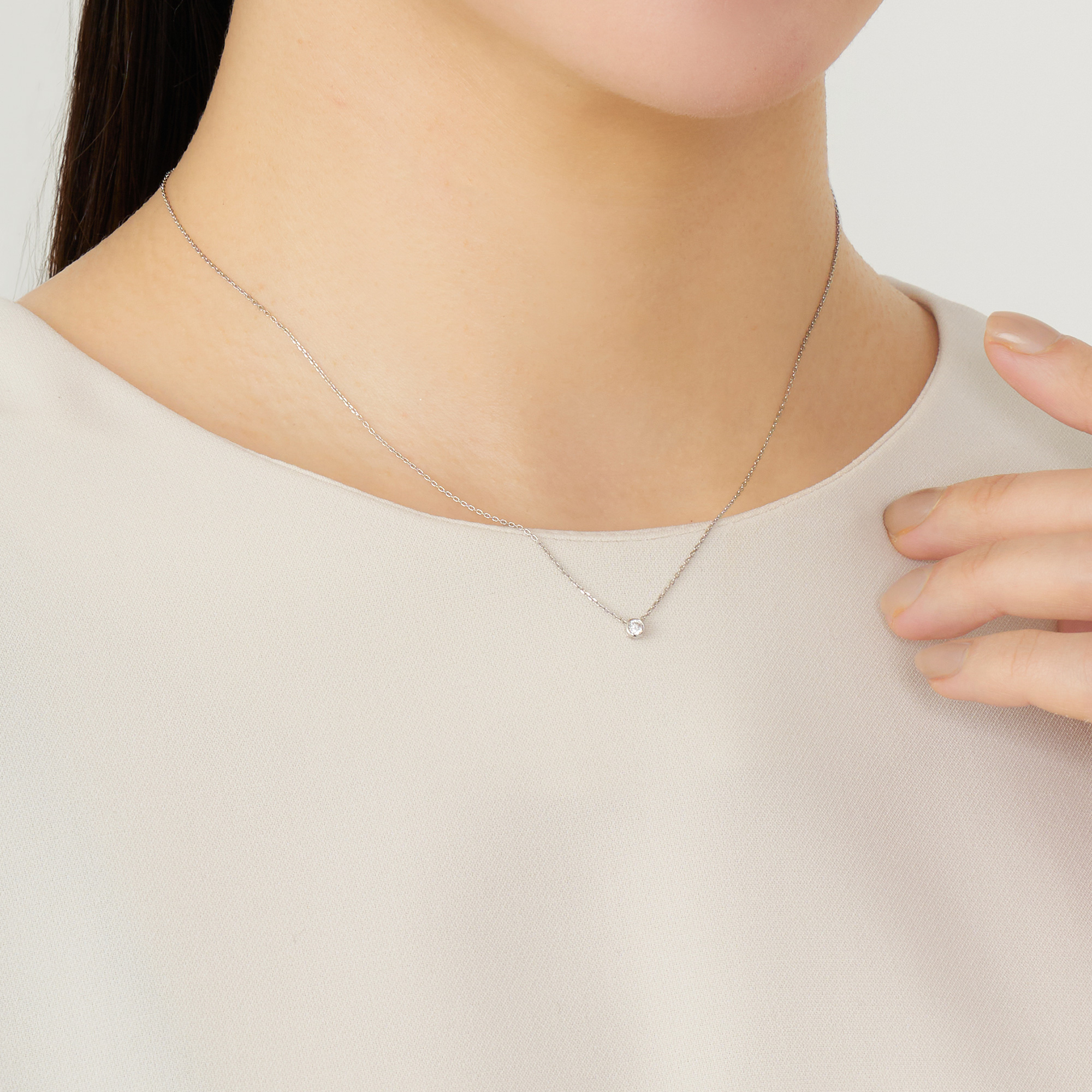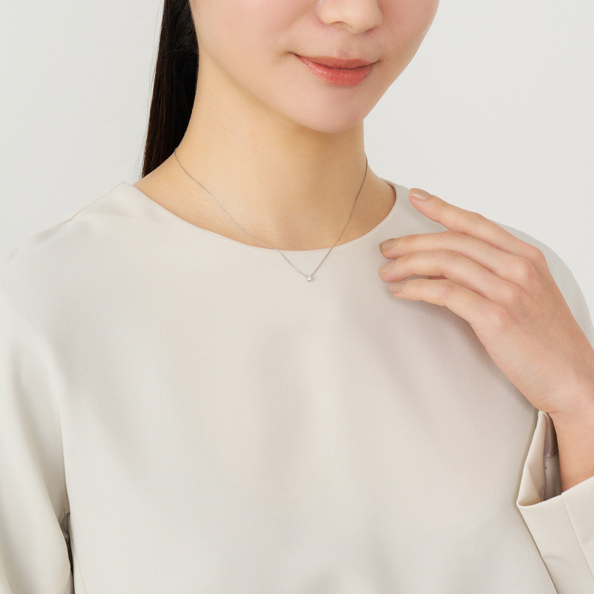 ダイヤモンドの存在を際立たせるデザインで胸元が明るく映えます。