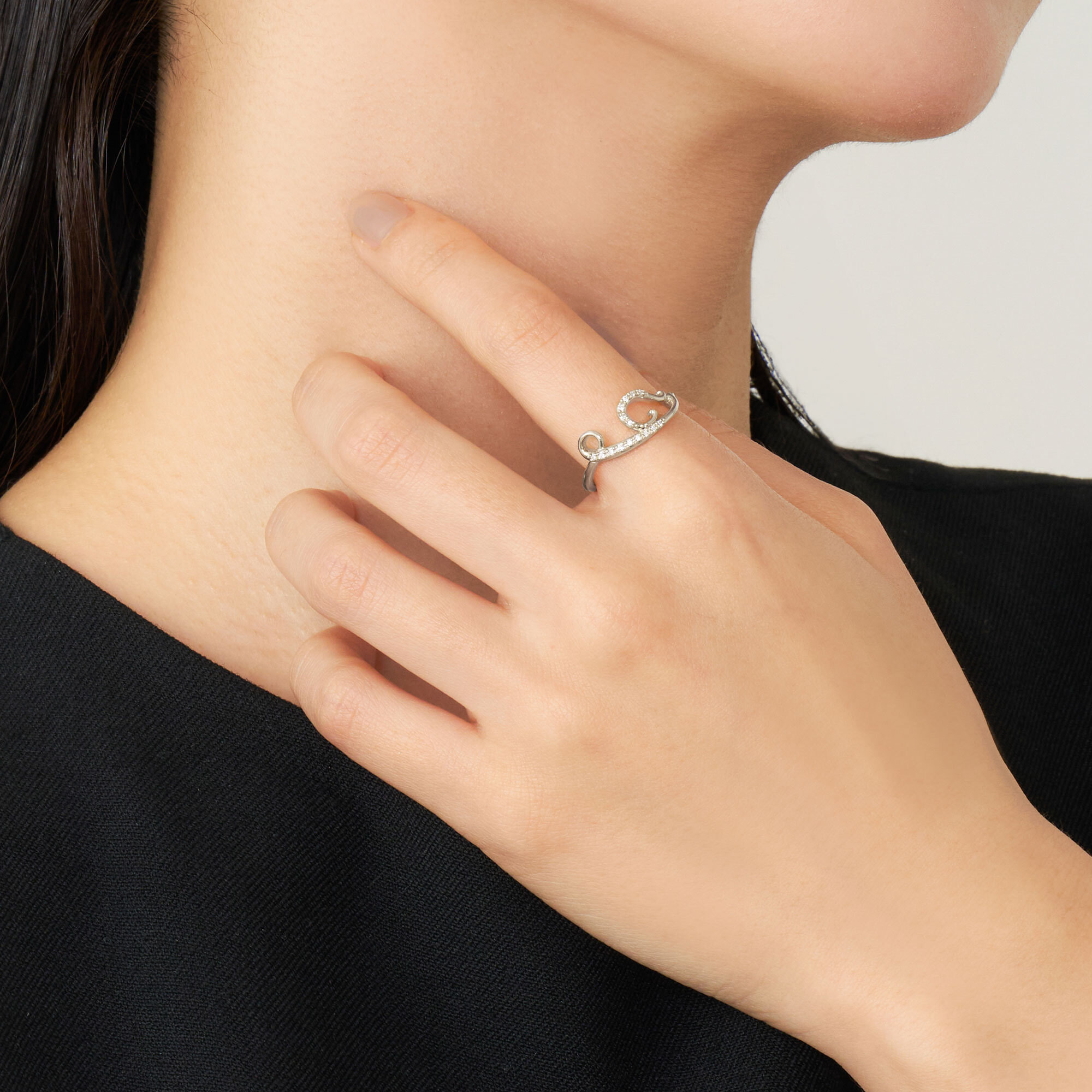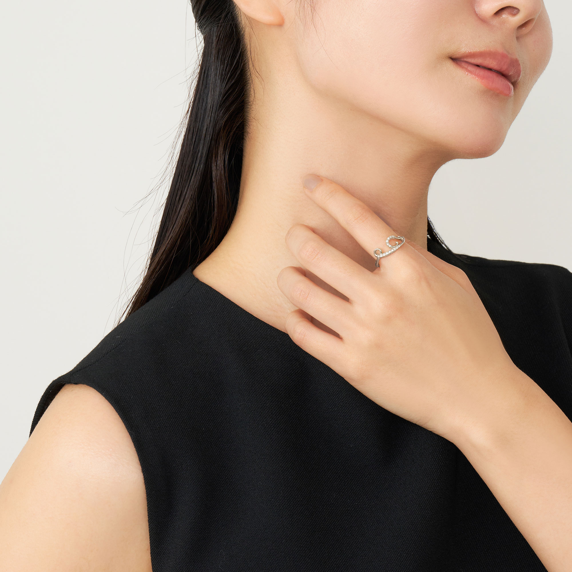 音色豊かな楽器のように、ダイヤモンドを纏った弦を指に巻き付けたようなフォルムが特徴のイニシャルリング。