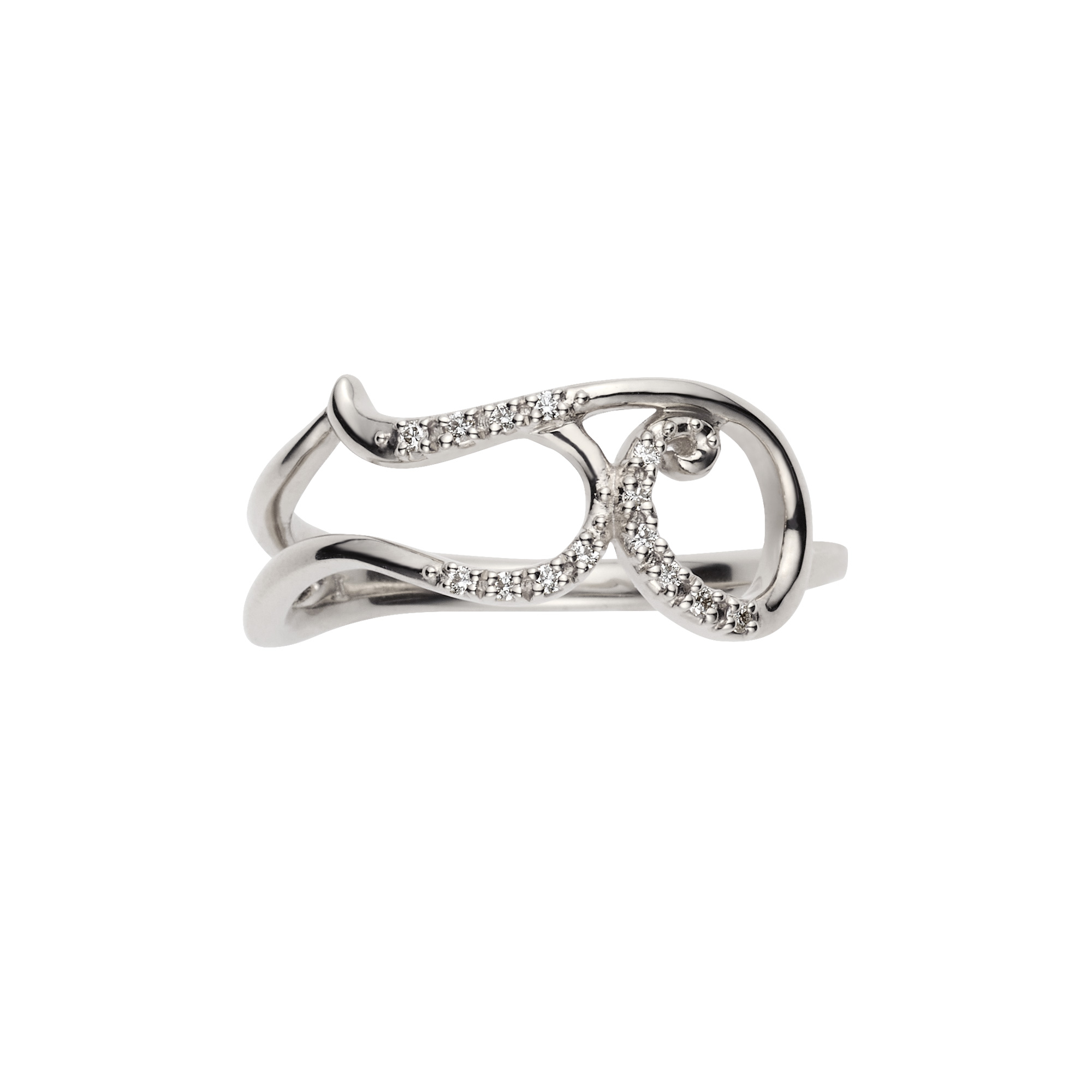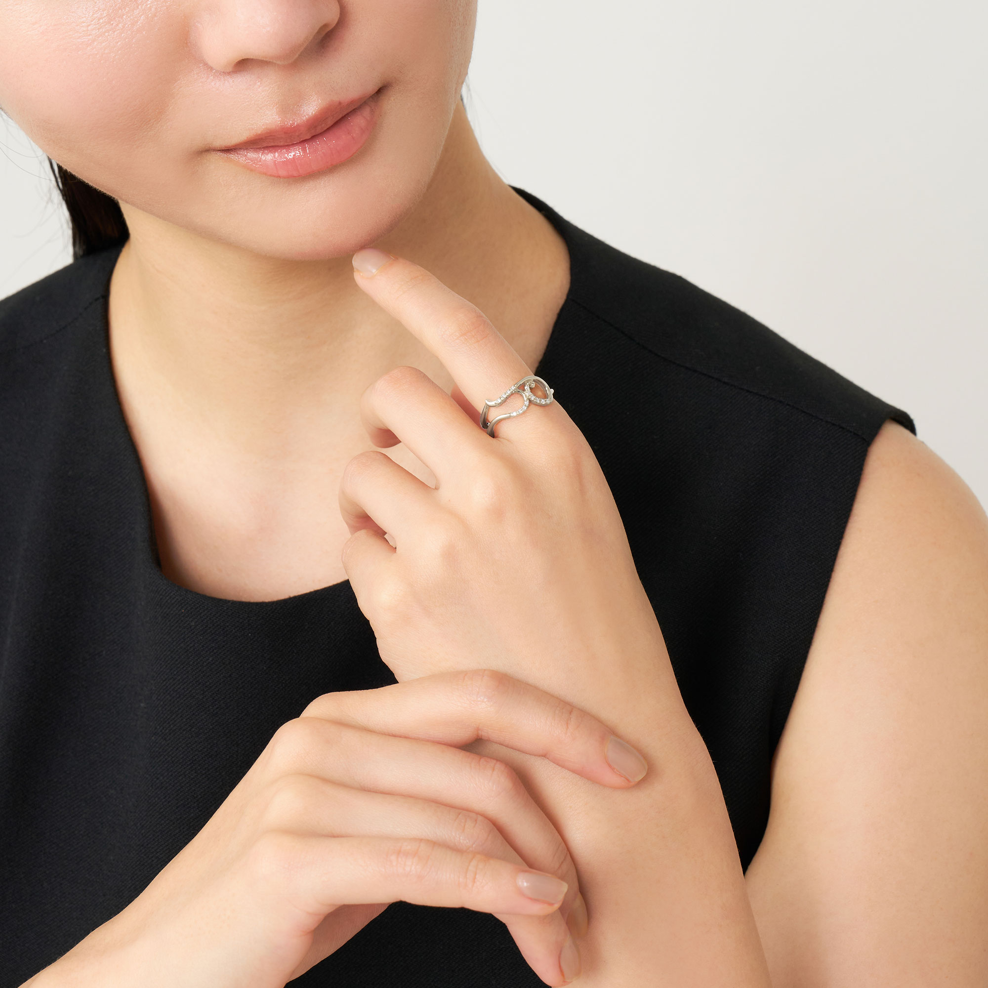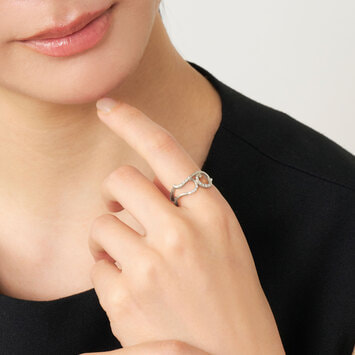 音色豊かな楽器のように、ダイヤモンドを纏った弦を指に巻き付けたようなフォルムが特徴のイニシャルリング。