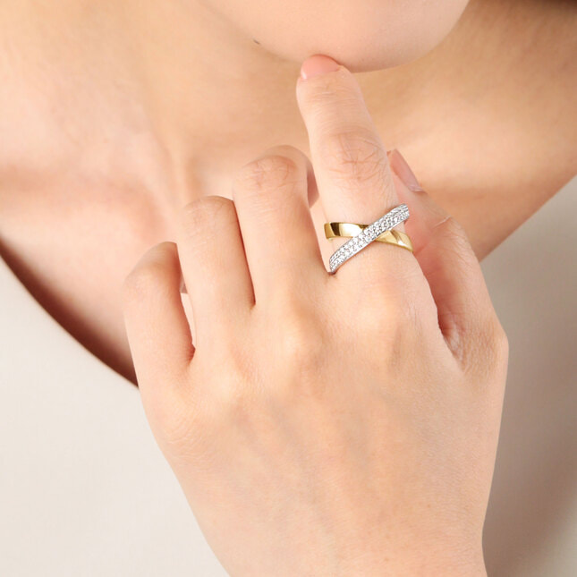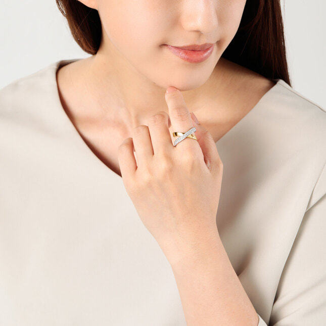 アルファベットの「X」を象った、モダンでスタイリッシュなデザインのリング。