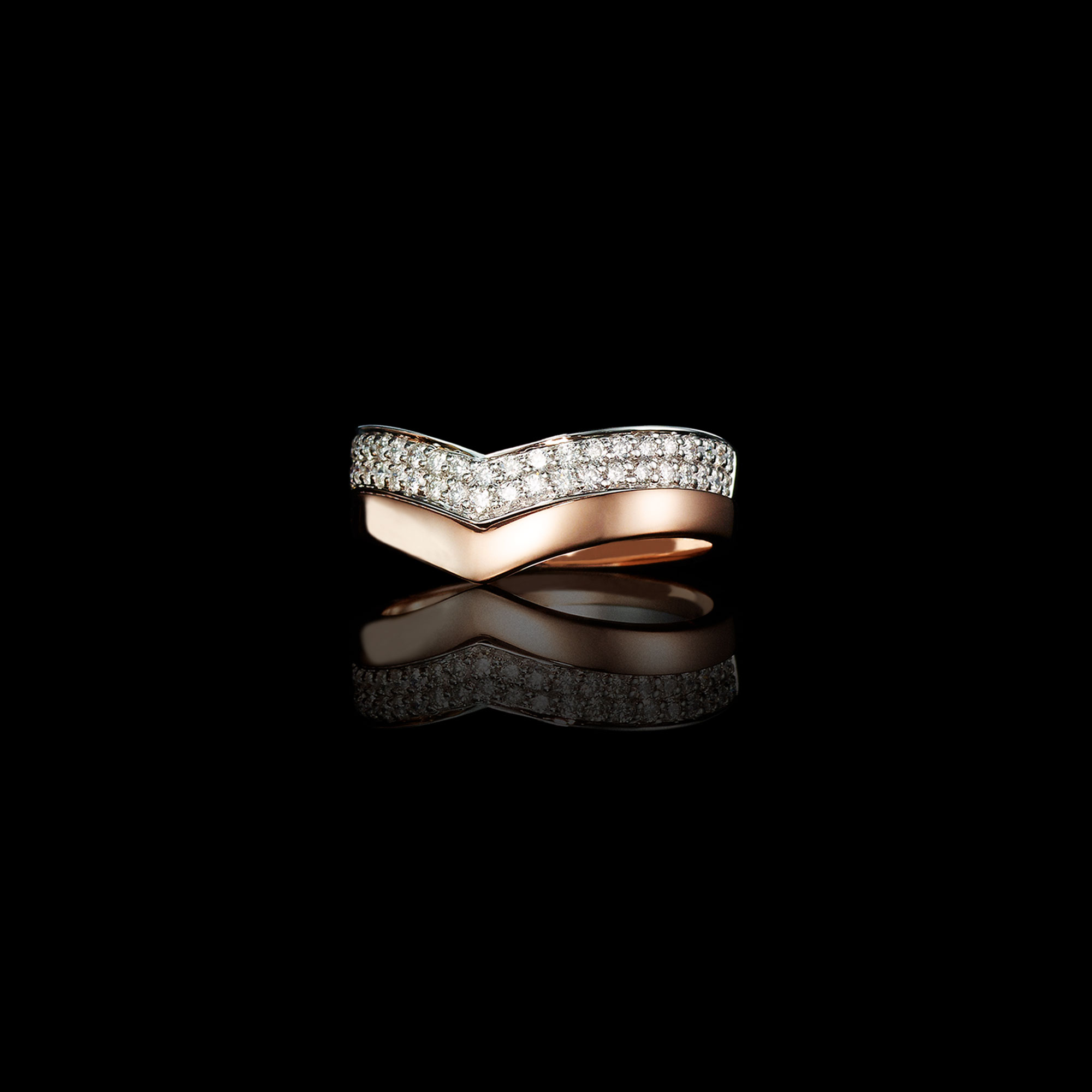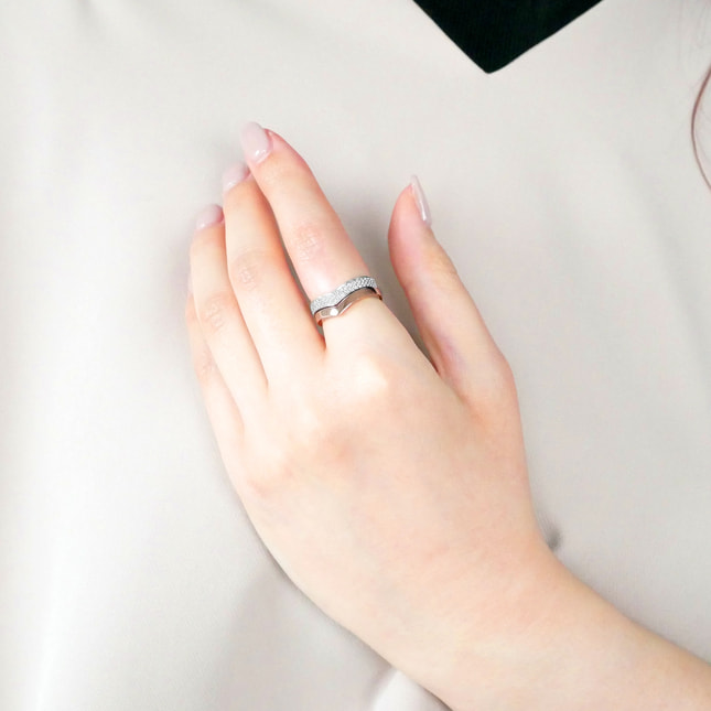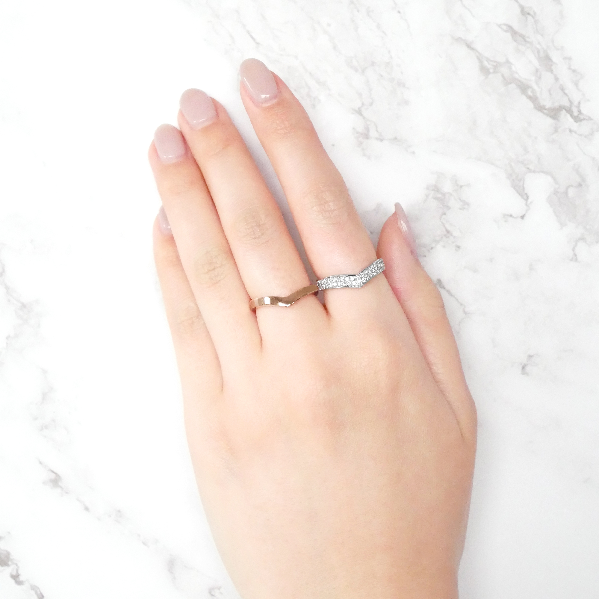 ブランド名のイニシャル「V」を象ったラインを2本重ねたセットリングです。