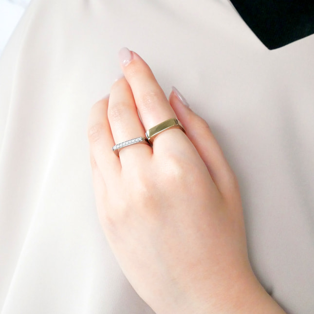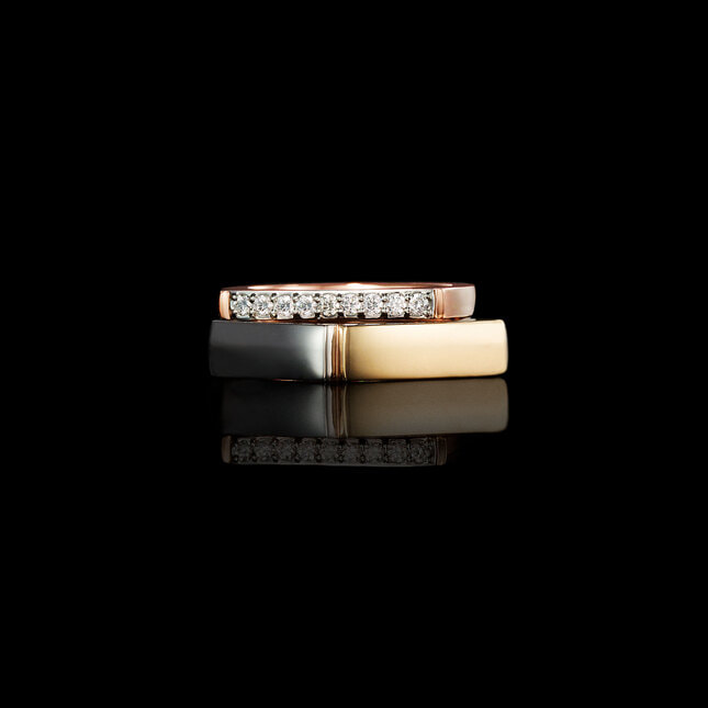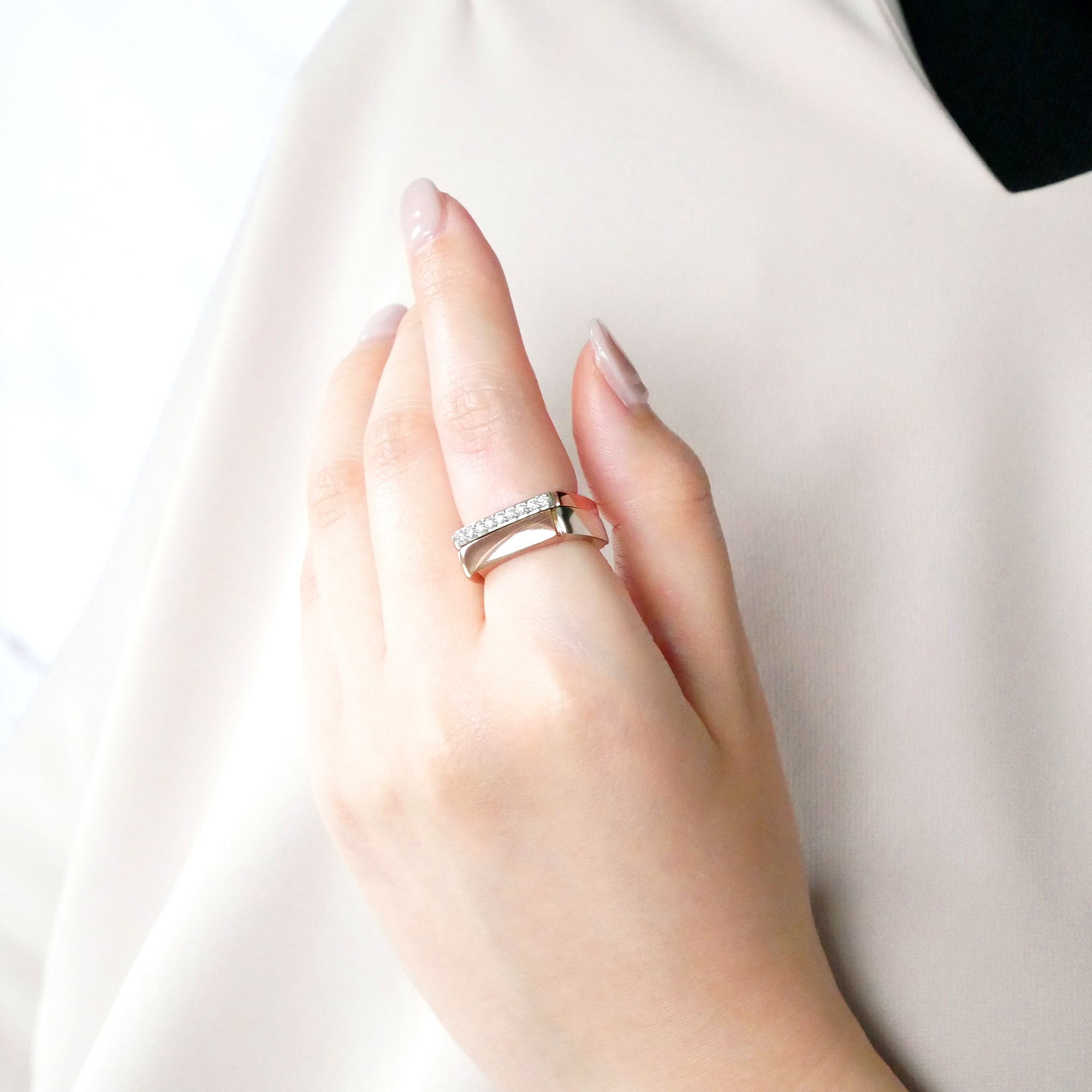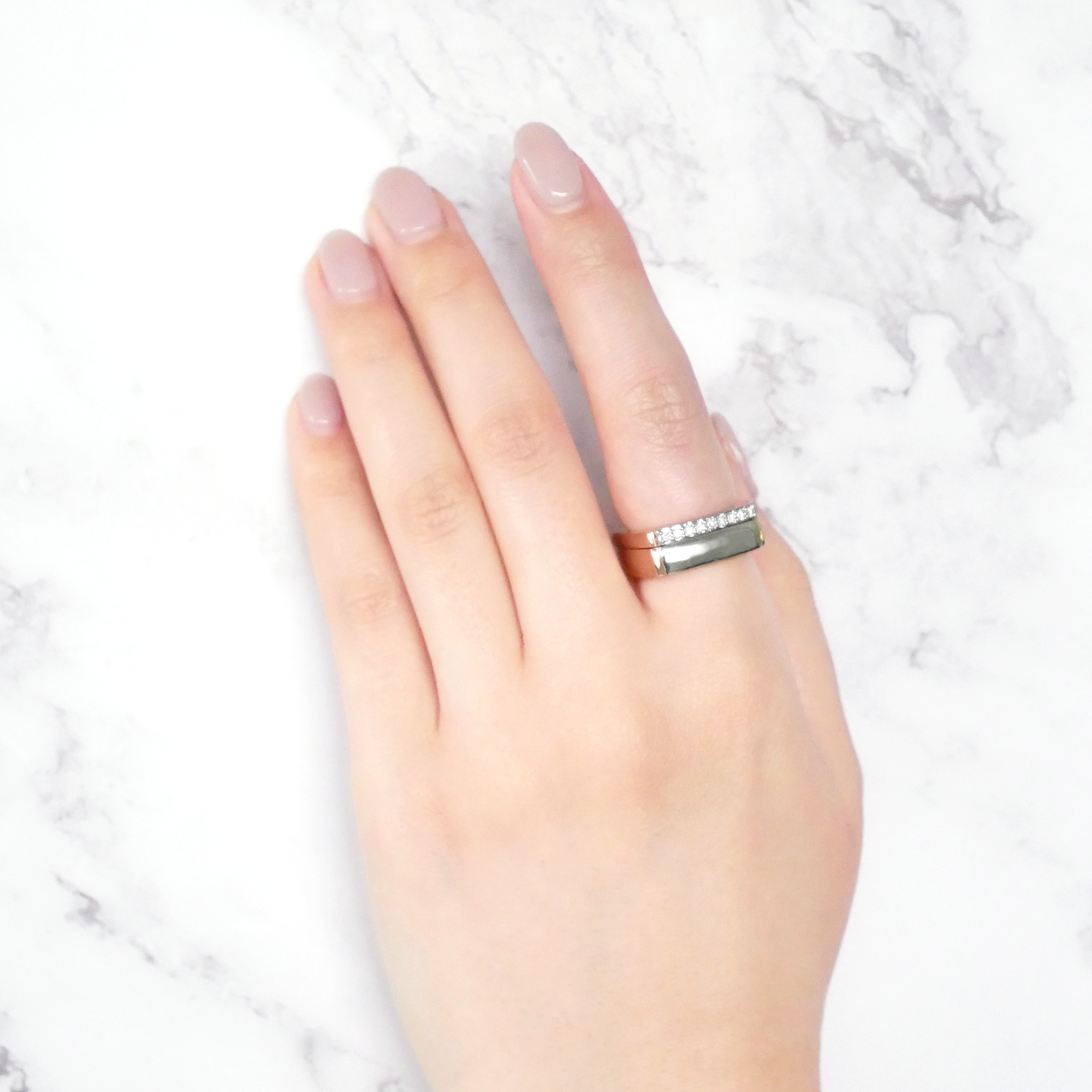 ピンクゴールド、イエローゴールド、プラチナ、ダイヤモンドの4つの表情を持ったセットリングです。
