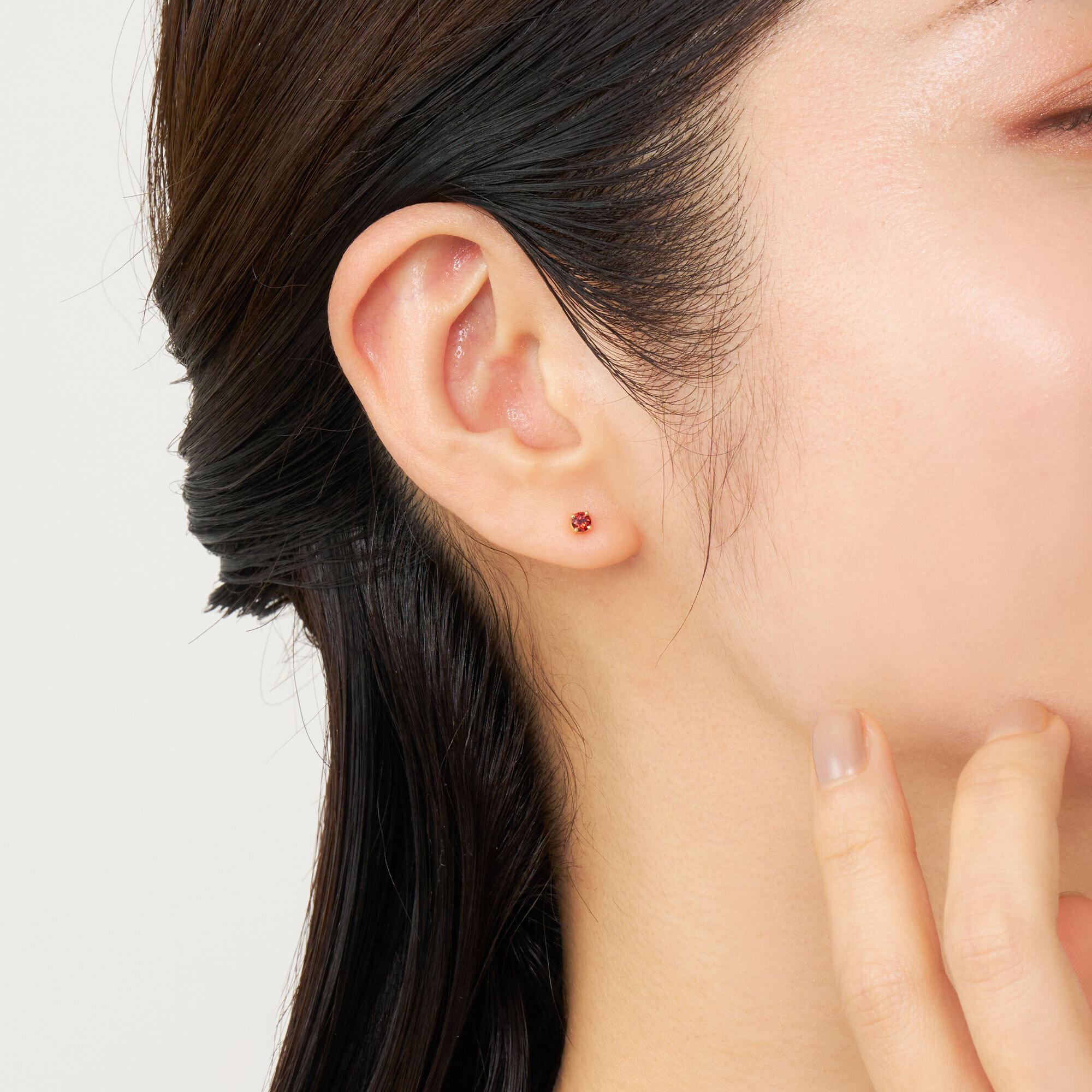 シンプルな一粒ガーネットを繊細な爪で留めたピアス。