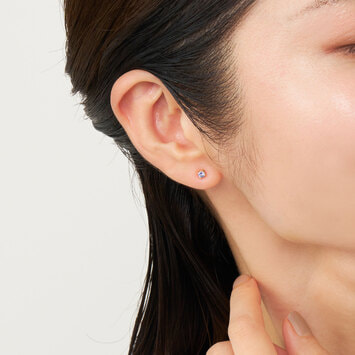 シンプルな一粒タンザナイトを繊細な爪で留めたピアス。
