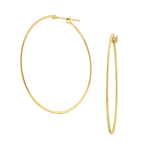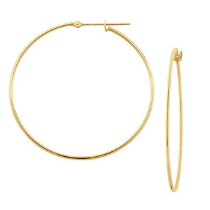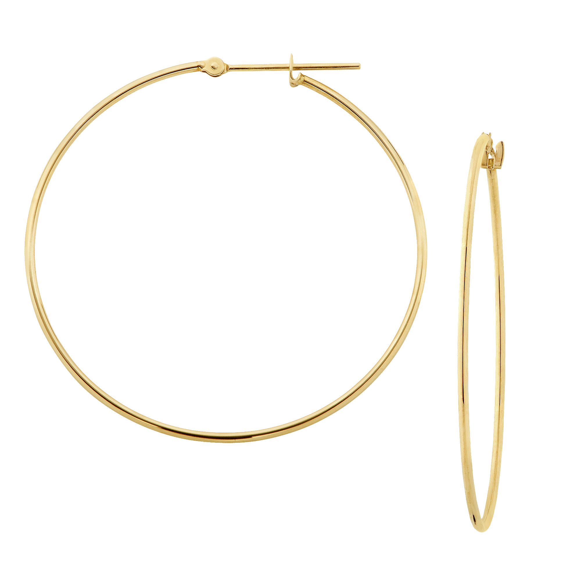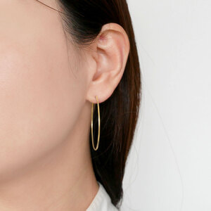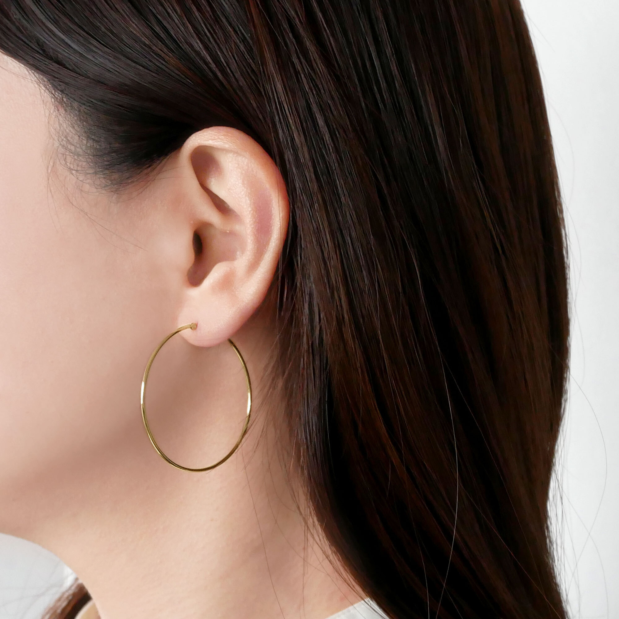 コーディネートをさりげなく華やかに見せてくれるイエローゴールドのフープピアス。