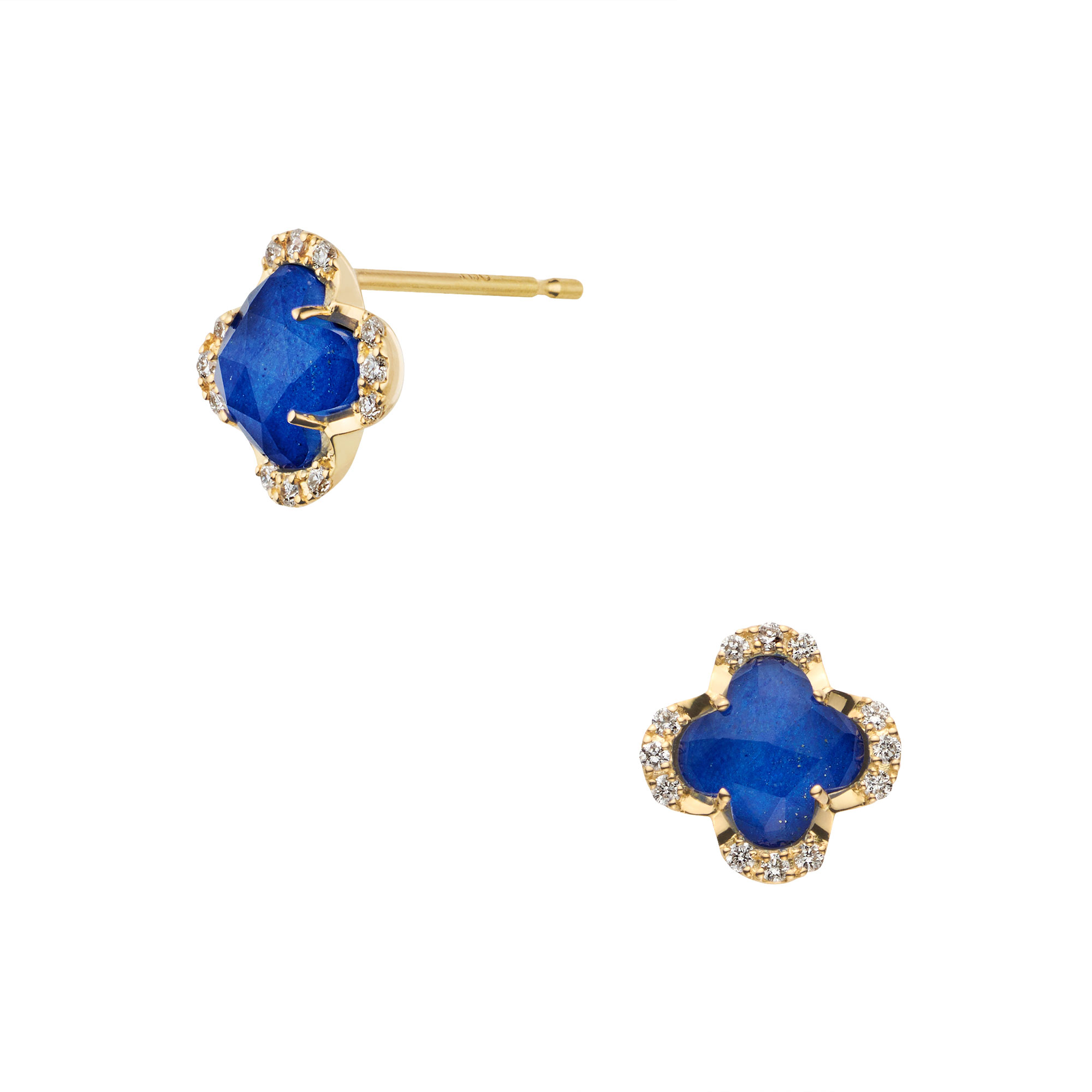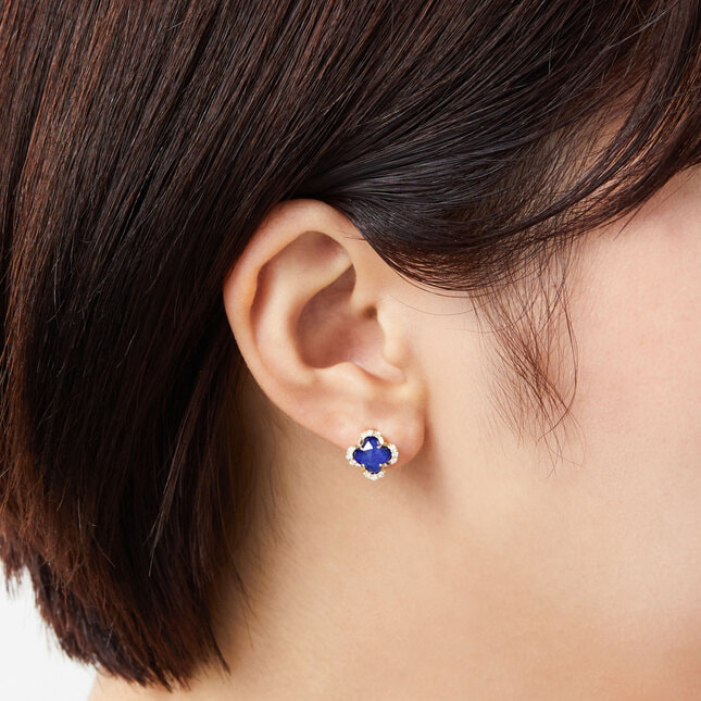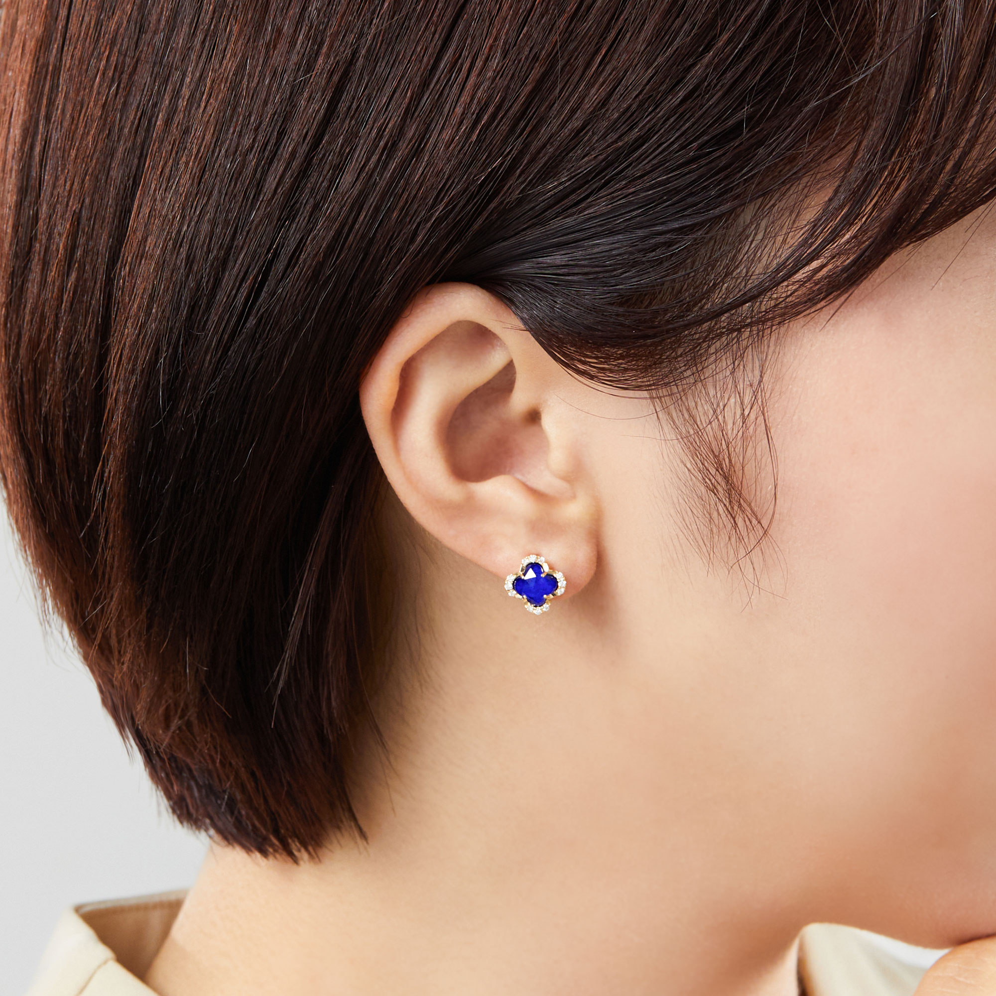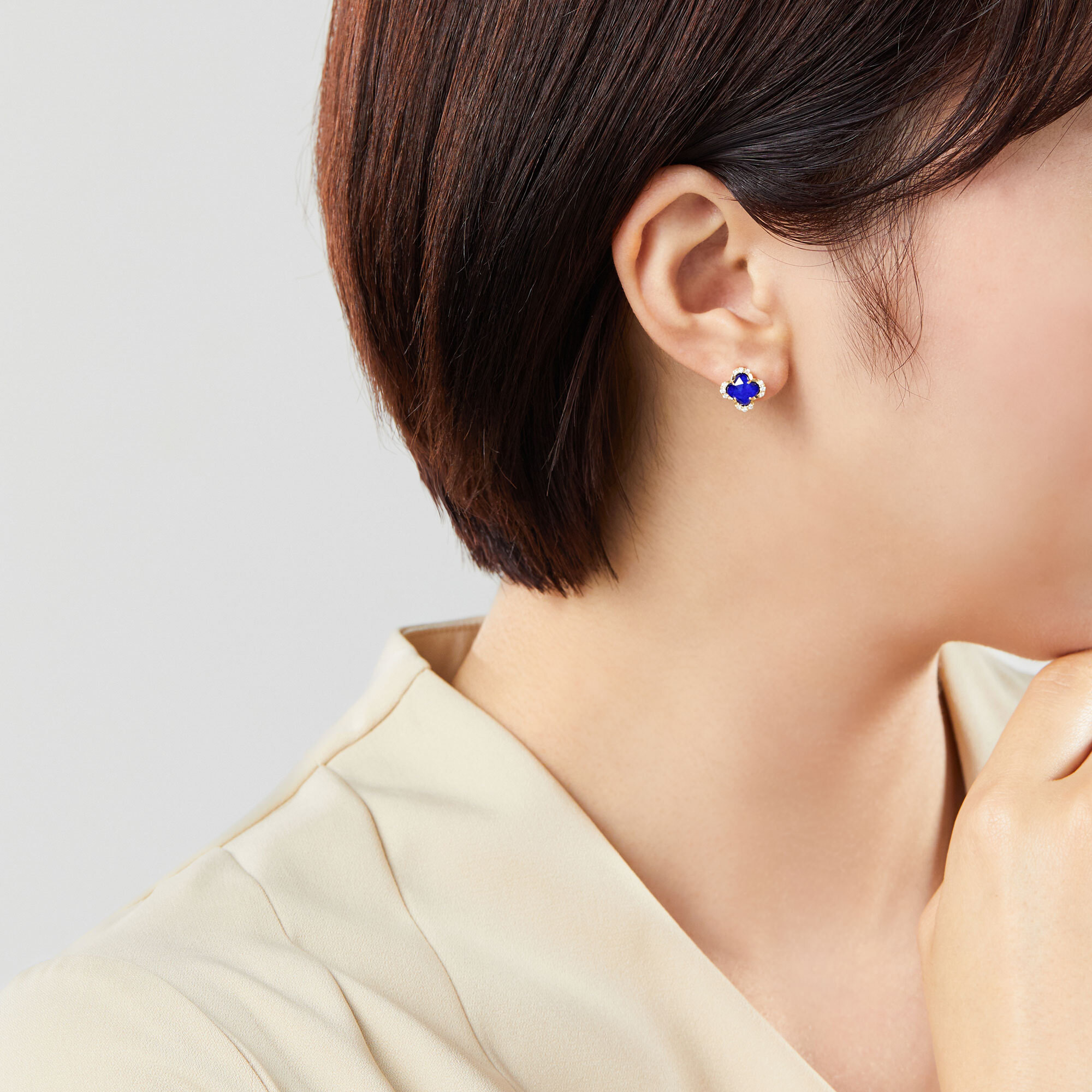 ラピスラズリとブルートパーズを組み合わせた色鮮やかなカラーリングで、クローバーを可愛らしく描いたピアス。