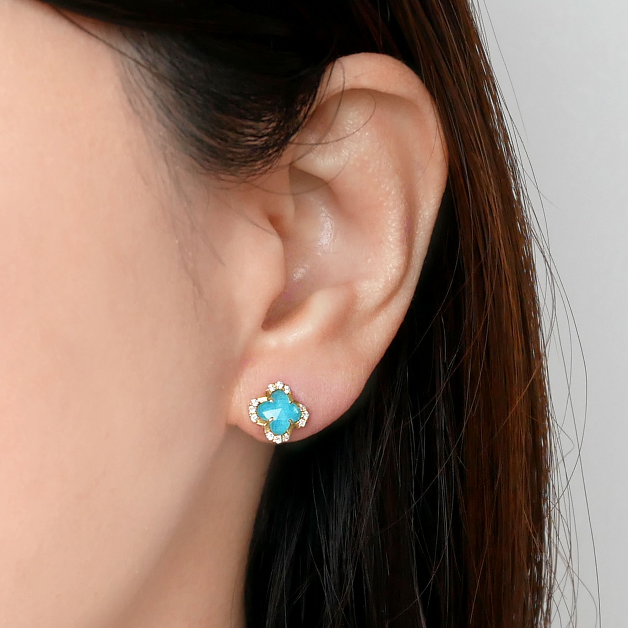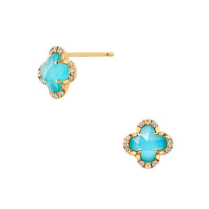イエローゴールドに色鮮やかなターコイズとクォーツを組み合わせたピアス。
