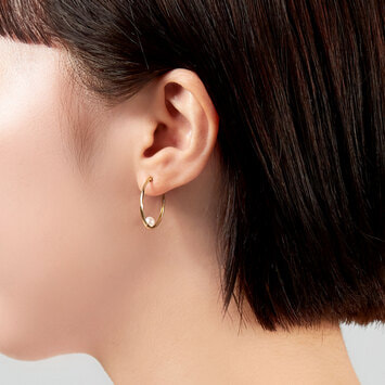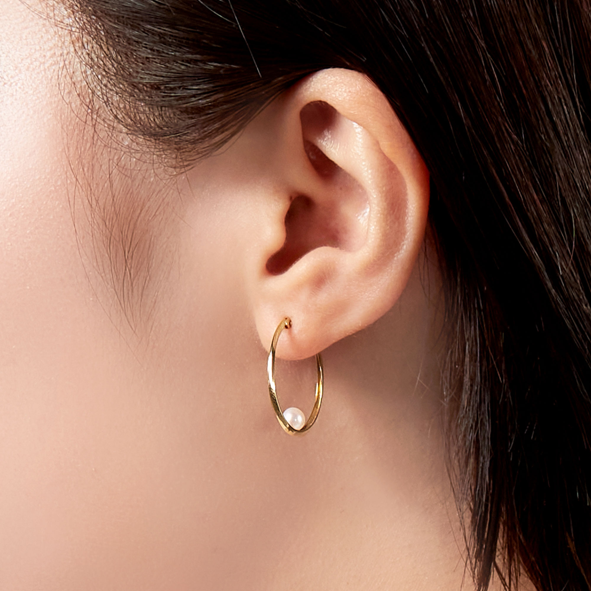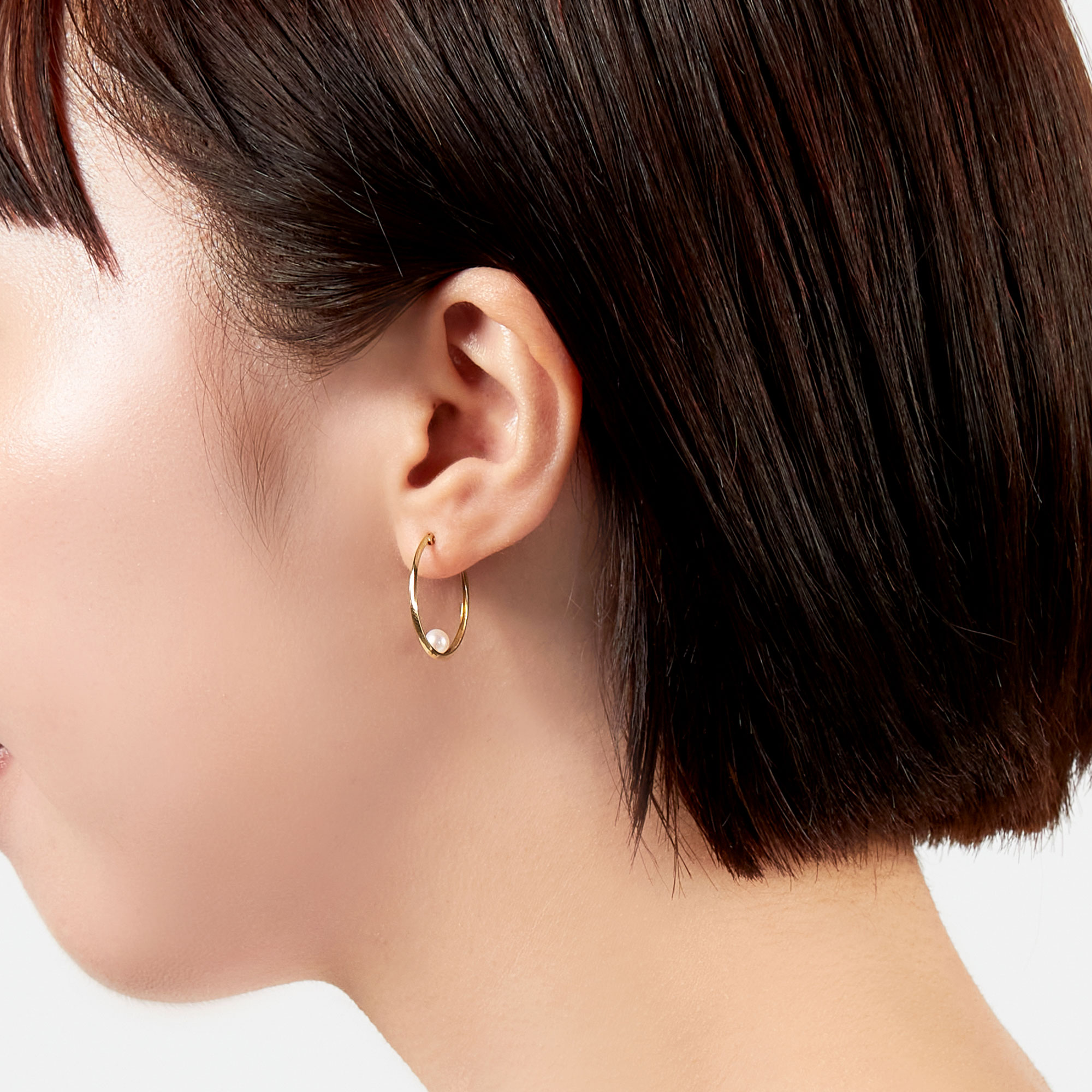シンプルなフープピアスにアコヤパールをあしらったモダンなピアス。