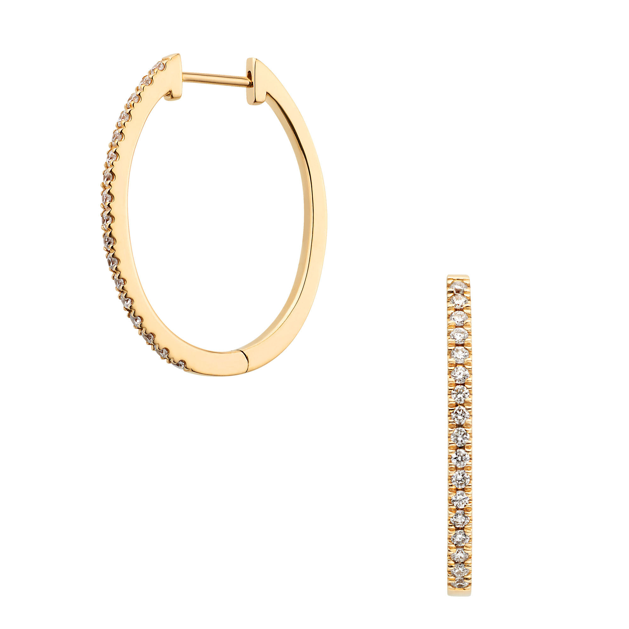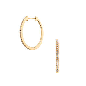 イエローゴールドのフープにダイヤモンドをあしらったベーシックなピアス。