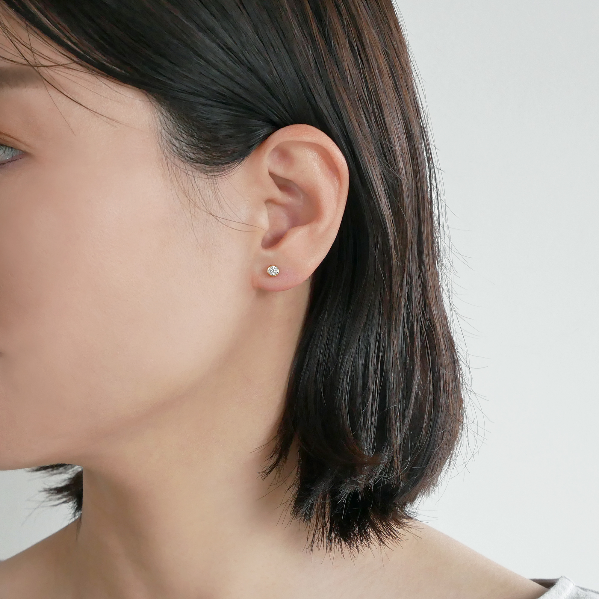 最もシンプルなデザインで、一粒のダイヤモンドの輝きを引き立てるピアス。