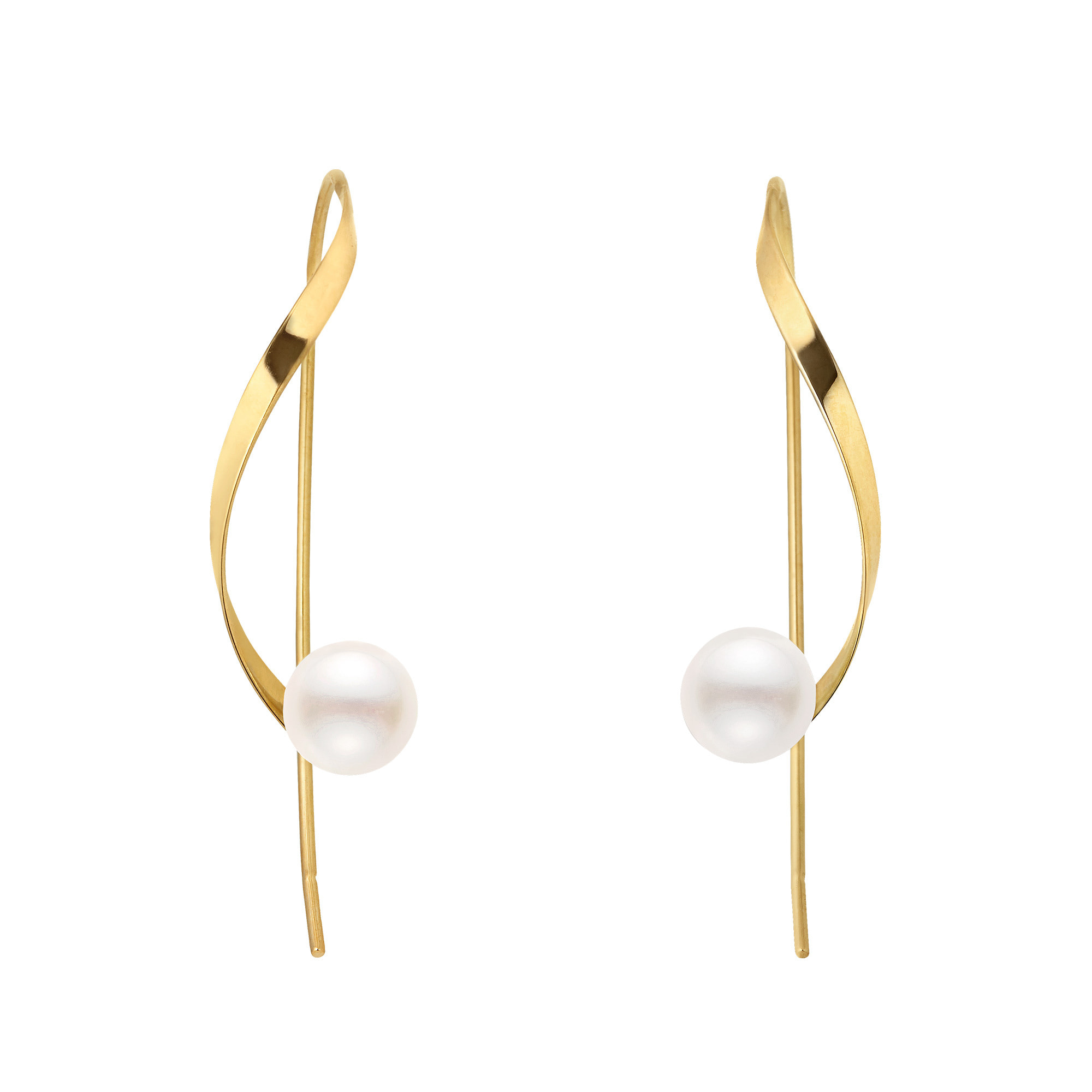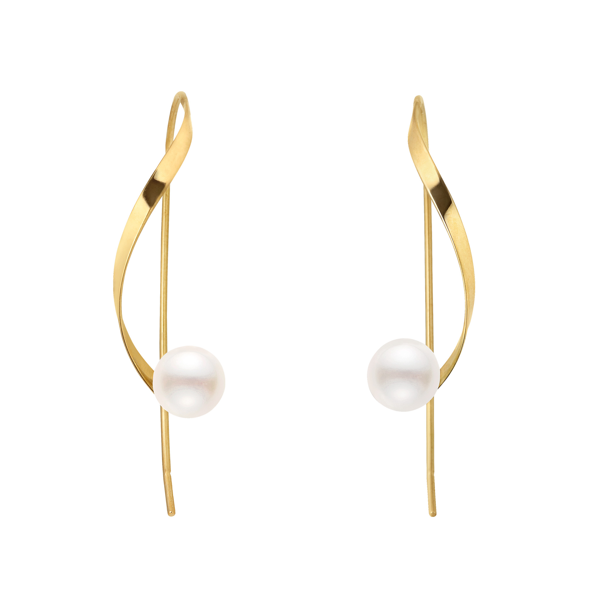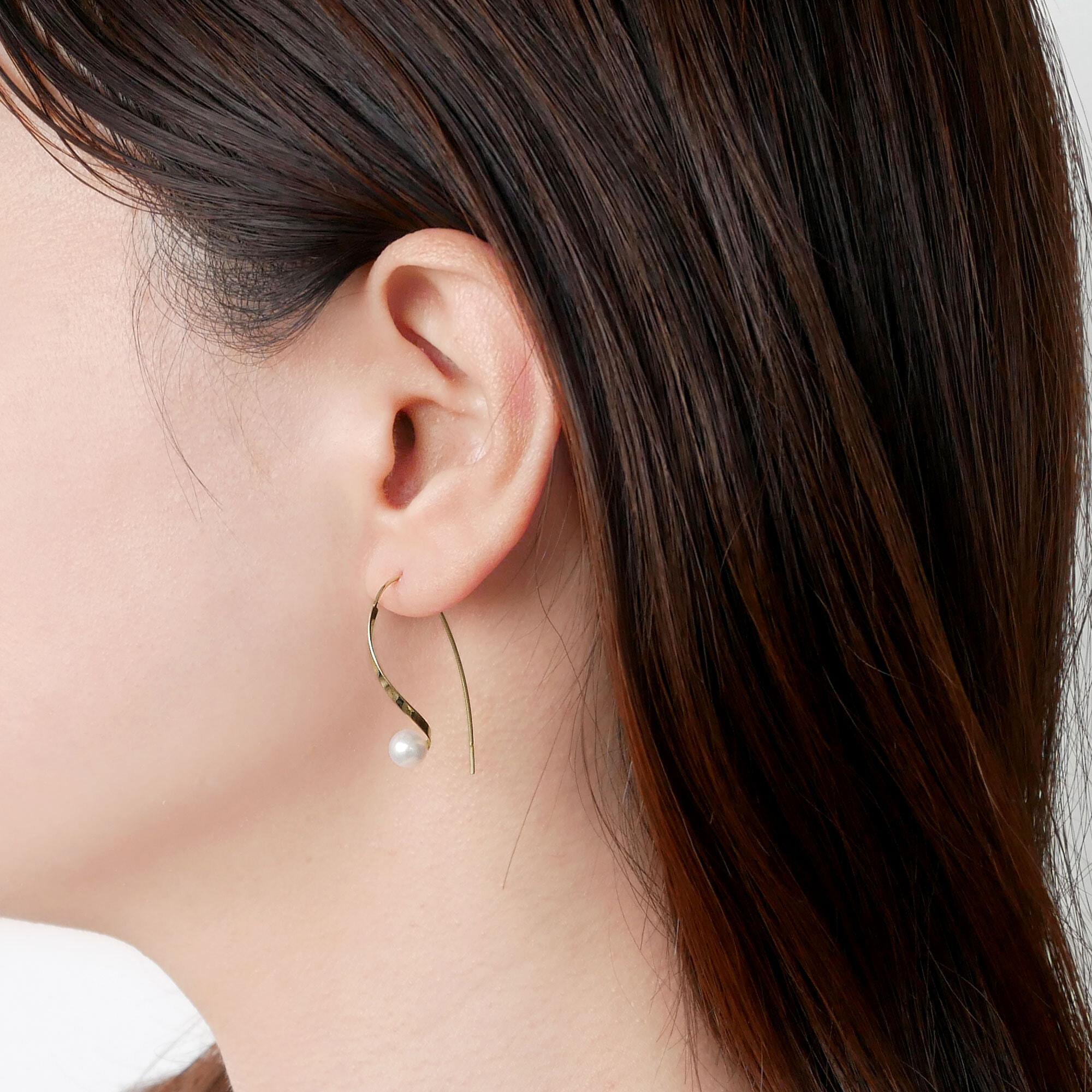 やわらかくカーブした地金のラインにアコヤパールをあしらったピアス。