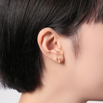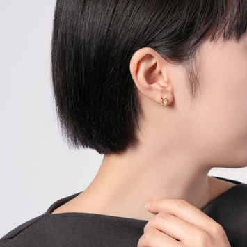 イエローゴールドとダイヤモンドのきらめくラインで描いたシルエットが耳元を上品に演出します。
