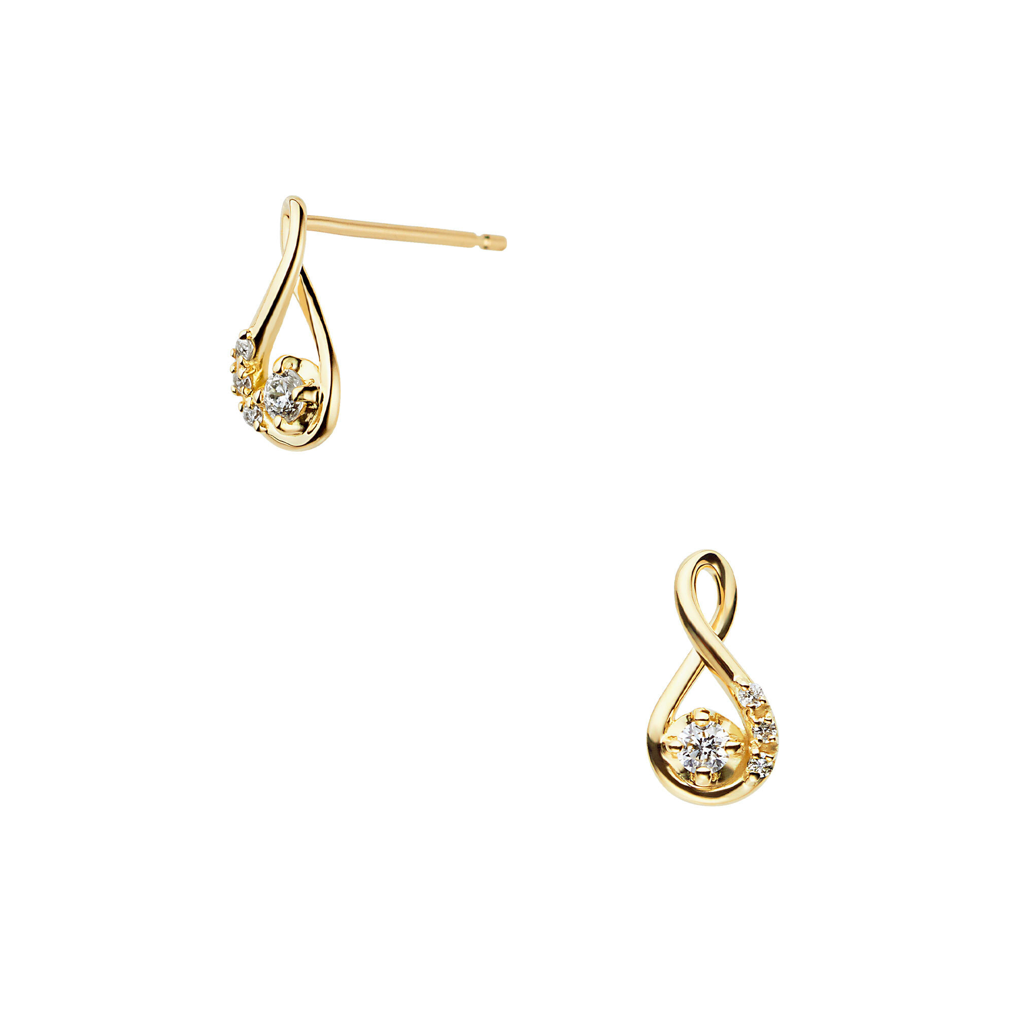 流れるような立体的なデザインに、無垢の象徴のダイヤモンドを配したピアスは、プレゼントにもおすすめのアイテムです。