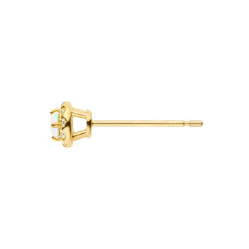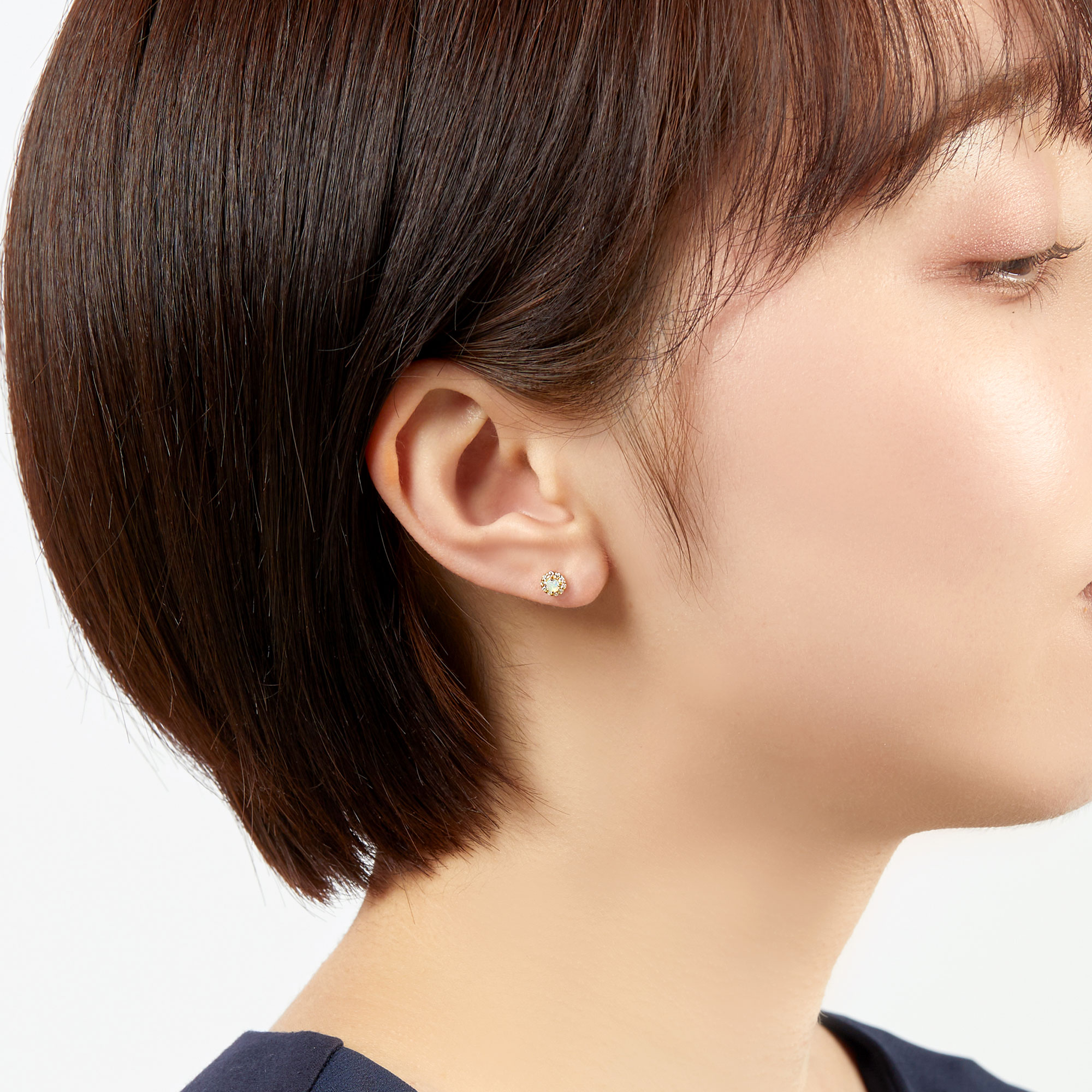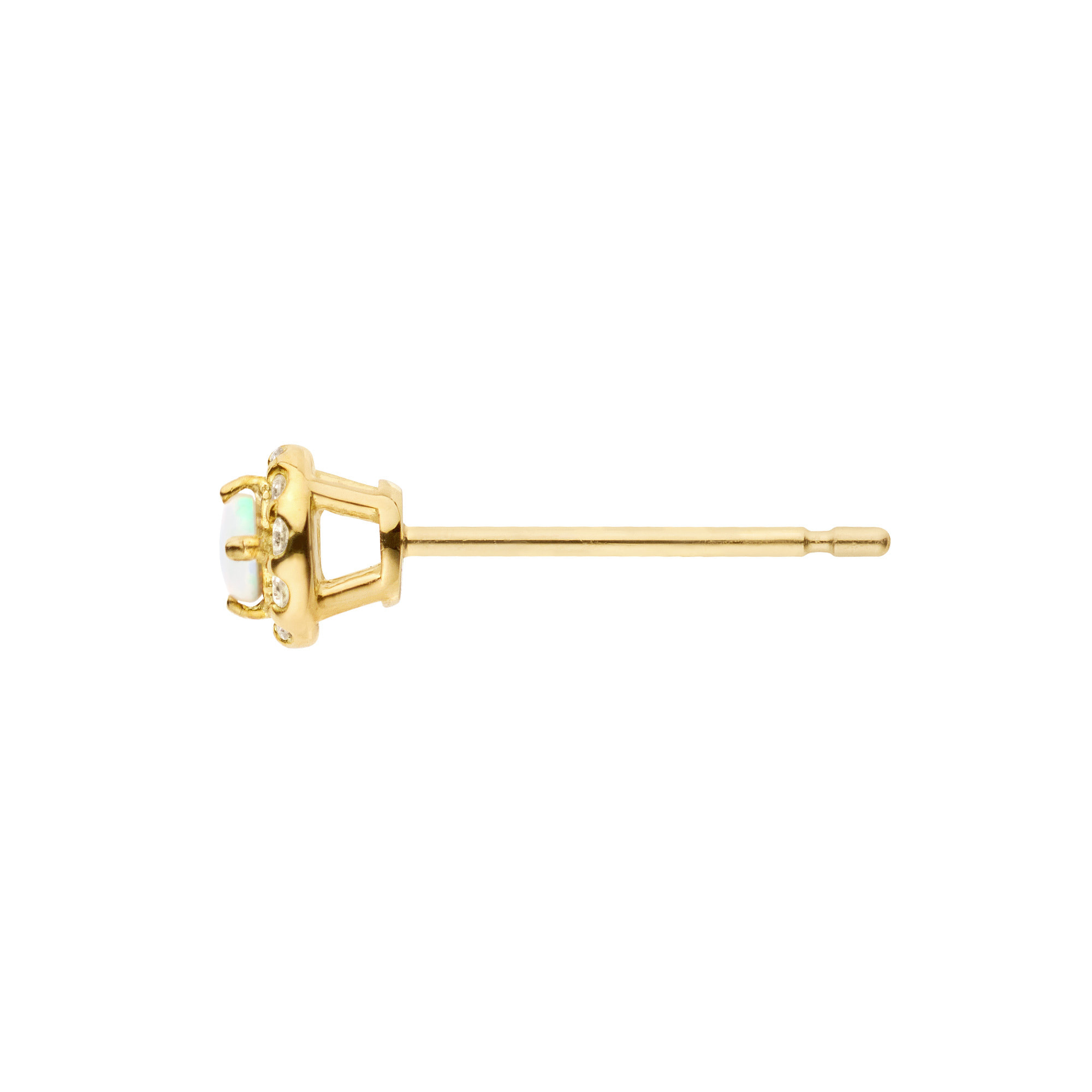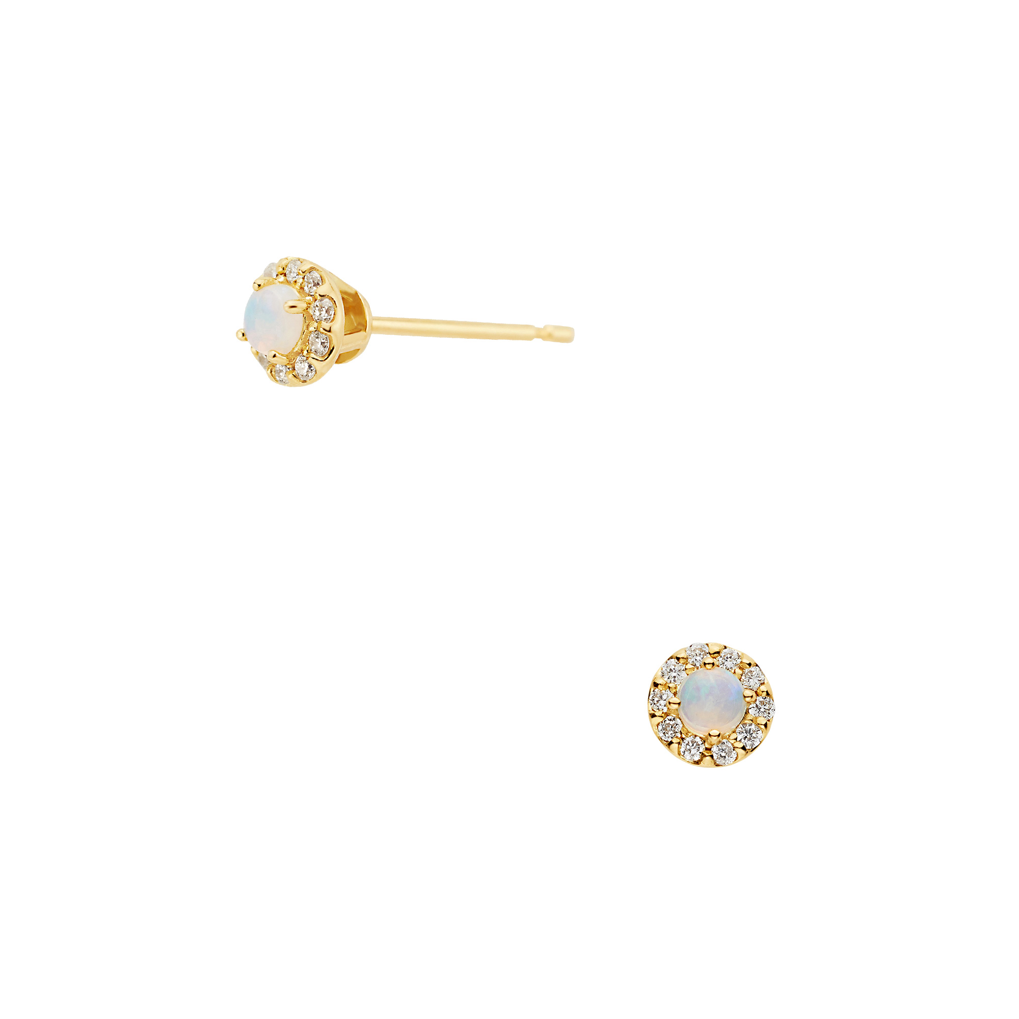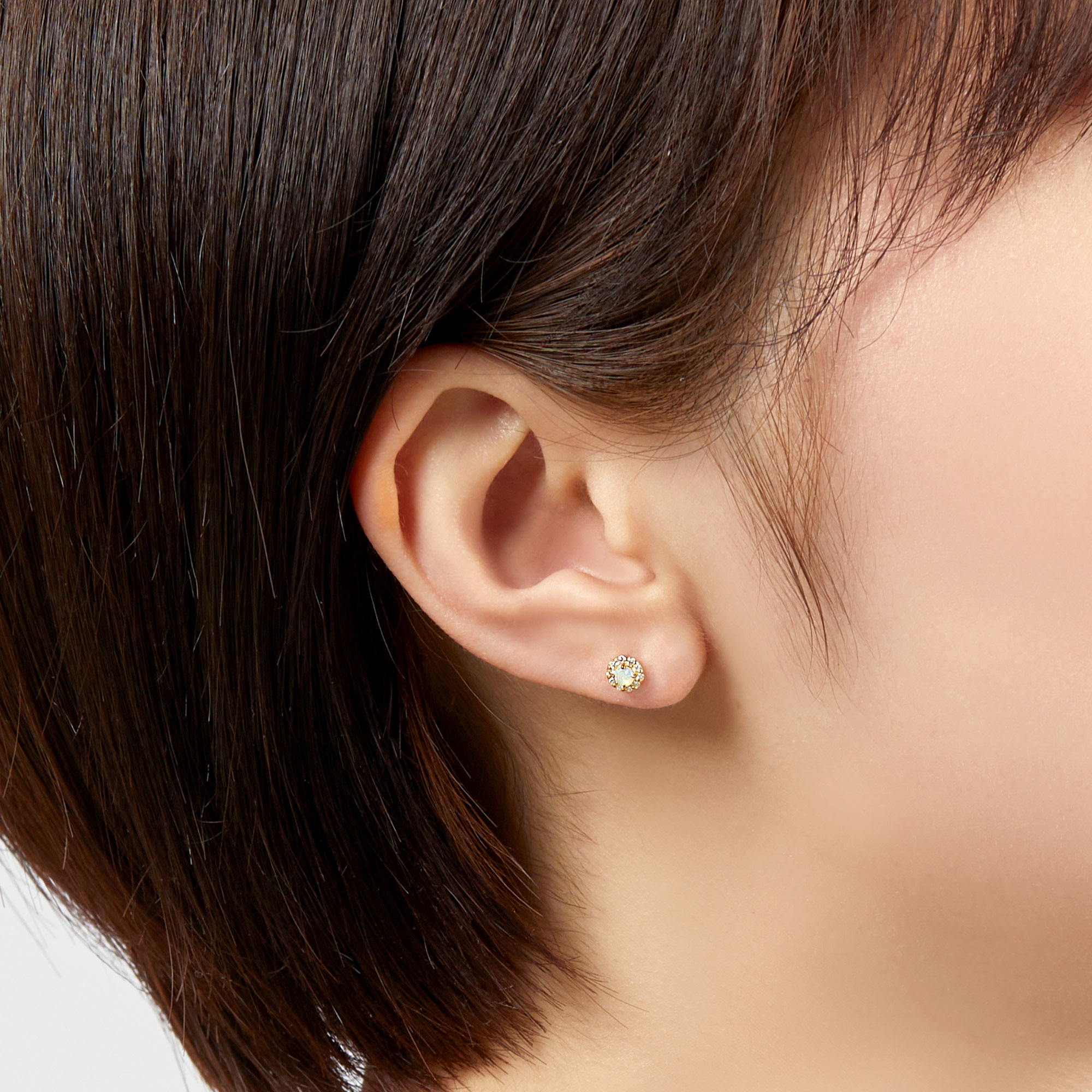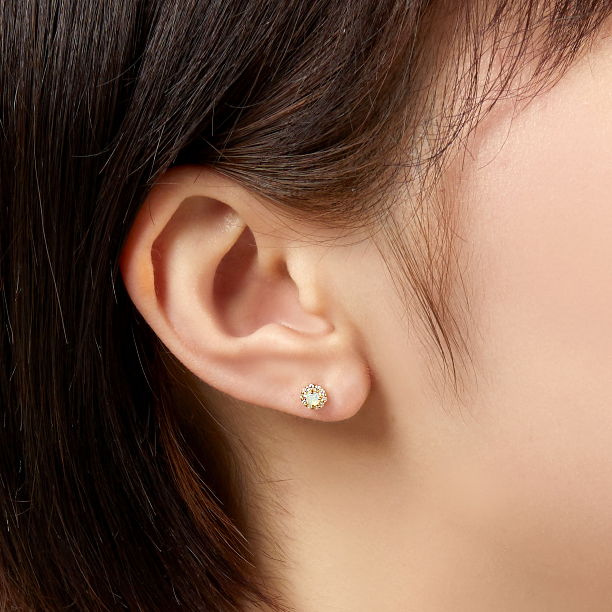 10月の誕生石・オパールをメレダイヤモンドで取り巻いたベーシックでさりげなくエレガントなデザインのピアス。