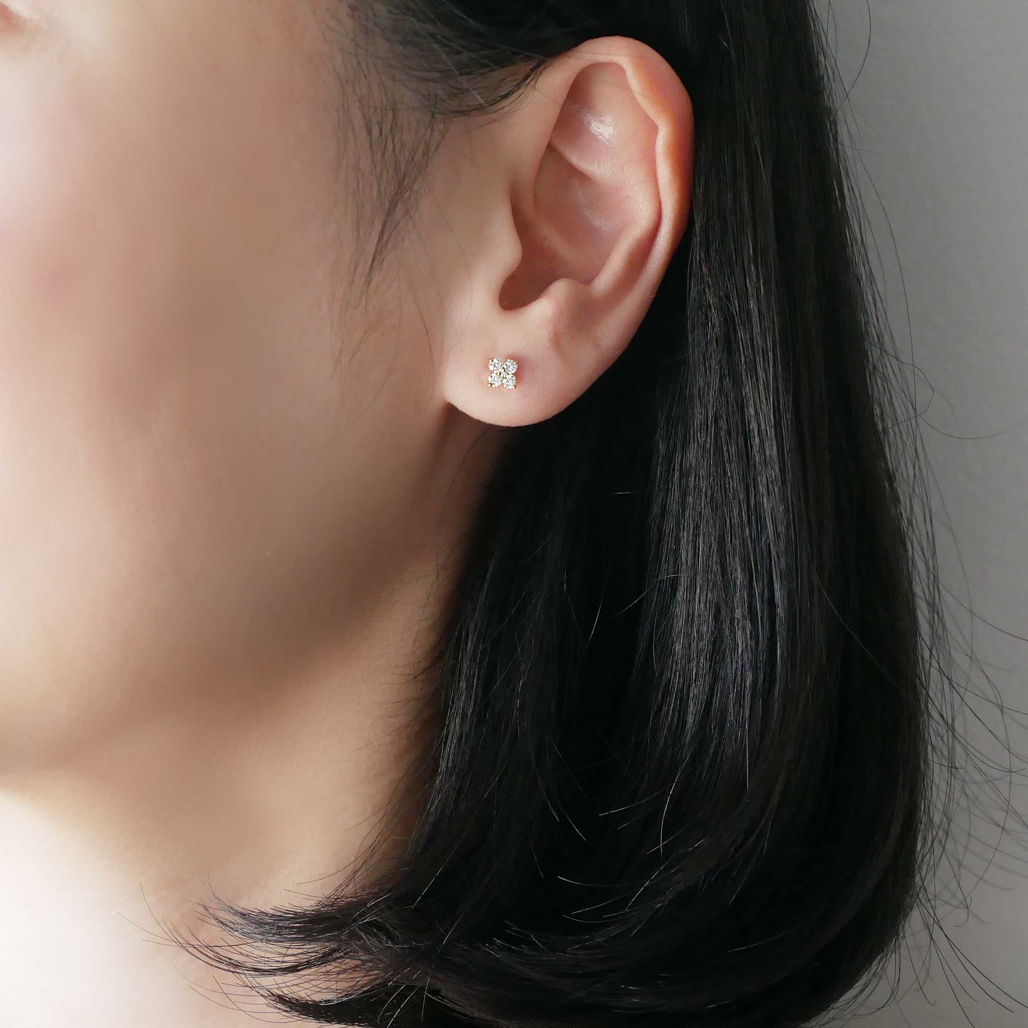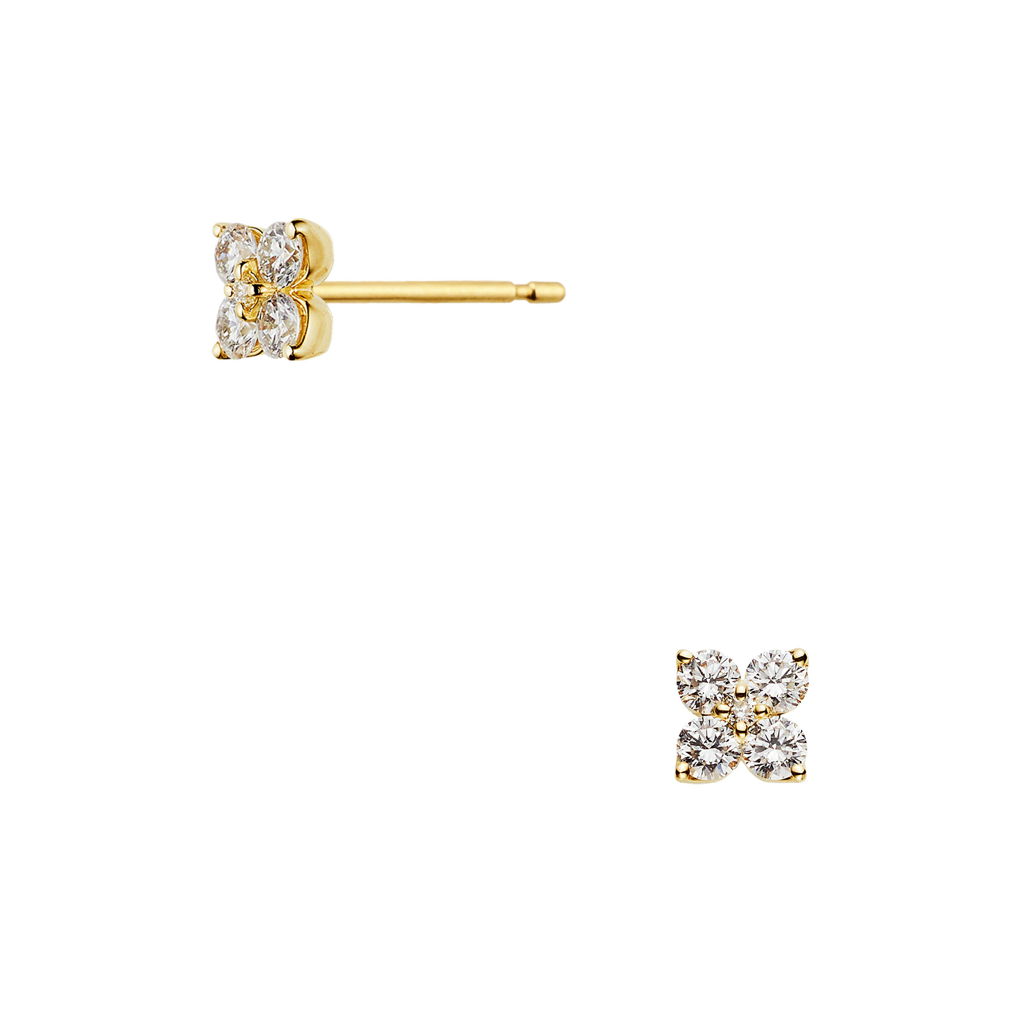 ダイヤモンドの輝きで花びらの瑞々しさを表現した、優しくフェミニンな表情のピアスです。