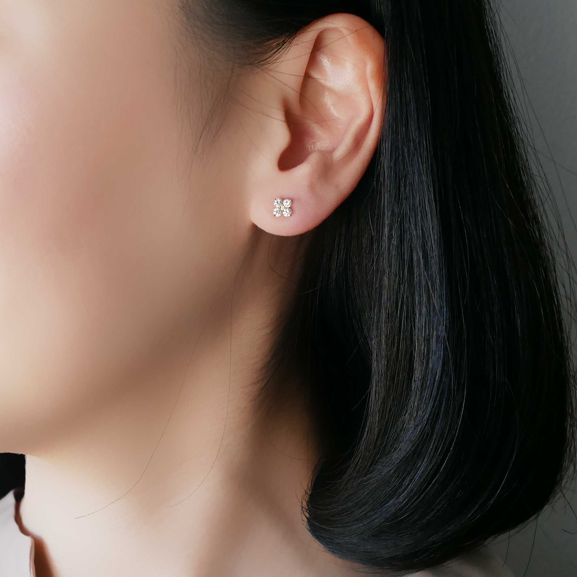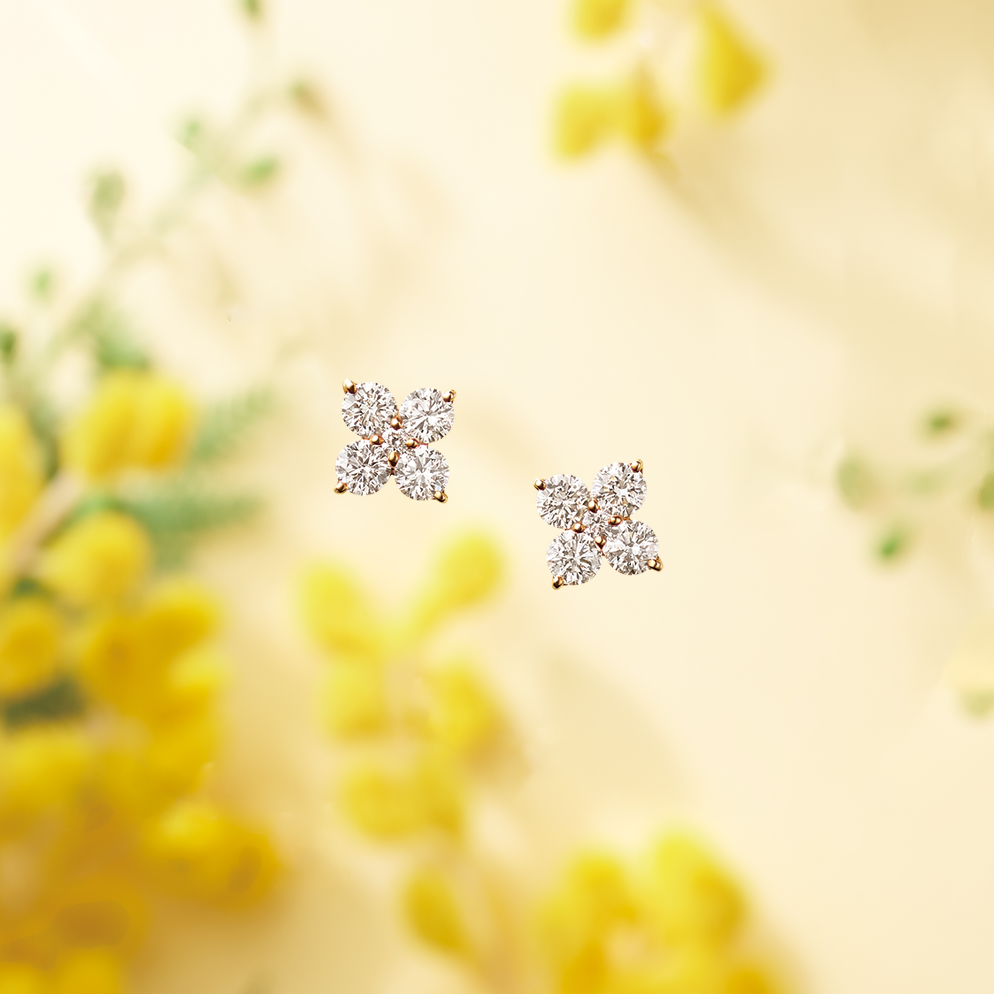 ダイヤモンドの輝きで花びらの瑞々しさを表現した、優しくフェミニンな表情のピアスです。