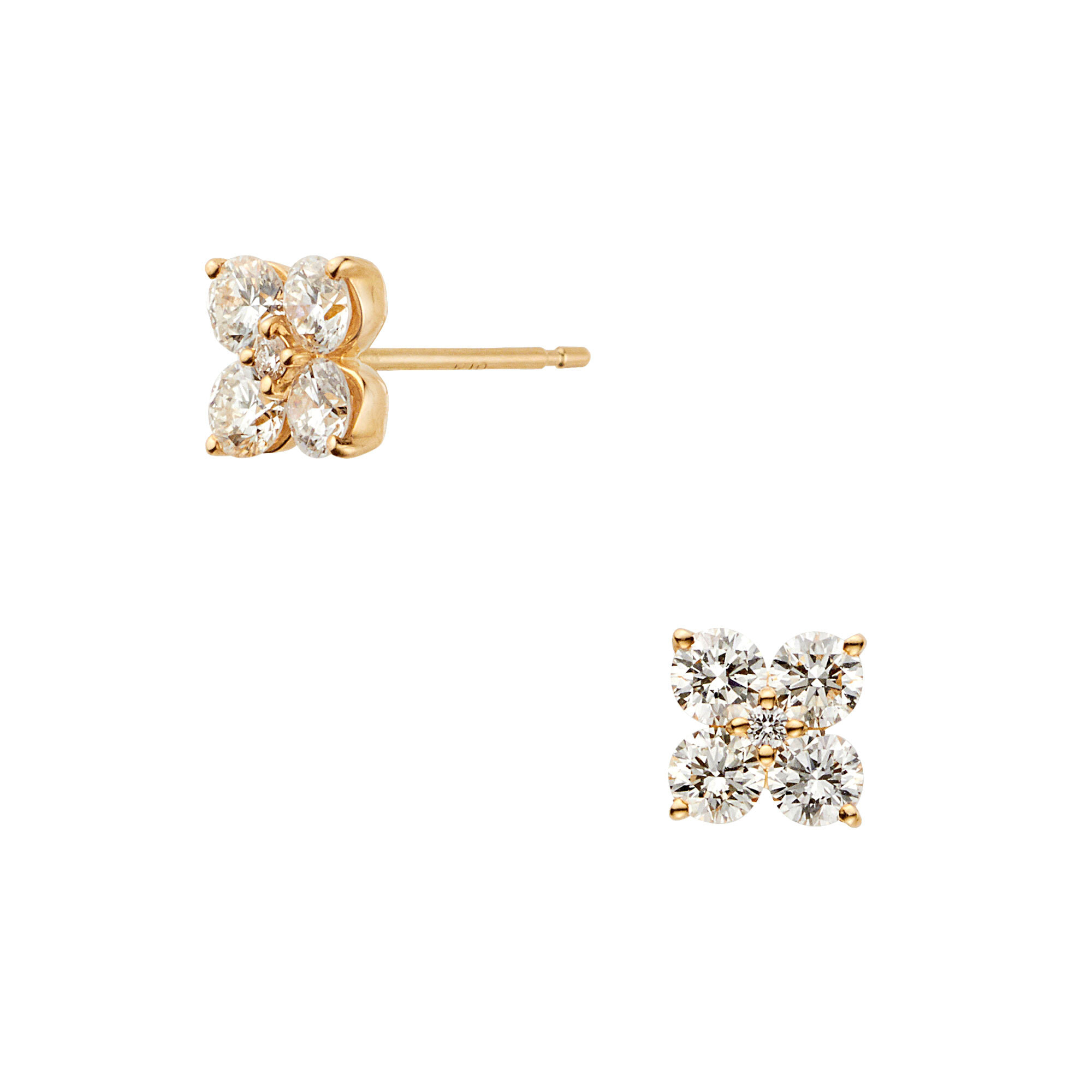 ダイヤモンドの輝きで花びらの瑞々しさを表現した、優しくフェミニンな表情のピアスです。