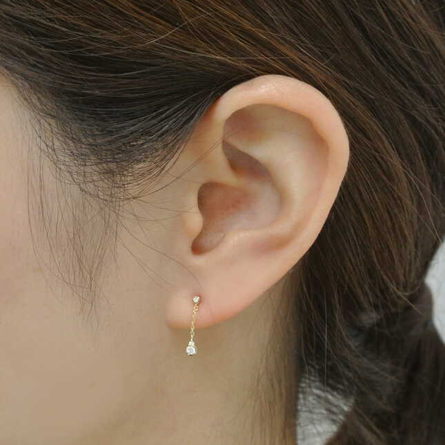 チェーンの先にダイヤモンドが繊細な輝きを放つピアス。
