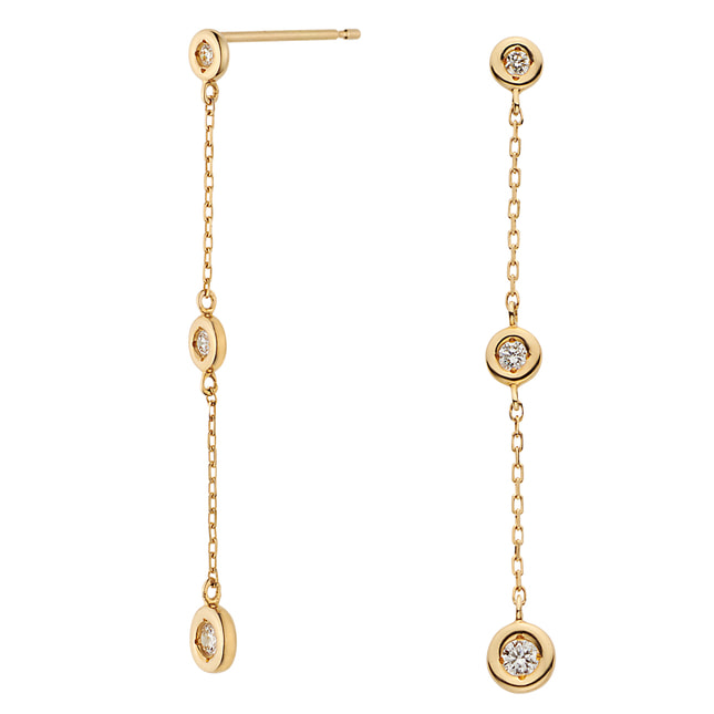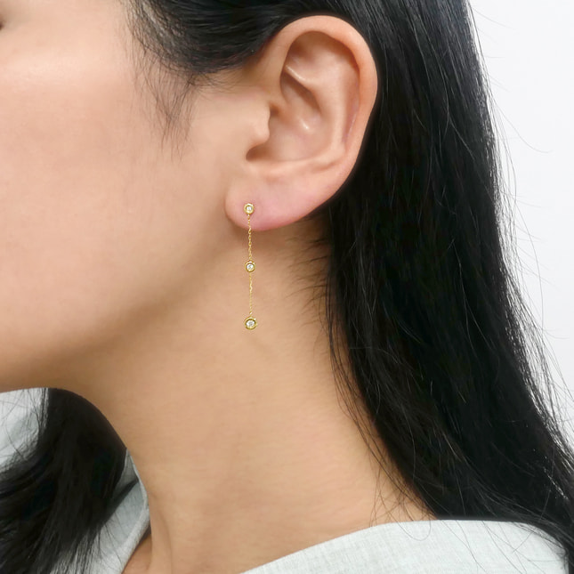 ゴールドのチェーンにダイヤモンドをあしらった、ステーションタイプのピアス。