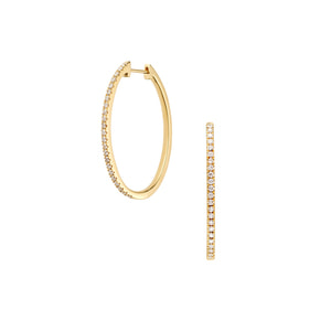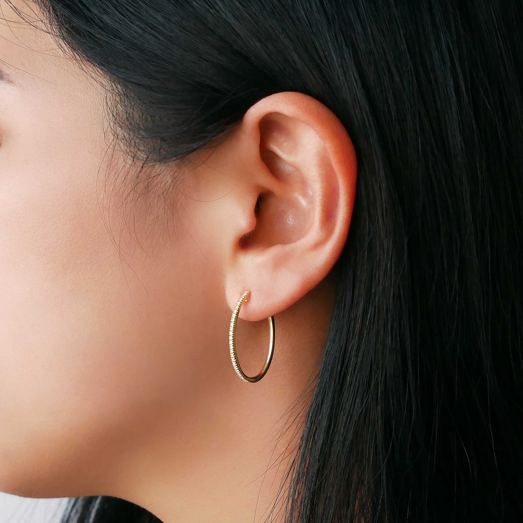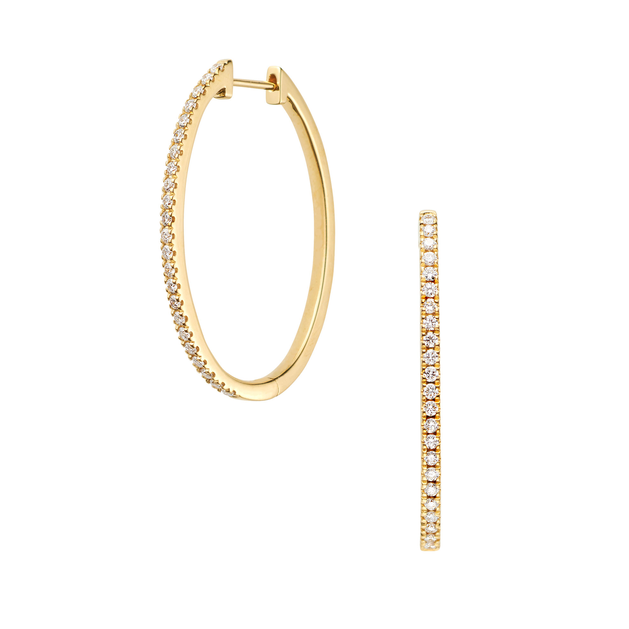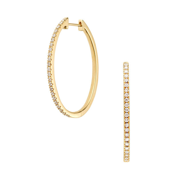 イエローゴールドのフープにダイヤモンドをあしらったベーシックなピアス。