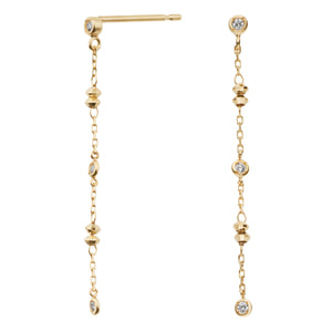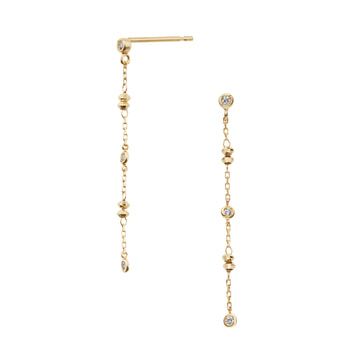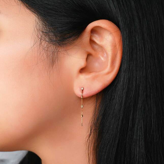 揺れるチェーンにダイヤモンドがあしらわれたピアス。