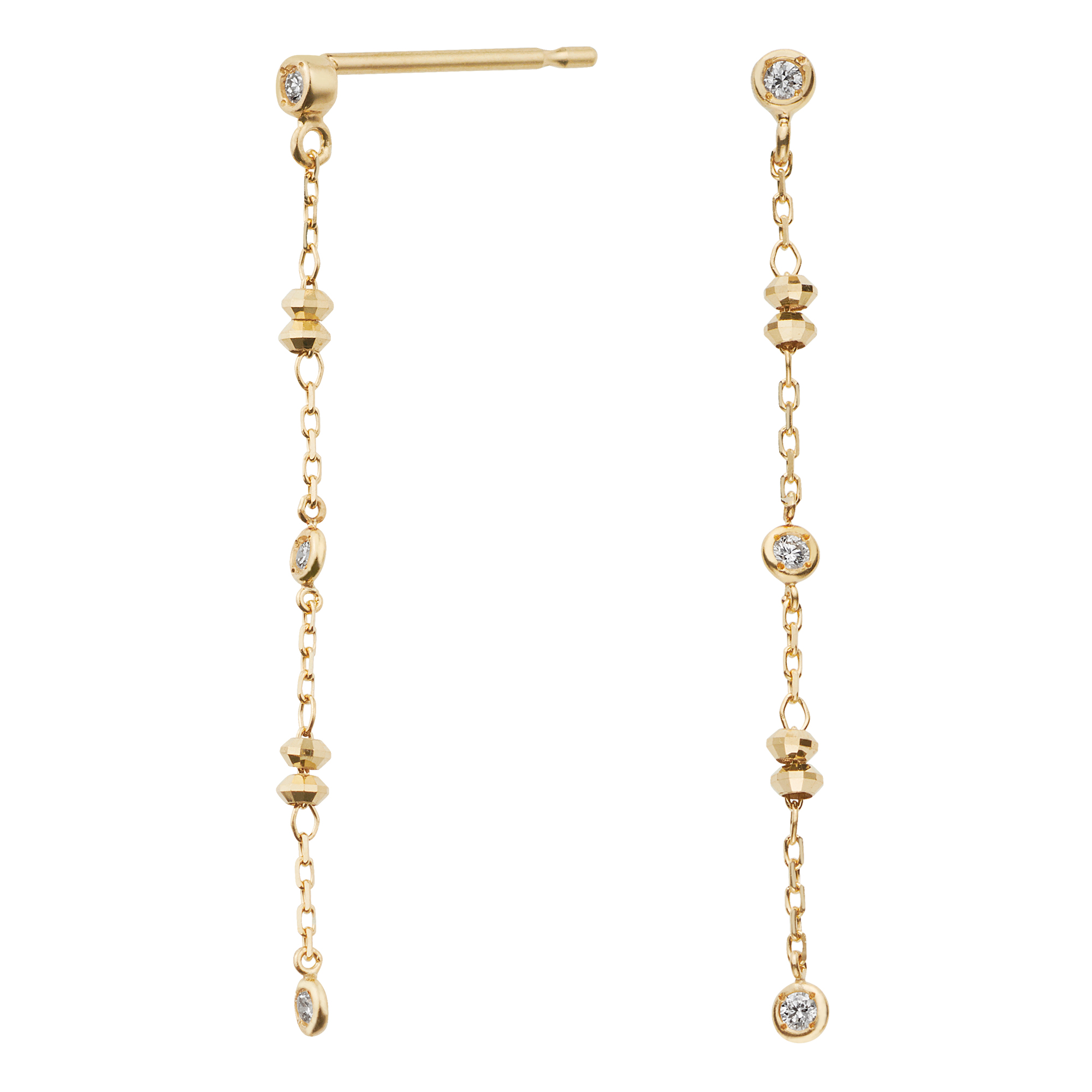 きらめくイエローゴールドのビーズとダイヤモンドが揺れるたびに光を反射して横顔を華やかに彩ります。