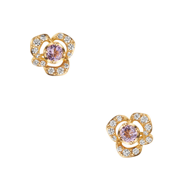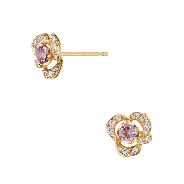 中心に配されたアメシストの上品な紫色は、イエローゴールドの華やかさに、穏やかな空気感を演出します。