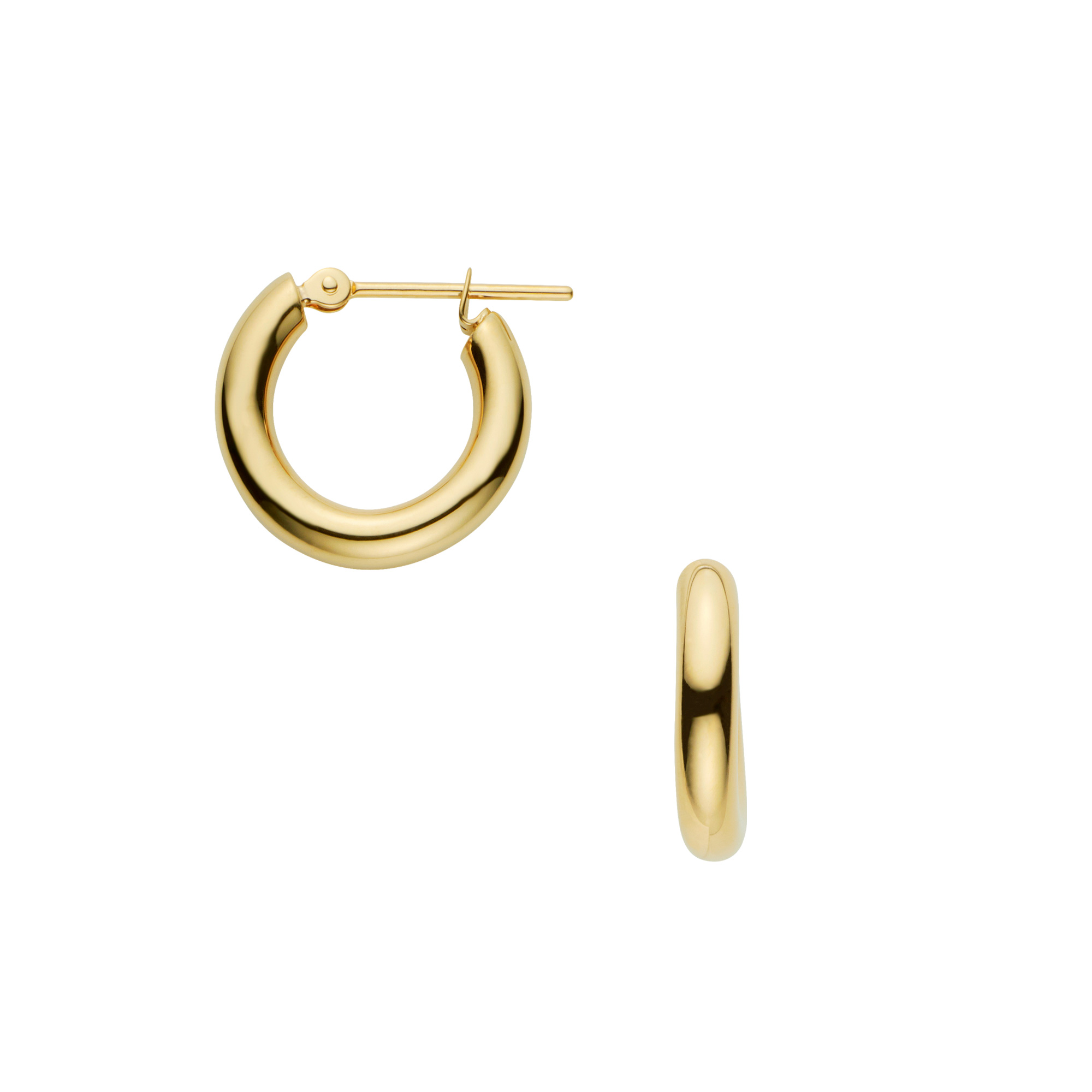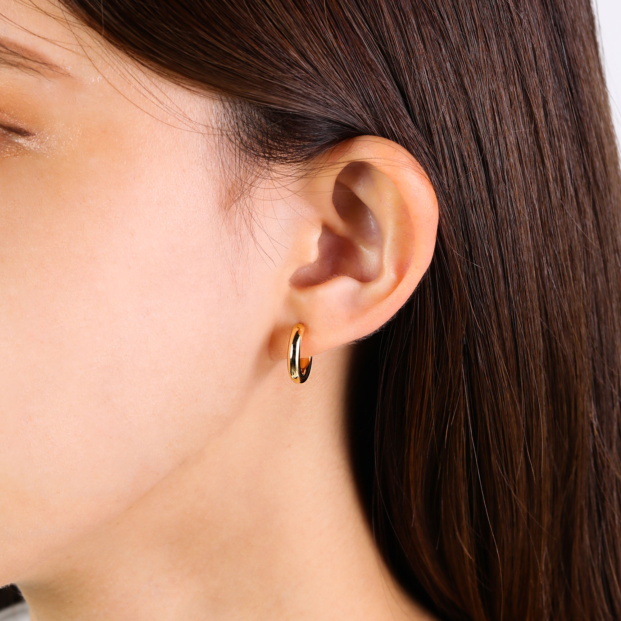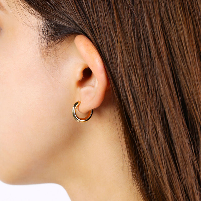 イエローゴールドの美しい光沢が楽しめるフープタイプのピアス。