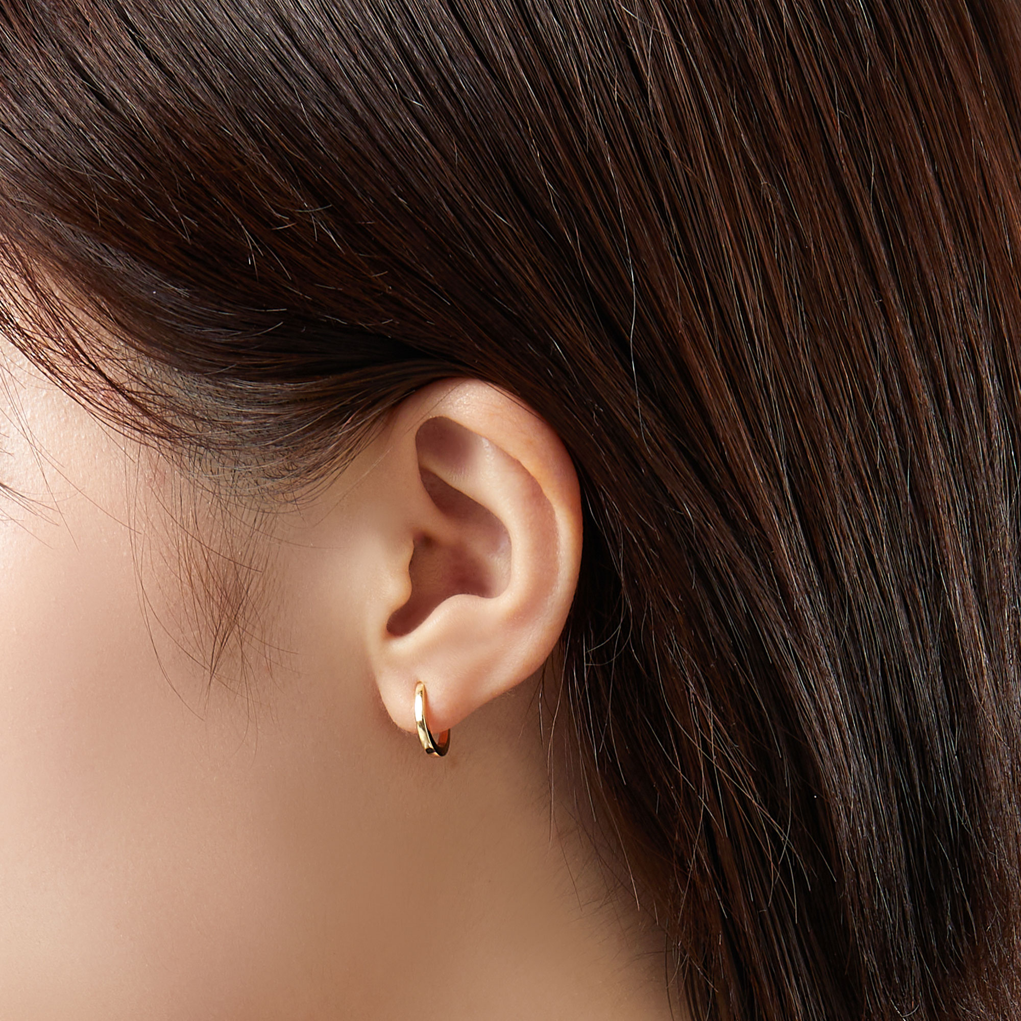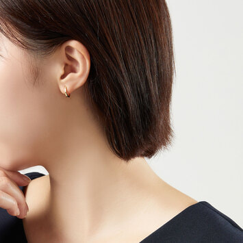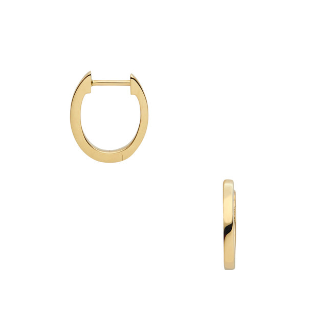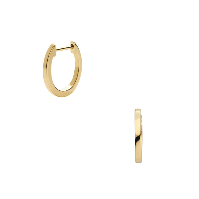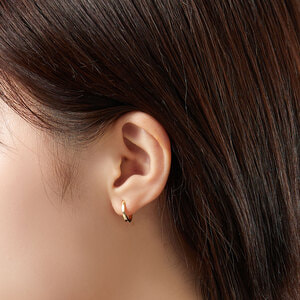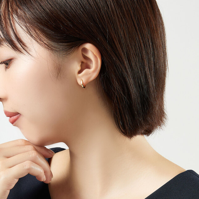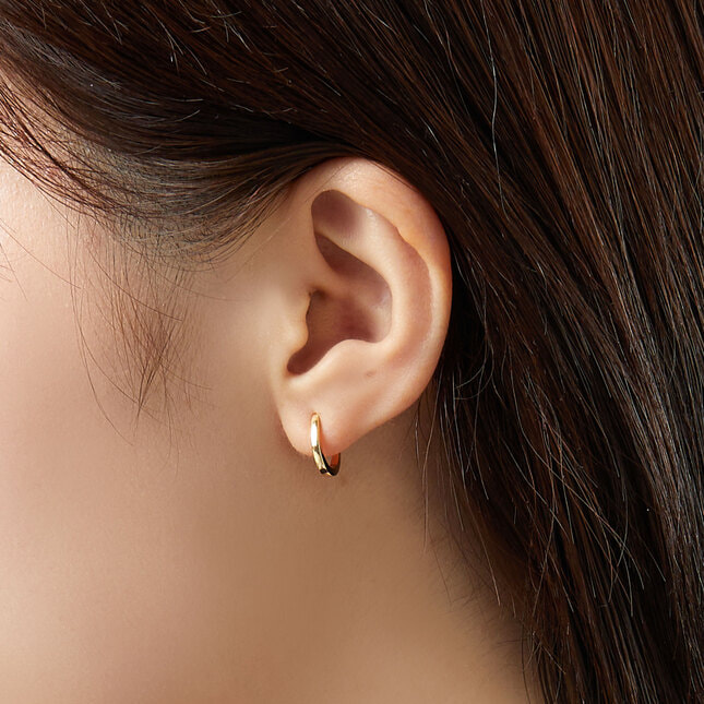 イエローゴールドの艶やかな光沢が美しいフープピアス。