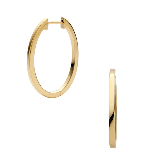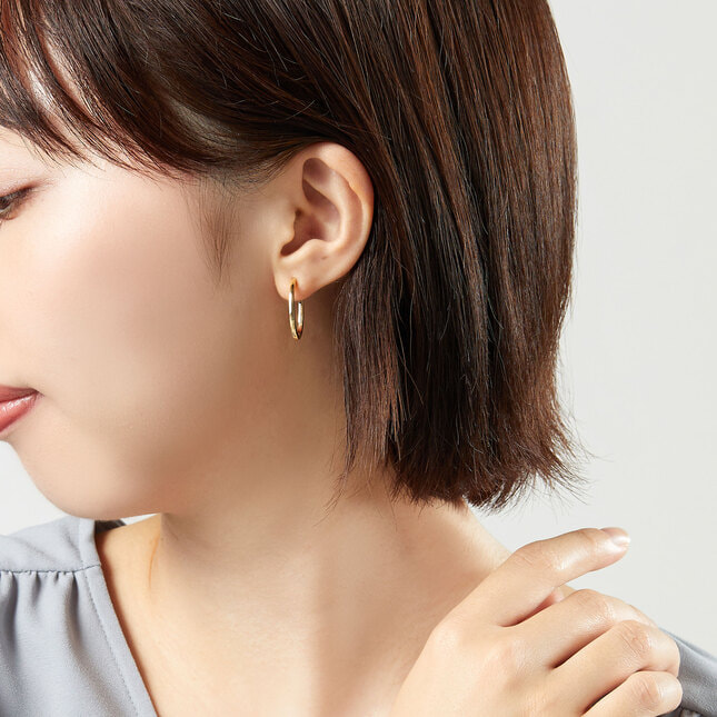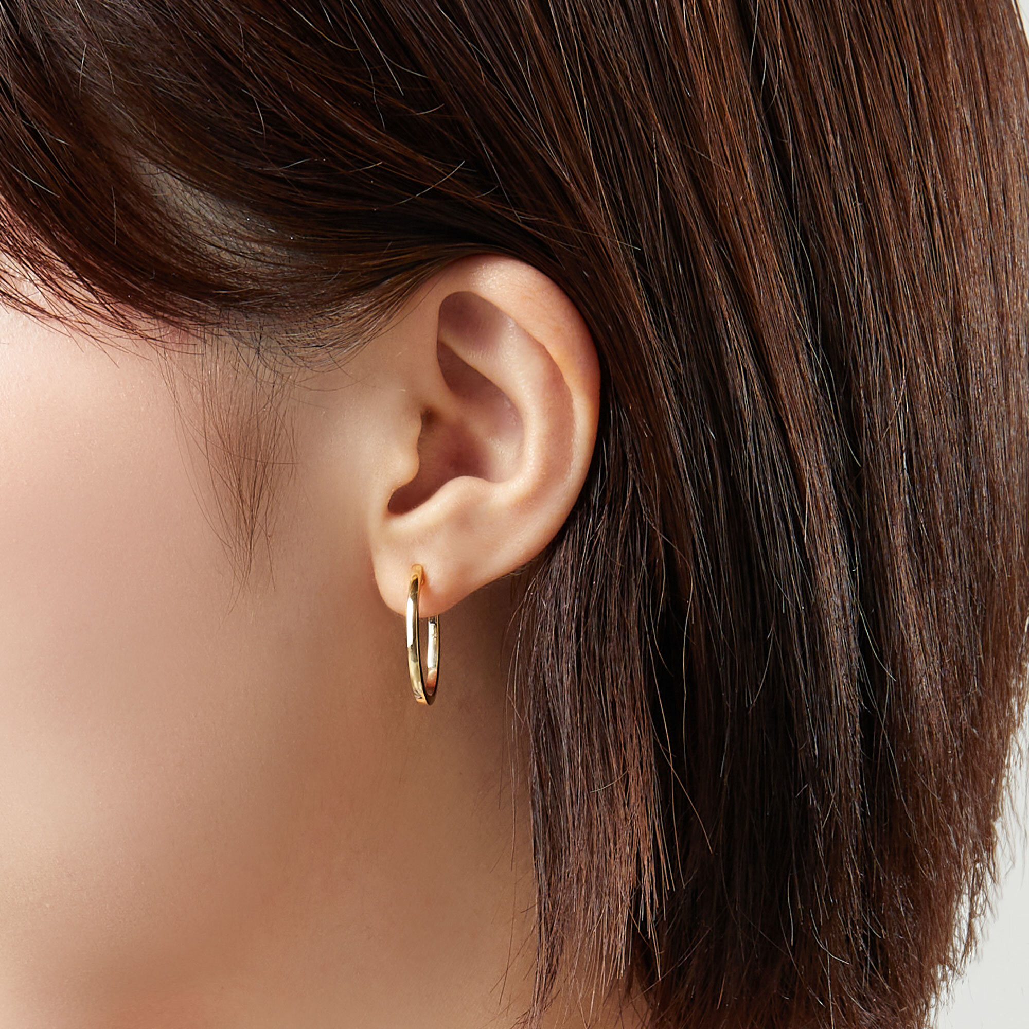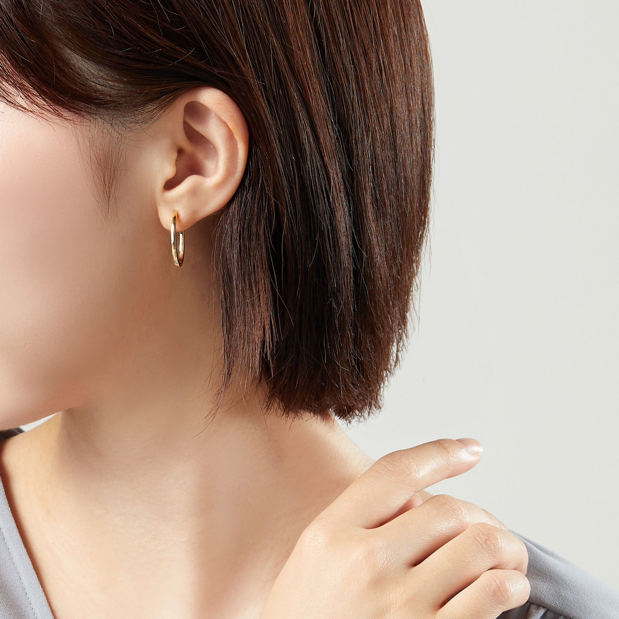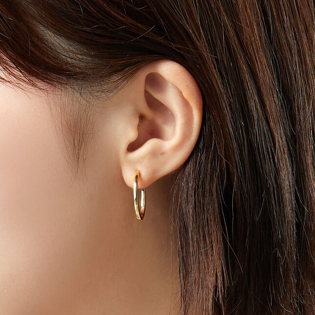 イエローゴールドの艶やかな光沢が美しいフープピアス。