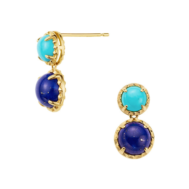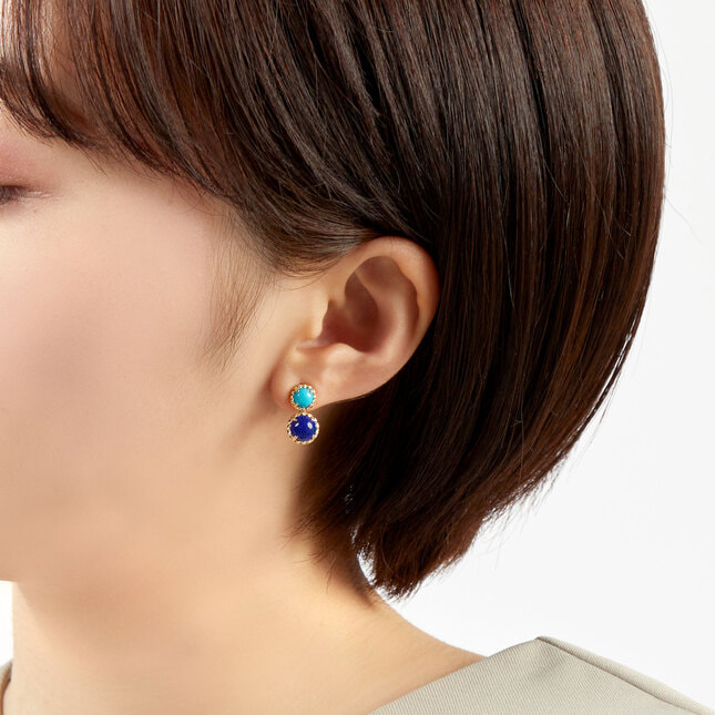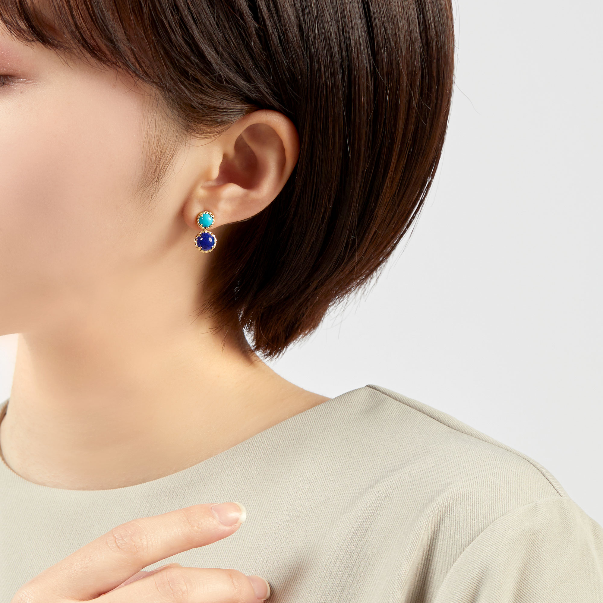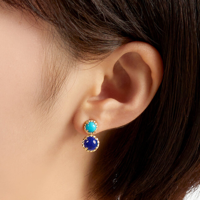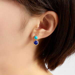 ラピスラズリの紺碧のブルーとターコイズの鮮やかな色合いが印象的なピアス。