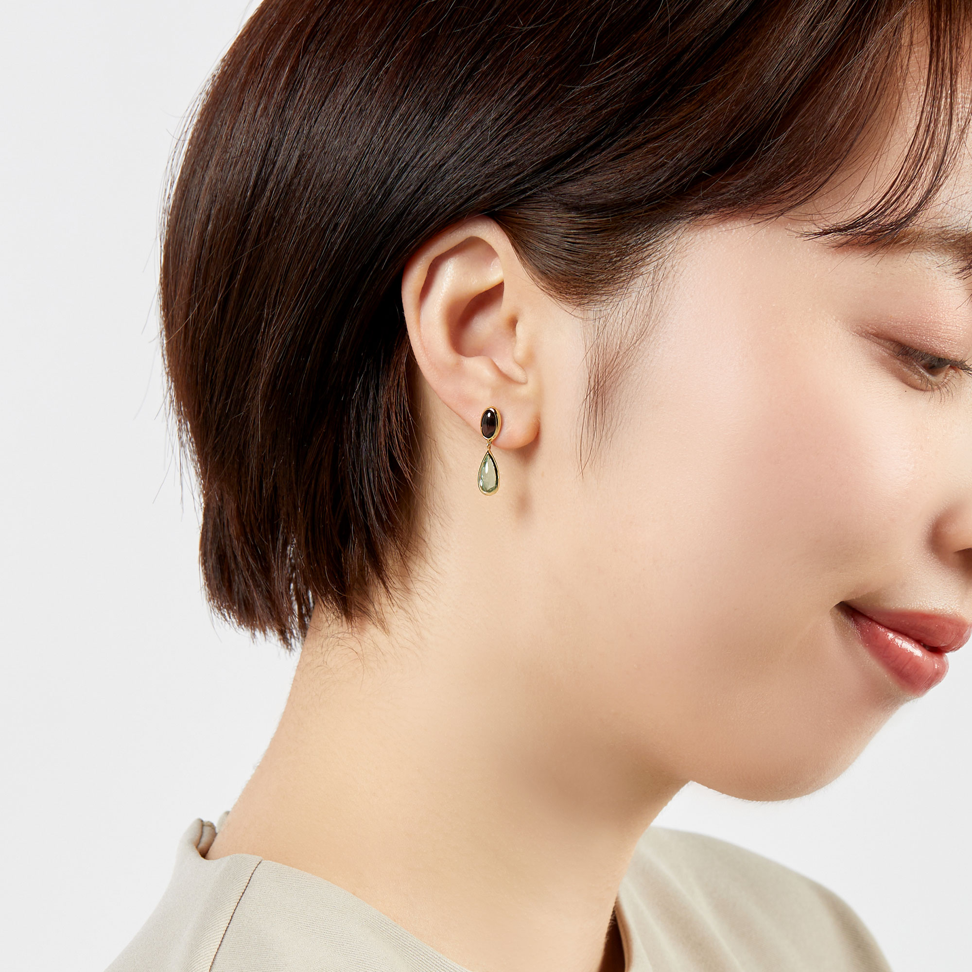 ブラウンとグリーンのシックなカラーリングが、大人っぽく洗練された印象のピアス。