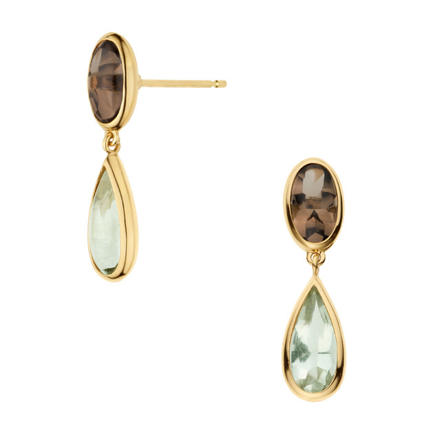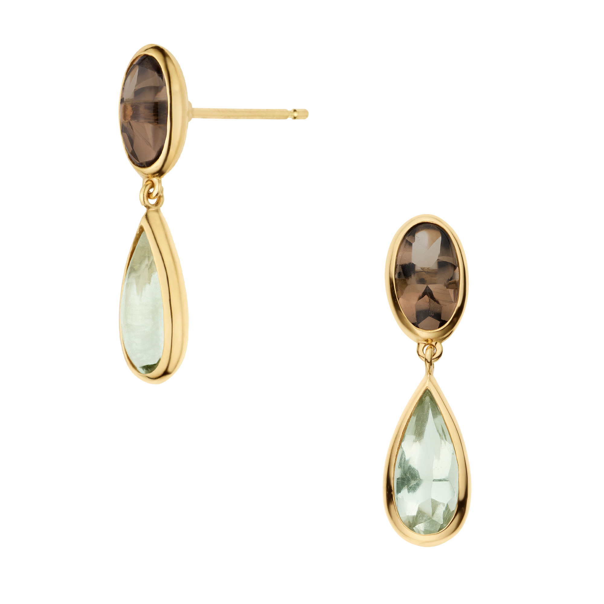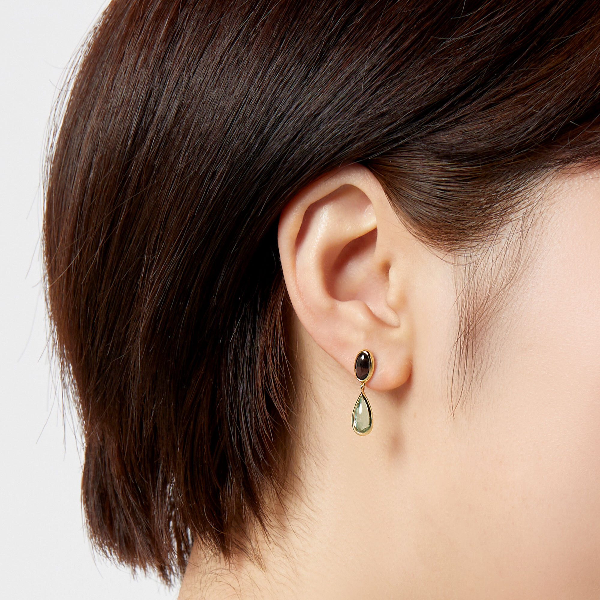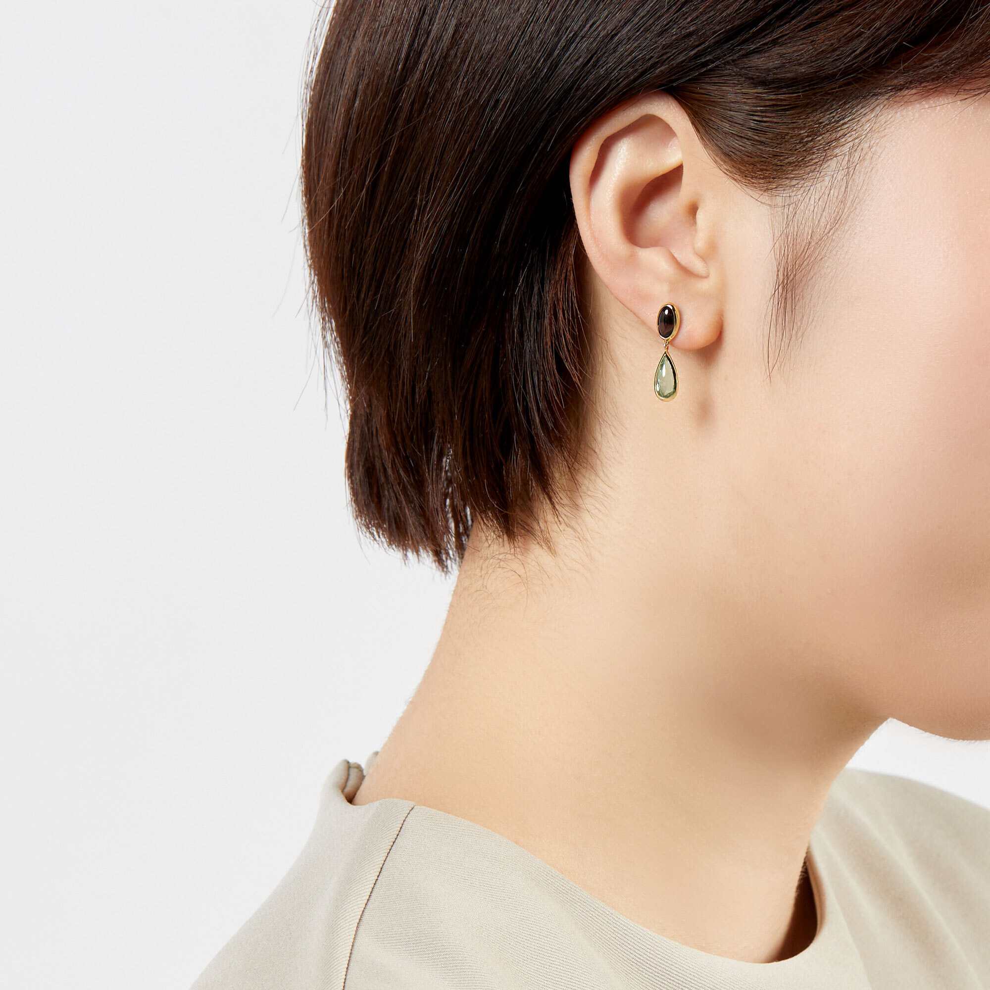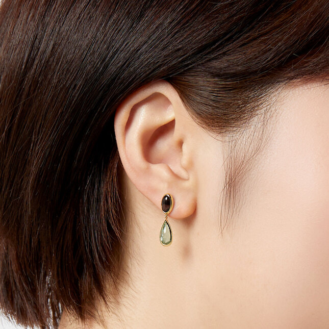 揺れるグリーンクォーツが、お顔まわりに瑞々しいきらめきをまとわせます。