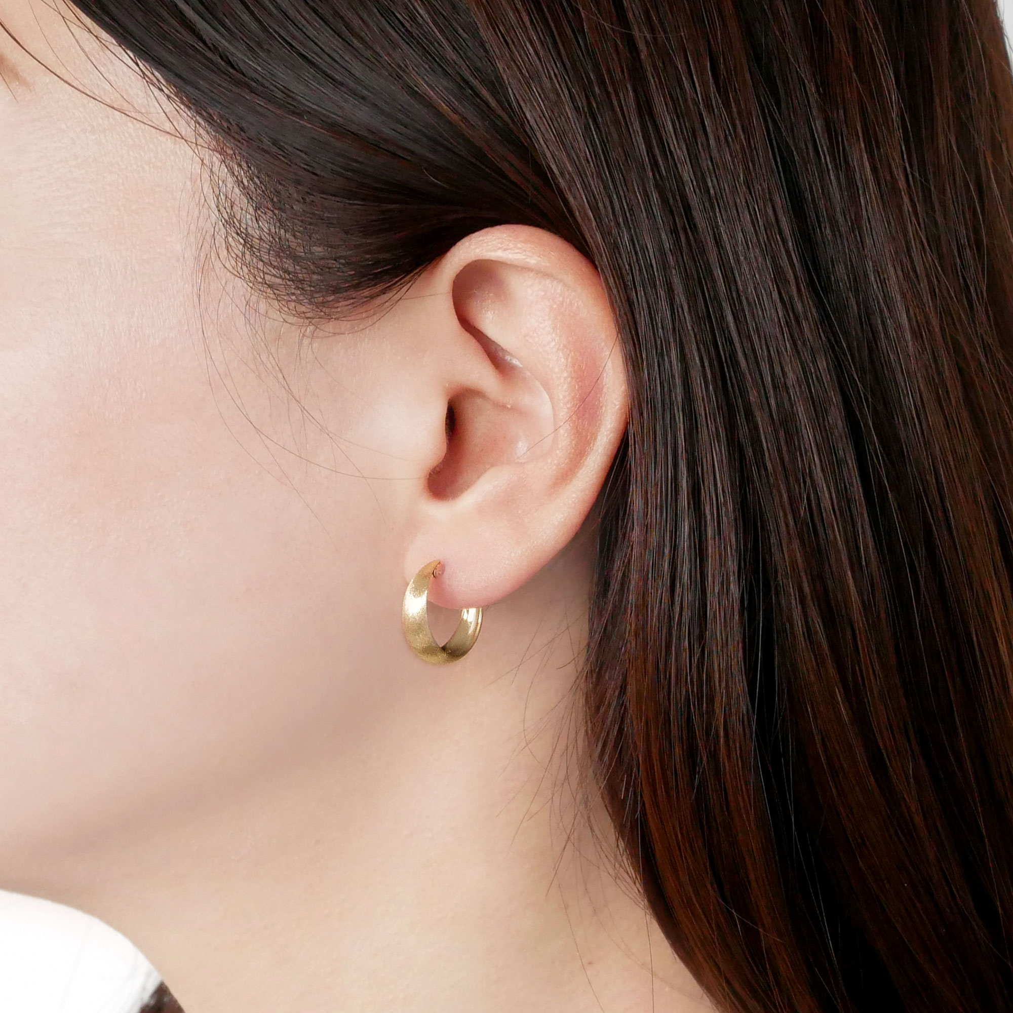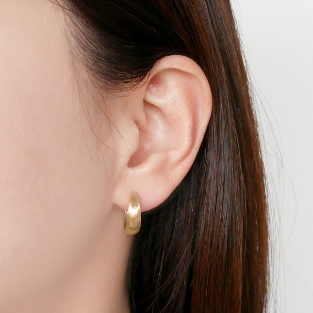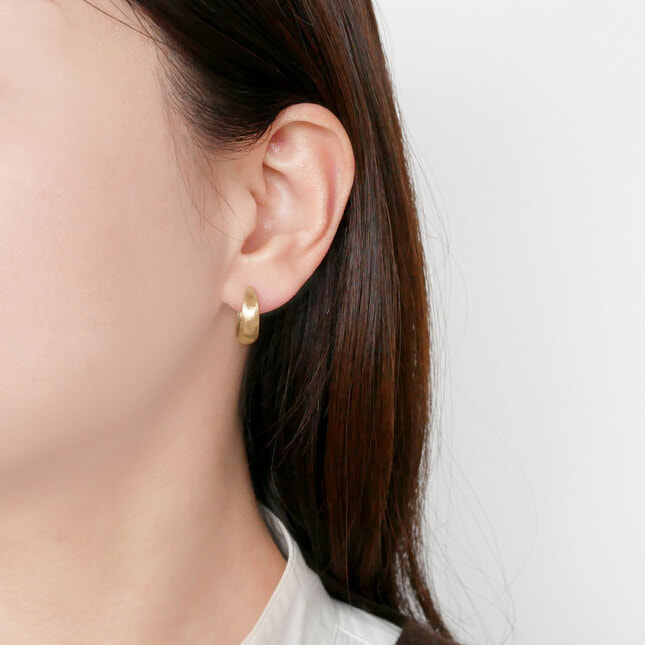 シルクのような滑らかな光沢感が上品な印象のピアス。