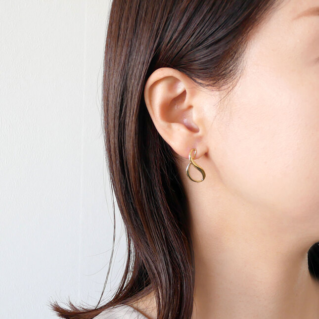 ゆるやかなウェーブラインが描き出す、柔らかく抜け感あるフォルムが印象的なピアス。